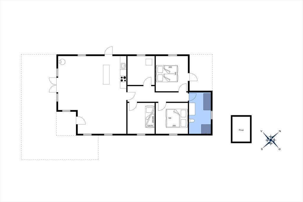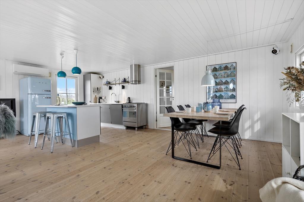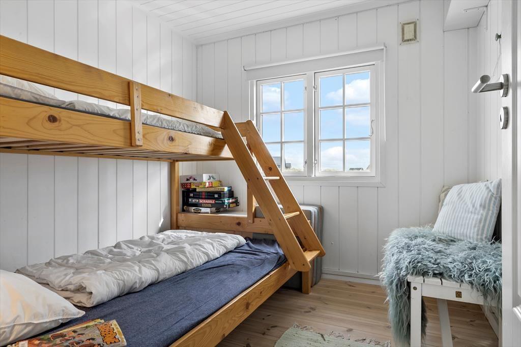 Når I træder indenfor, mødes I af en lys og rummelig indretning, der indbyder til samvær og afslapning. Hjertet i huset er det åbne opholdsrum, hvor I kan samles for at nyde måltider sammen ved spisebordet. I stuen står en komfortabel sofa klar til at blive jeres yndlingssted til en god film eller en hyggelig brætspilsaften. Køkkenet er moderne indrettet med gaskomfur, der gør madlavningen ekstra sjov. Bagefter kan I slappe af i husets flotte badeværelse, der er udstyret med et skønt badekar – perfekt til at lade batterierne op efter en dag med oplevelser. Huset har tre værelser, herunder et med en bred underseng i køjesengen (120 x 200 cm), som giver ekstra komfort for både store og små.