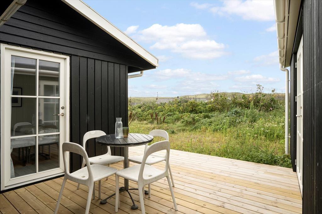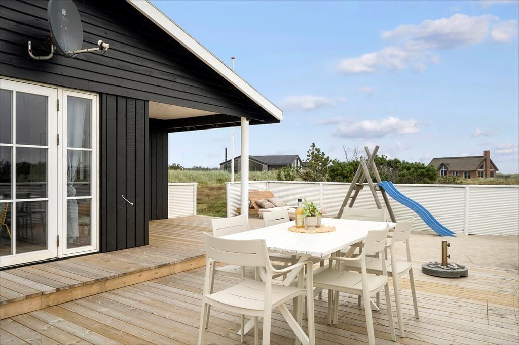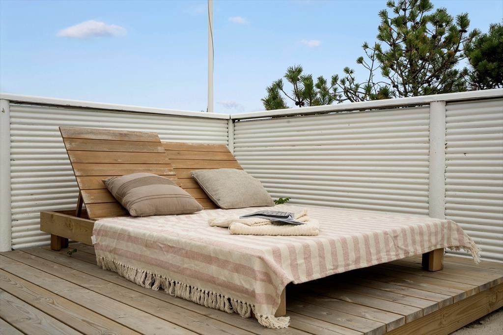 Med flere terrasser og en stor naturgrund får I masser af muligheder for at nyde livet under åben himmel. Her er både ligge- og siddestole, så I kan finde jeres favoritsted, hvad enten I søger sol eller skygge. Huset har også en hængekøje, hvor I kan tage en lur eller læse en god bog i rolige omgivelser. Derudover vil familiens yngste sætte pris på legetårnet og sandkassen, mens de voksne kan forberede aftensmaden på gasgrillen og nyde lange aftener under den åbne himmel. Terrasserne er omkranset af den smukke, vilde natur, som giver jer privatliv og en følelse af fred og ro.