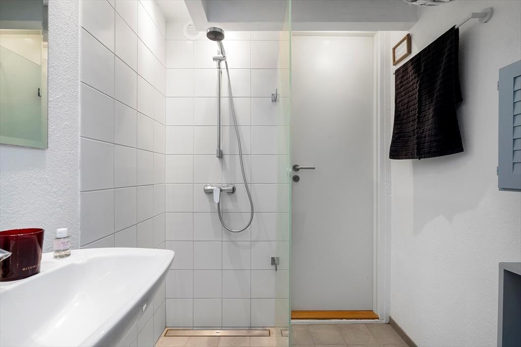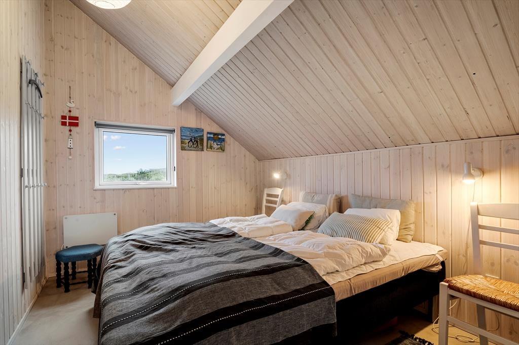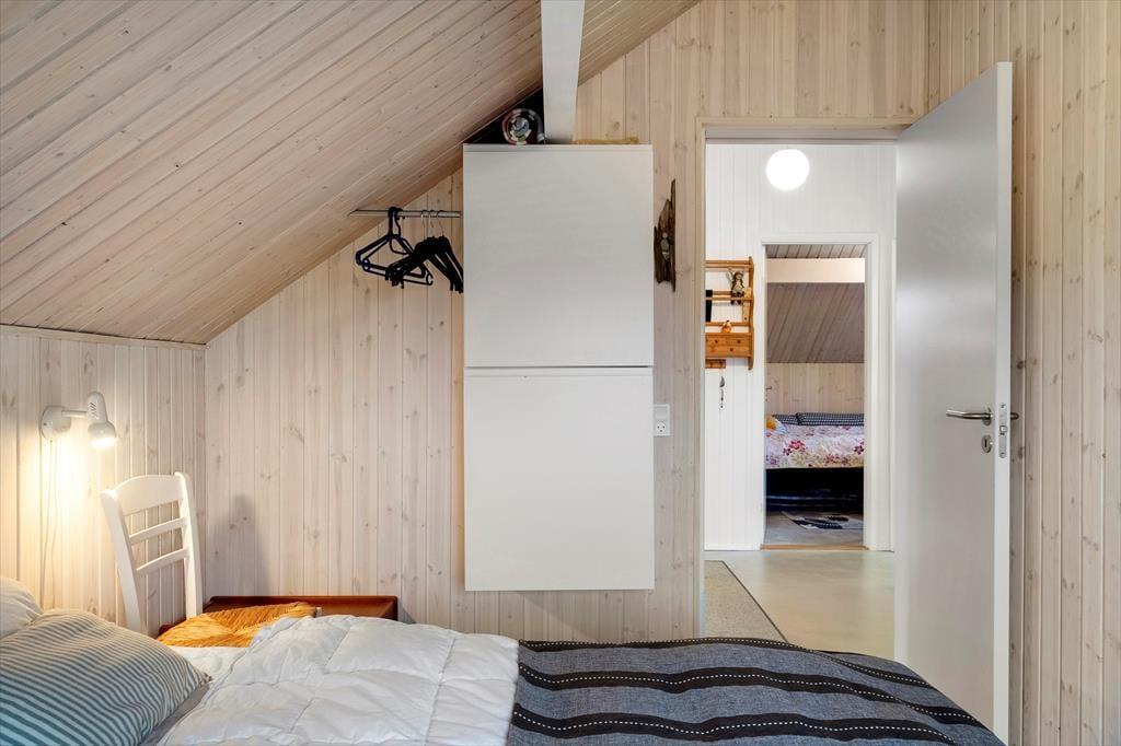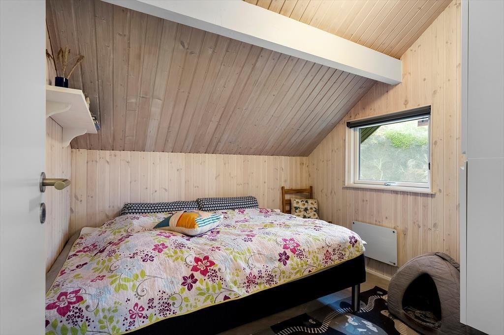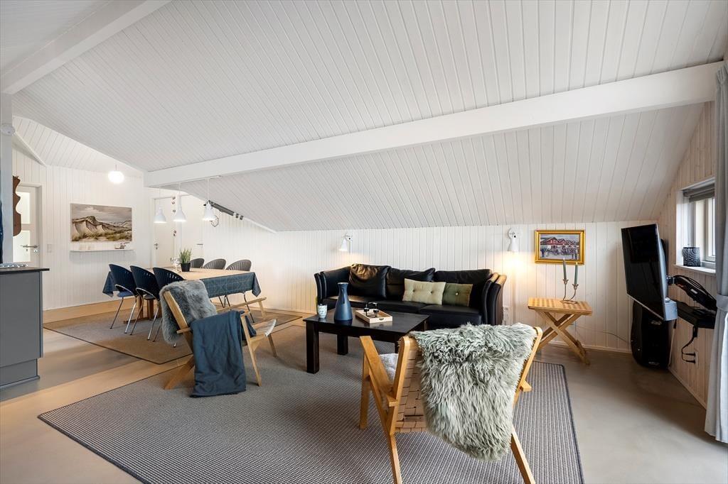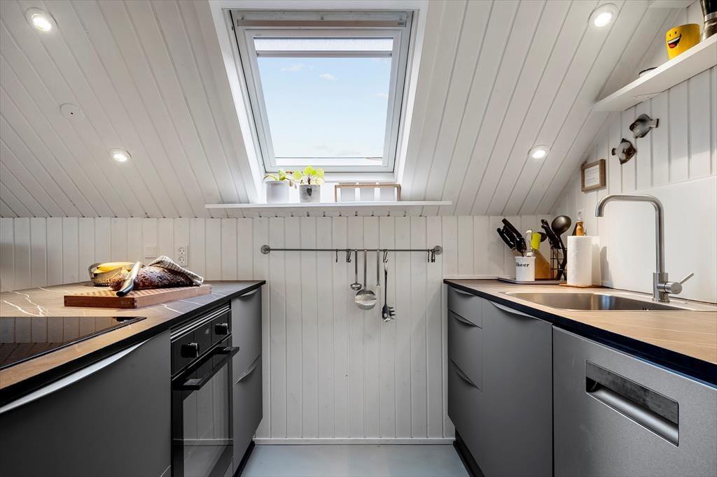 Når I træder ind, mærker I straks følelsen af nyt og veludført håndværk. Den store entre rummer både vaskemaskine og tørretumbler – praktisk efter en dag på stranden. Det moderne køkken imponerer med emhætten elegant integreret i bordet, og her er masser af plads til madlavning og hyggesnak omkring gryderne. Stuen er et sandt samlingspunkt, hvor den nye brændeovn med glas til alle sider spreder varme og skaber rolig atmosfære på kølige dage. Alt er holdt i lyse, naturlige farver, og de tre soveværelser byder på rigelig skabsplads, så I kan pakke ud og føle jer hjemme fra første dag. Her får I et sommerhus, hvor alt er tænkt til mindste detalje – både praktisk og æstetisk.