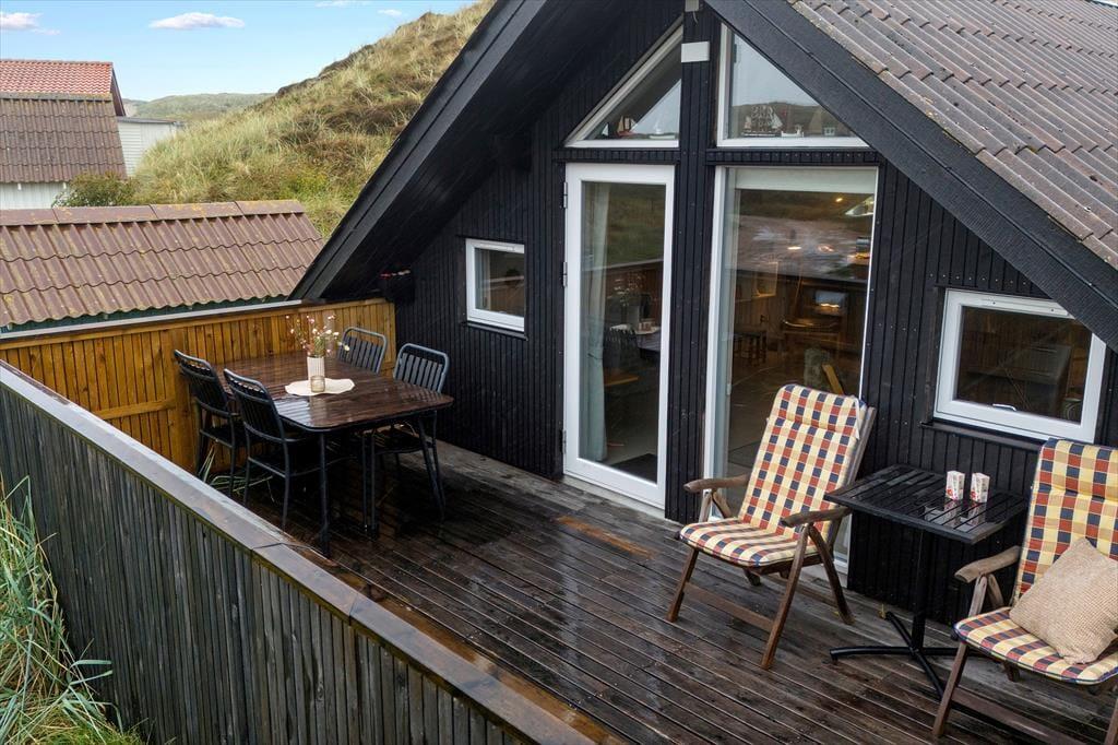 Sommerhuset byder på flere terrasser mod øst, syd og nord, så I altid kan finde læ eller sol – uanset tidspunkt på dagen. Den børnevenlige, lukkede terrasse gør det trygt for både børn og hunde, og her er der plads til leg, afslapning og god tid sammen. Mod nord venter en udebruser, perfekt til en frisk skyller efter strandturen, og fra den lille bænk kan I nyde morgenkaffen og kigge ud mod fjorden. Atmosfæren er afslappet og naturlig – her finder man hurtigt roen, mens vinden suser blødt i marehalmen. Til de aktive feriegæster er der et nyt aflåseligt skur til elcykler, surfudstyr og andet grej, så alt står sikkert og tørt. Kort sagt: her leves ferielivet ude – hele dagen.