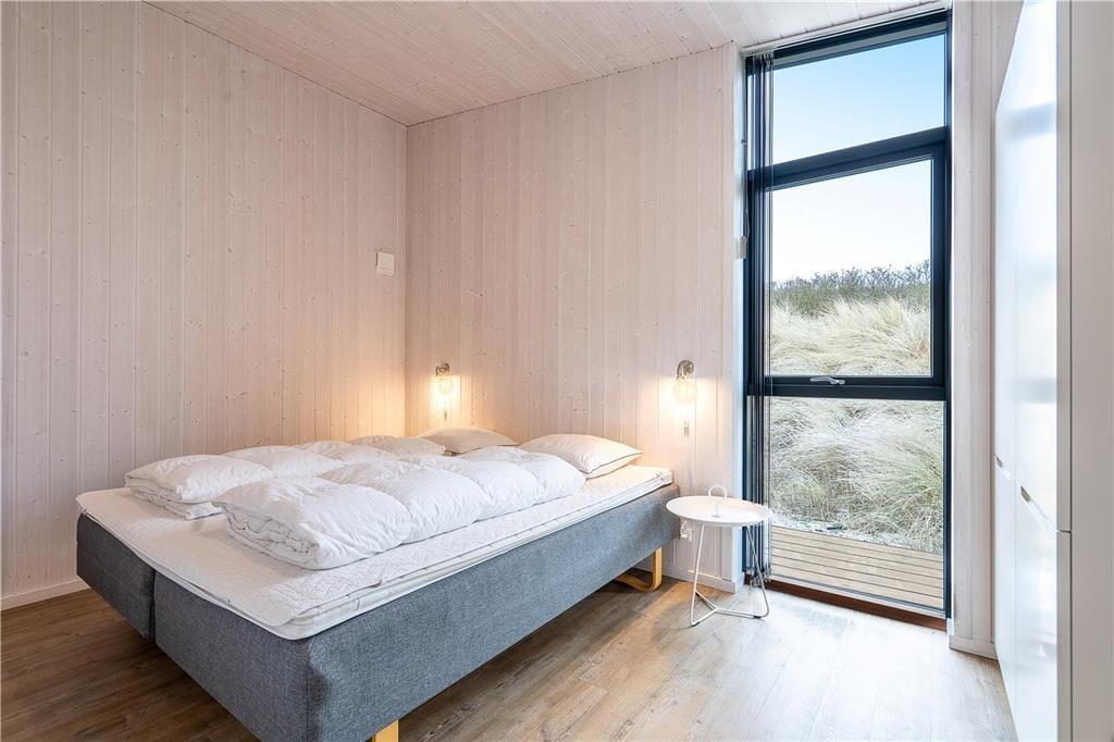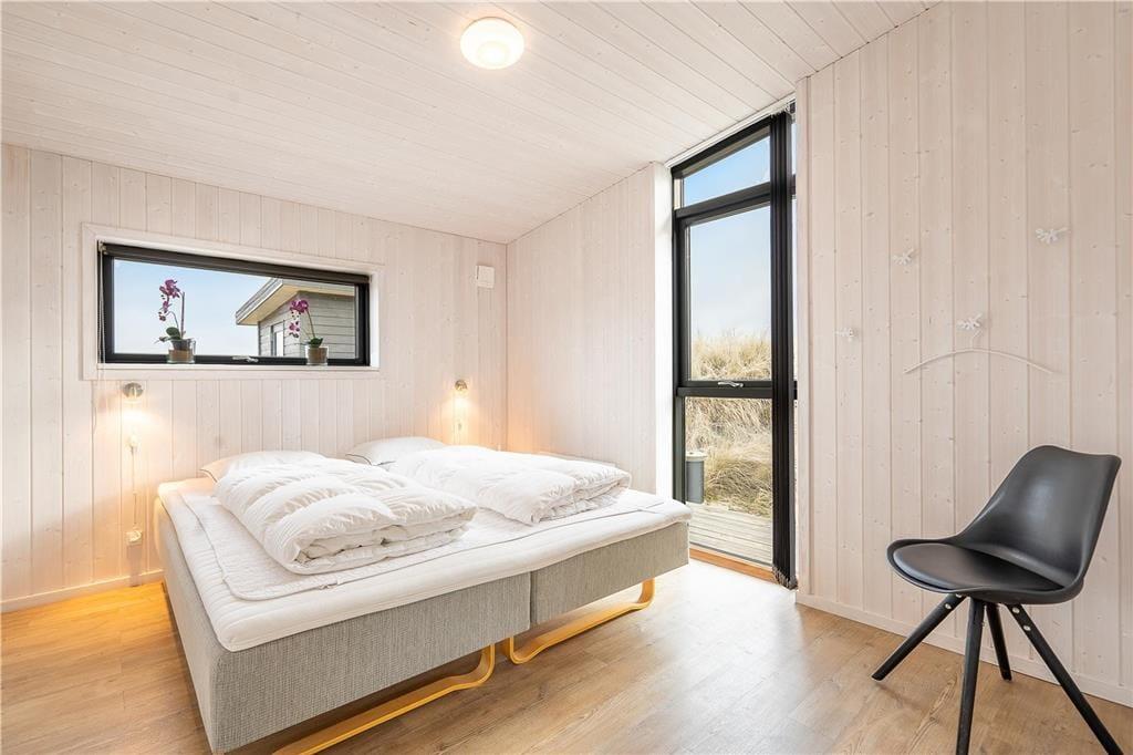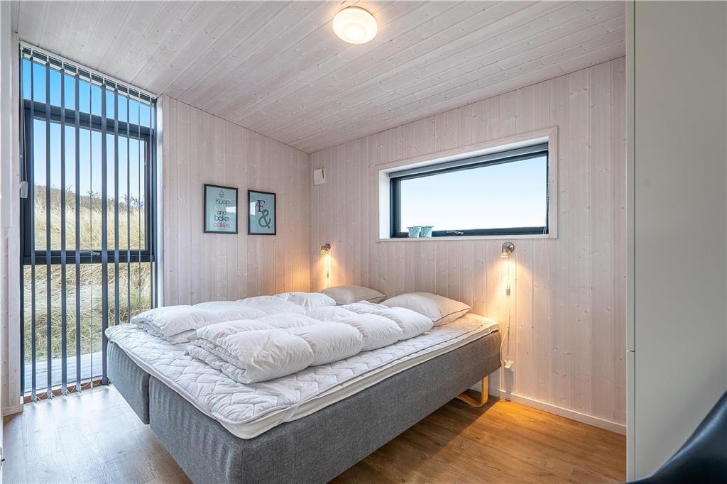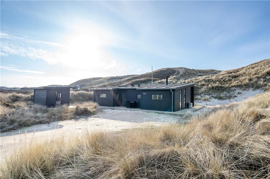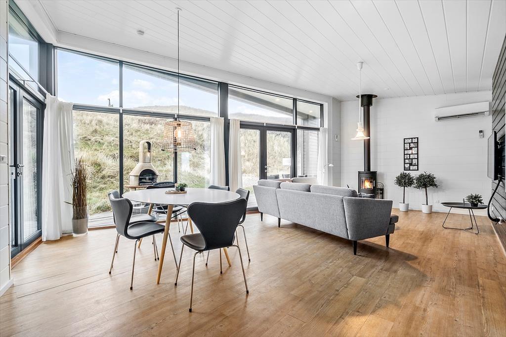 Selvom stranden er jeres nabo er det ikke ensbetydende med, at hele ferien skal foregå i vandkanten. Det er i hvert fald tillokkende at bruge en stor del af dagen i det flotte sommerhus, der har en lys atmosfære og en glimrende planløsning til seks personer. Gennem hoveddøren bliver I budt velkommen i en rummelig entré, der er udstyret med vaskefaciliteter og plads til overtøjet, og herfra kan I fortsætte videre ind i opholdsrummet. Her i husets hjerte kan I samles for at lave mad i det åbne køkken, spille kort ved spisebordet og slappe af i den komfortable sofaafdeling nær brændeovnen. De store vinduer giver jer frit udsyn til de høje klitter, og hvis I ikke bare skal sidde her og meditere over udsigten, er der stort fladskærms-tv og god wi-fi-forbindelse. Sommerhusets badeværelse og tre soveværelser præsenterer sig på samme indbydende vis, så I får alle forudsætninger for at nyde ferielivet inden døre.