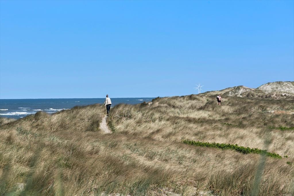 Fra den lille, lukkede sidevej, som huset ligger på, tager det kun få minutter at gå ned til Vesterhavet og Aargabs smukke strand, og mod nord kommer I hurtigt til den åbne klithede. Bevæger I jer østpå, er der heller ikke langt til Ringkøbing Fjord, og I har kun halvanden kilometer til den nærmeste put and take-sø, som bare er et blandt mange fiskespots i området. I kan også prøve lykken ved Hvide Sandes sluse og moler – og hvis I hellere vil have fisken serveret, er der et godt udvalg af restauranter og røgerier i den hyggelige havneby.