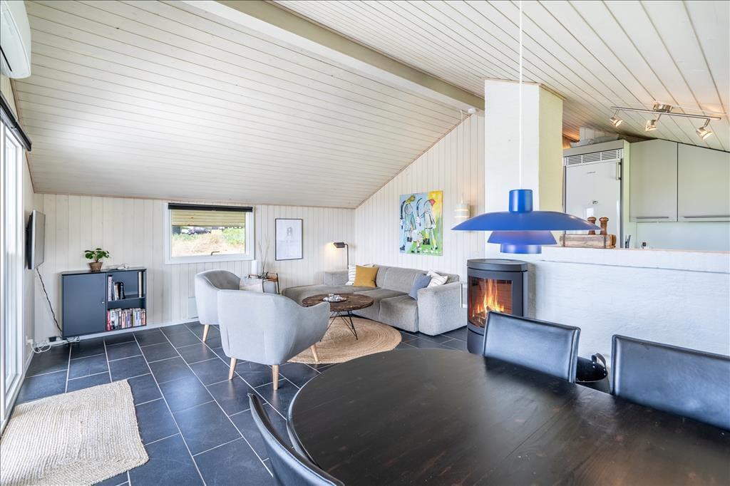 Sommerhuset har ligget her i de attraktive omgivelser siden 1987, og senest er det blevet renoveret i 2020, så det har en rar og velholdt fremtoning. Inden døre er rummene indrettet med pænt møblement og moderne bekvemmeligheder, lige fra en god wi-fi-forbindelse til et veludstyret åbent køkken og et rummeligt bryggers med vaskemaskine. Nær stuens dejlige sofa står en brændeovn, så I kan nyde varmen og skæret fra flammerne, når I slapper af med krydsord eller en spændende krimi. Der er fladskærms-tv med Chromecast ikke bare i stuen, men også på det ene af husets to soveværelser – og her i sovegemakkerne kan I for øvrigt se frem til at sove godt i de komfortable senge. Planløsningen byder også på et badeværelse og et gæstetoilet, og i skuret står der et ekstra køleskab med fryser, hvis I har brug for at opbevare ekstra drikkevarer eller har været ude at fange store mængder sild.