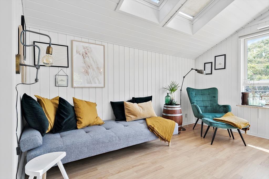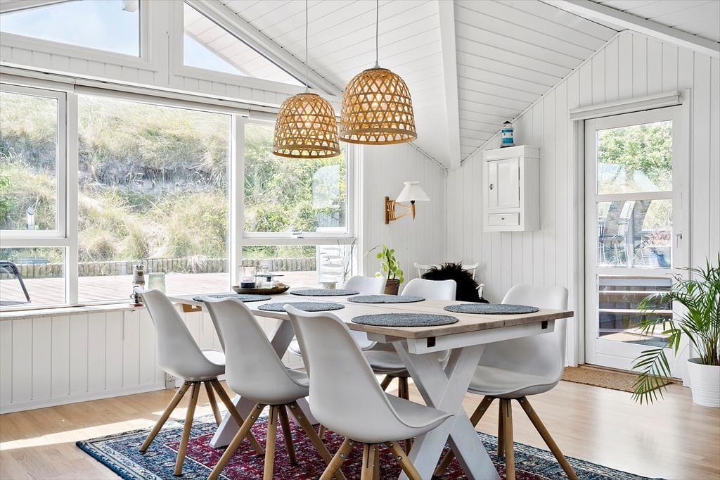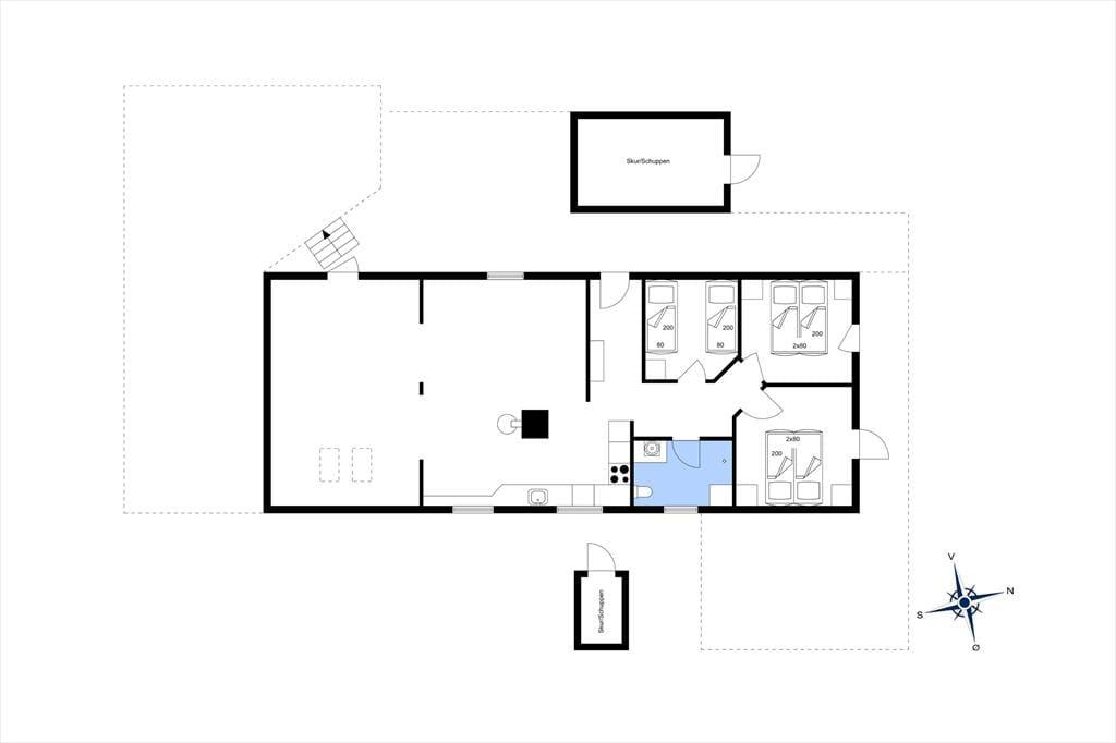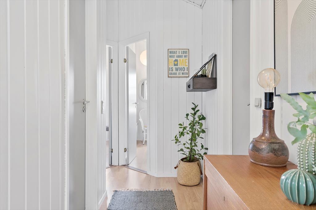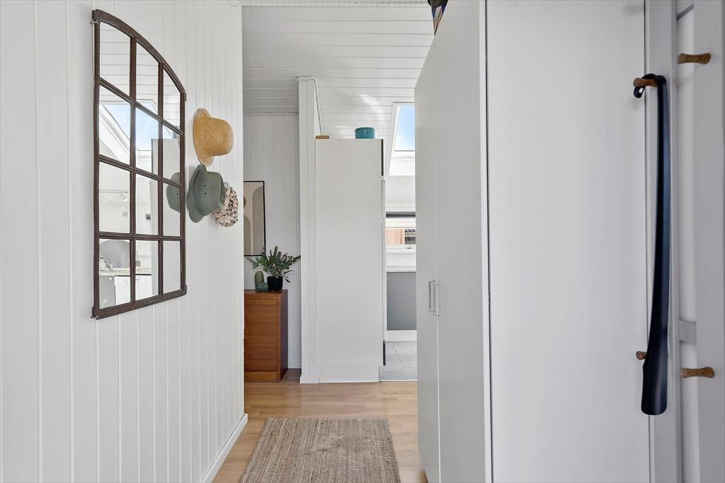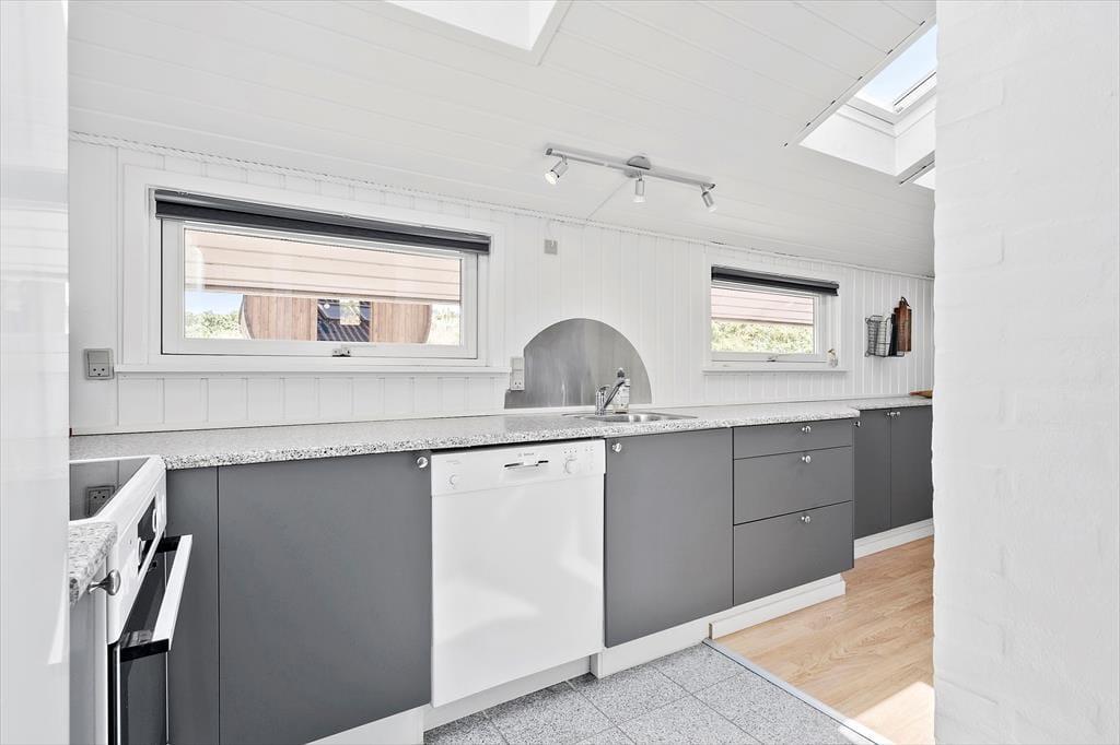 Sommerhuset er et pænt renoveret og utroligt charmerende hus med en fin planløsning til seks personer – plus to hunde, hvis de firbenede familiemedlemmer skal med på ferie. Rummene er lyse og indbydende, og mon ikke I straks kan mærke roen sænke sig, når I træder ind i stuen for første gang. Feriefornemmelsen er i hvert fald i top i opholdsrummet, der har brændeovn, varmepumpe og komfortabelt møblement. Køkkenet ligger for øvrigt som en integreret del af opholdsrummet, så selvom der skal laves mad, behøver I ikke at opdele jer i madlavnings- og sofahyggehold, men kan sagtens småsnakke på tværs af rummet. Planløsningen byder desuden på et pænt badeværelse med bruser og vaskemaskine samt tre gode soveværelser, hvoraf to er med dobbeltseng og det tredje med to enkeltsenge.