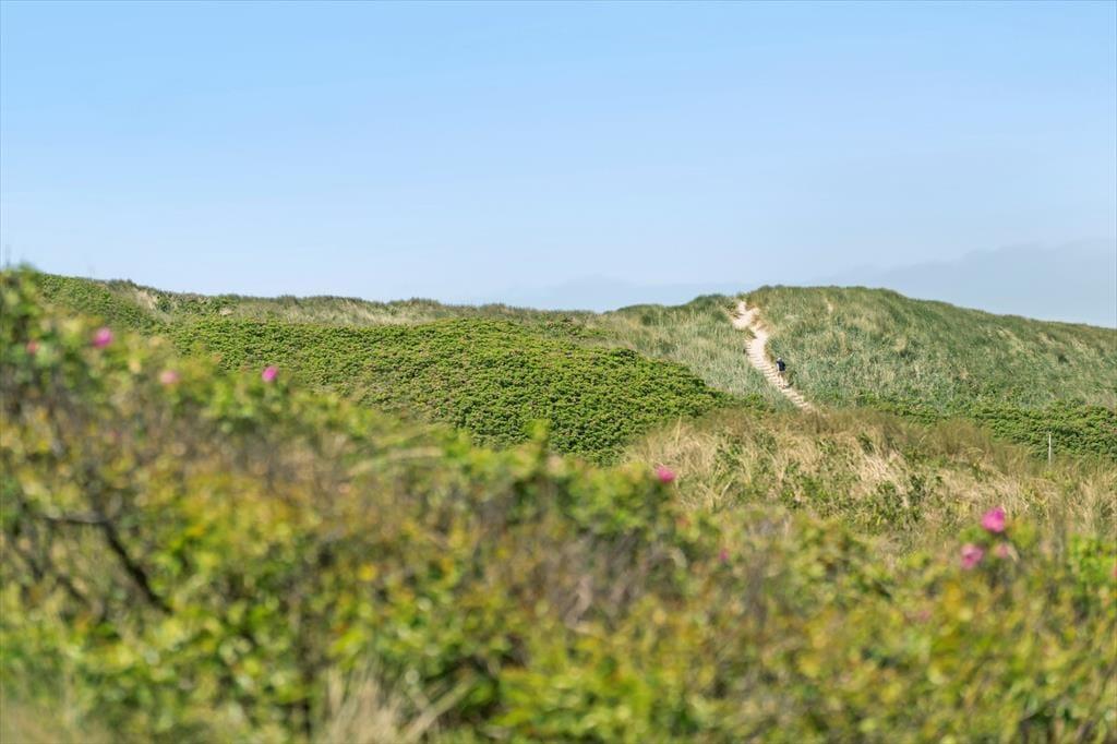 Feriens saunature kan eventuelt kombineres med et opkvikkende dyp i havet, for der er kun 300 meter til Aargab Strand fra sommerhuset. Det er skønt at bo så tæt på Vesterhavet, og samtidig har I også kort afstand til Ringkøbing Fjord her på Holmsland Klit. Vil I surfe eller fiske, kan det oplagt lade sig gøre, og hvis I medbringer cyklen, kan I se frem til masser af skønne cykelture i det flotte og flade landskab. Får I lyst til at spise ude på restaurant, er der kun 2,5 km til Hvide Sande, hvor I også kan købe ind, prøve at stå på vandski i kabelparken, tage i svømmehal og opleve den spændende fiskerihavn.