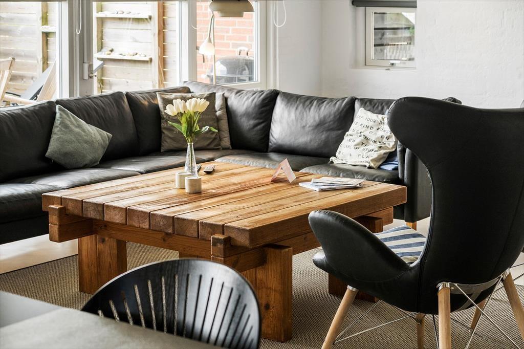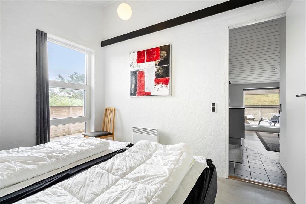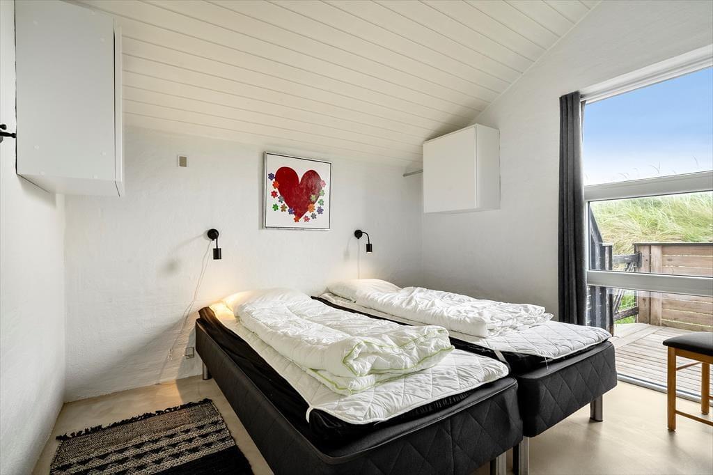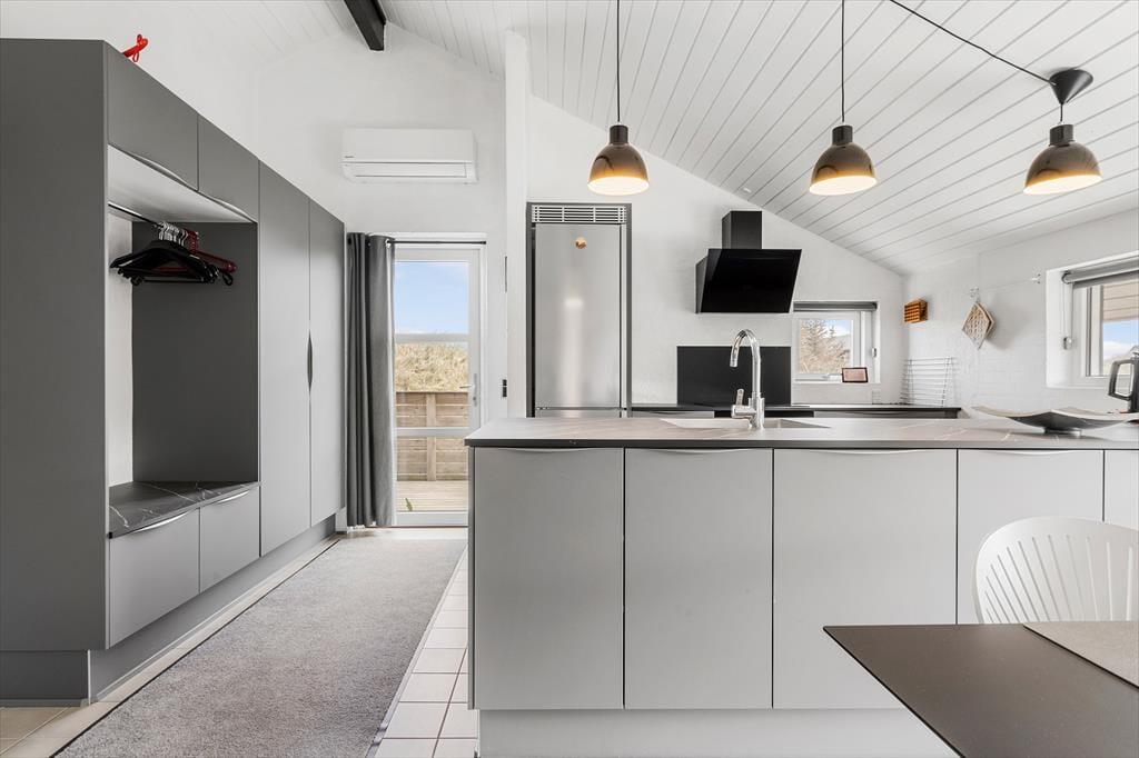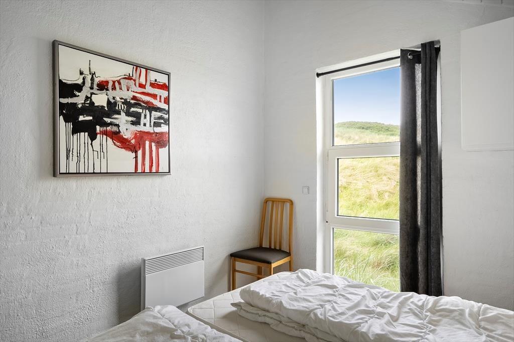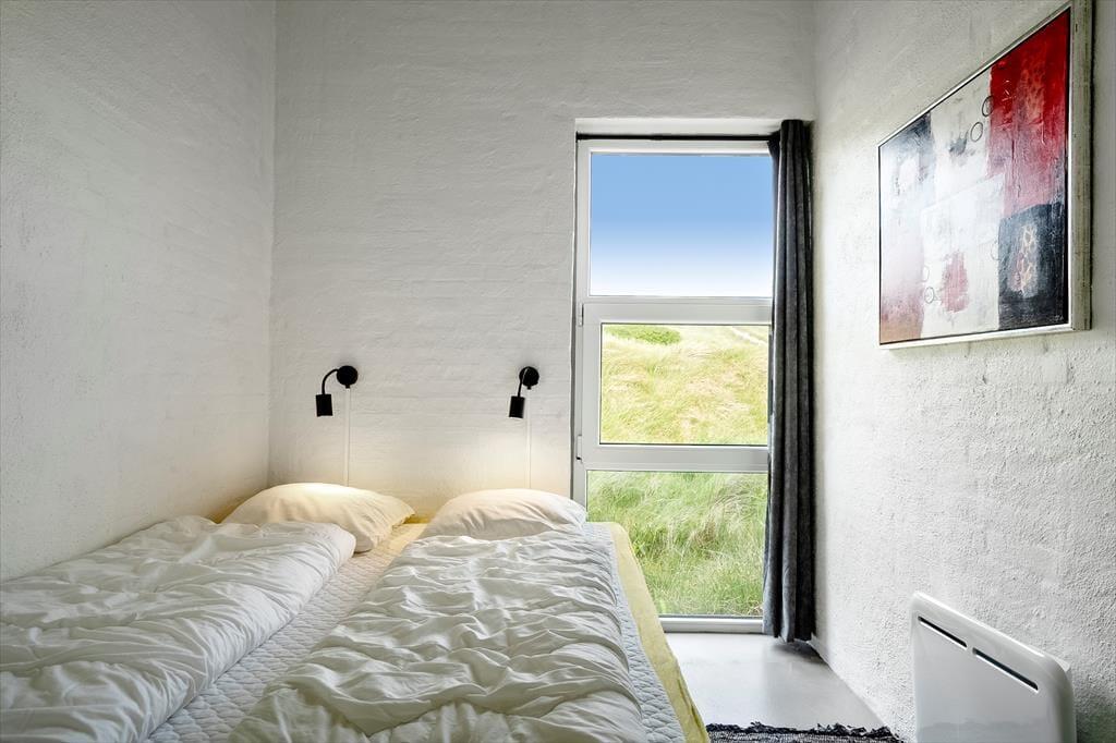 Inden døre får I 130 m2 at brede jer på, og de mange kvadratmeter er godt udnyttet, så I nemt og bekvemt kan være otte personer. Fire soveværelser er ligeligt fordelt i begge ender af sommerhuset, og med to badeværelser slipper I for at stå i kø for at få et morgenbrusebad. Fra det ene badeværelse har I endda adgang til en sauna, og hvis I trænger til afslapning og selvomsorg, er det perfekt med en tilbagelænet pause i varmen. De sociale hyggestunder kan oplagt foregå i opholdsafdelingen, hvor køkken-alrum og stue er forbundet. Vinduerne giver jer udsigt til det flotte klitlandskab og sørger for et fint lysindfald i løbet af dagen, og om aftenen kan I skrue op for hyggestemningen ved at tænde op i brændeovnen og sætte en god film på fladskærmen. Stuen byder for øvrigt på både bordfodbold og dart, så både børn og voksne kan se frem til mange timers sjov og underholdning.