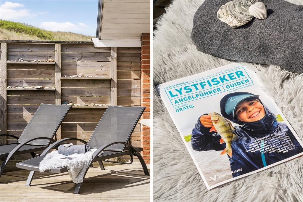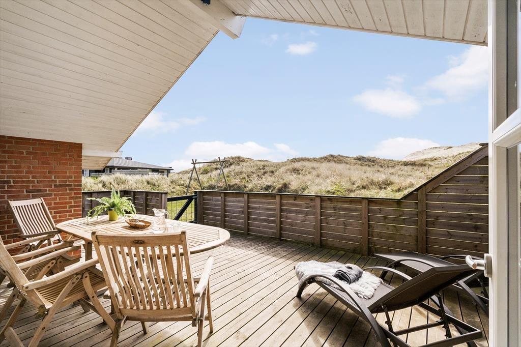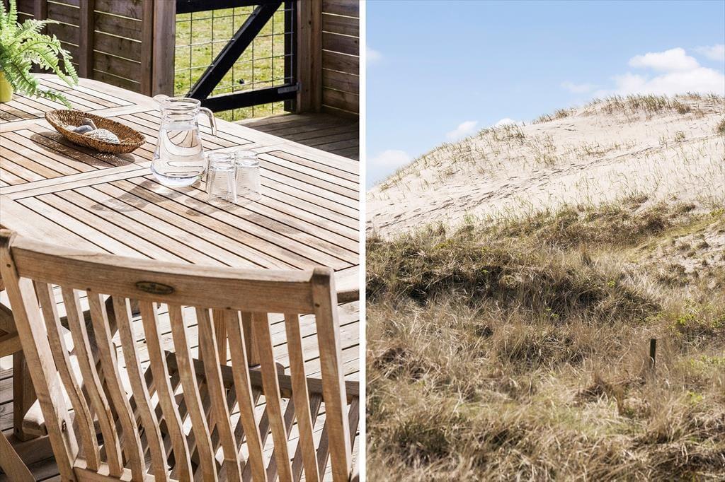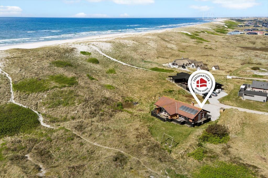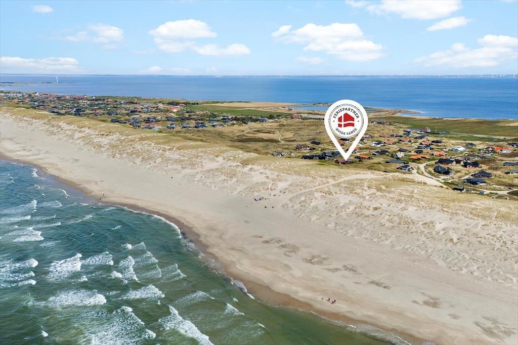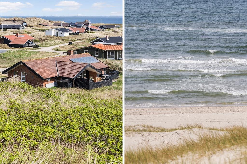 Den kuperede klitgrund ligger lige op mod det fredede areal, der skiller sommerhusområdet fra Aargab Strand, og I skal bare følge stierne op på toppen af klitrækken, før I har det flotteste panoramavue over Vesterhavet og Holmsland Klit. Den smalle landtange ligger spektakulært mellem havet og Ringkøbing Fjord, og uanset hvor I bevæger jer hen, har I fornemmelsen af at være tæt på vandet. Feriedagene kan oplagt byde på surfskole, lystfiskeri, badeture og de flotteste solnedgangsstunder på stranden, og hvis I kan lide at spise fisk, skal I glæde jer til at købe stort ind hos fiskehandlerne og røgerierne i havnebyen Hvide Sande.