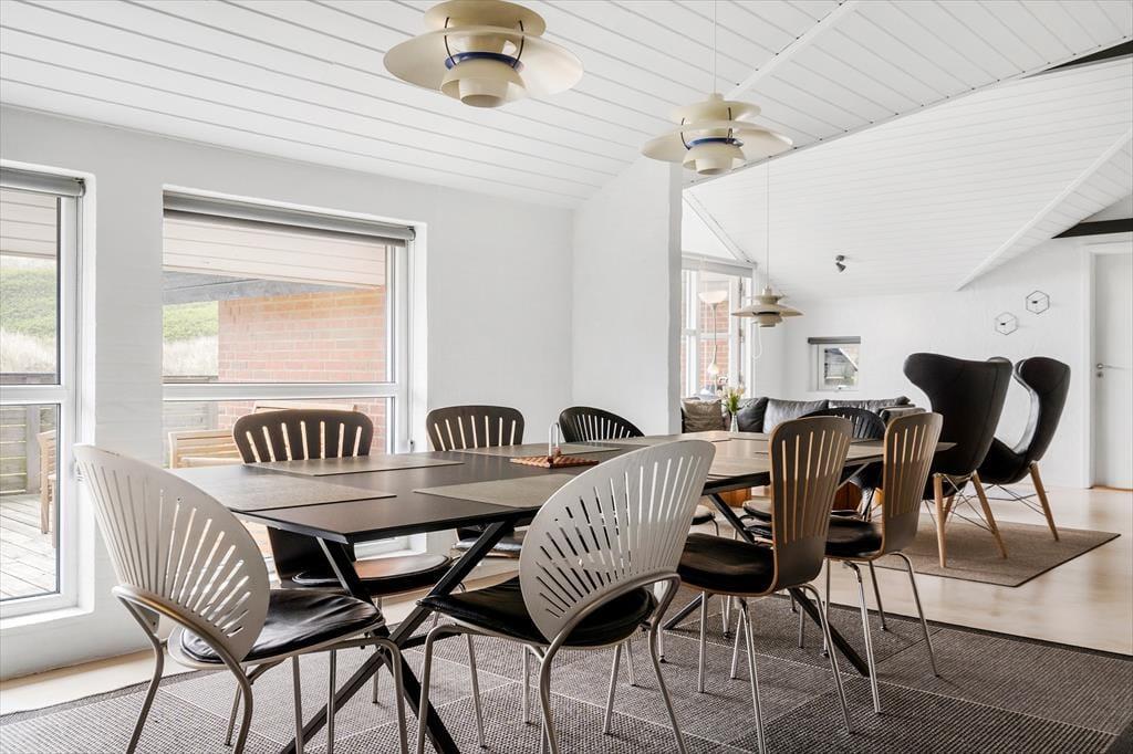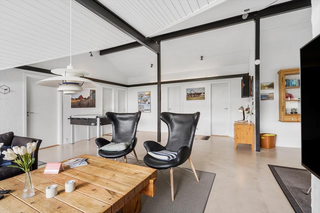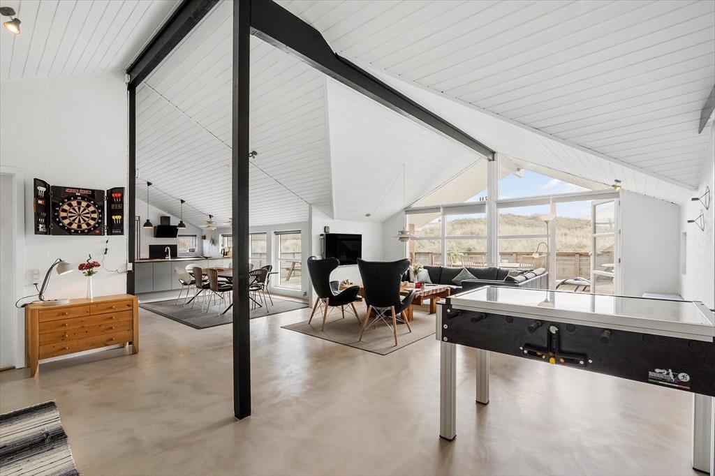 Er I på udkig efter et stort sommerhus med underholdning til børnene, dejlige udearealer og sengepladser til mange mennesker? Så skal I se nærmere på dette rummelige aktivitetshus, der ligger lige ud til den høje klitrække, der markerer overgangen til Aargab Strand.