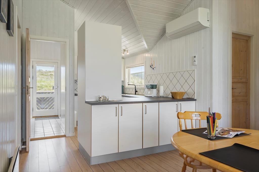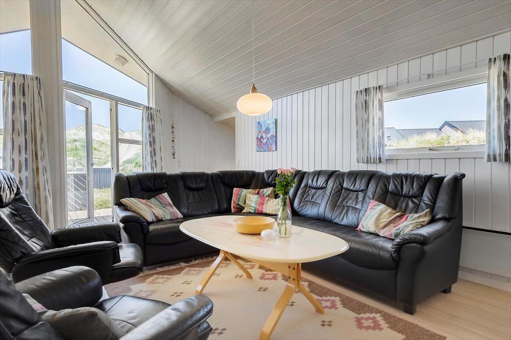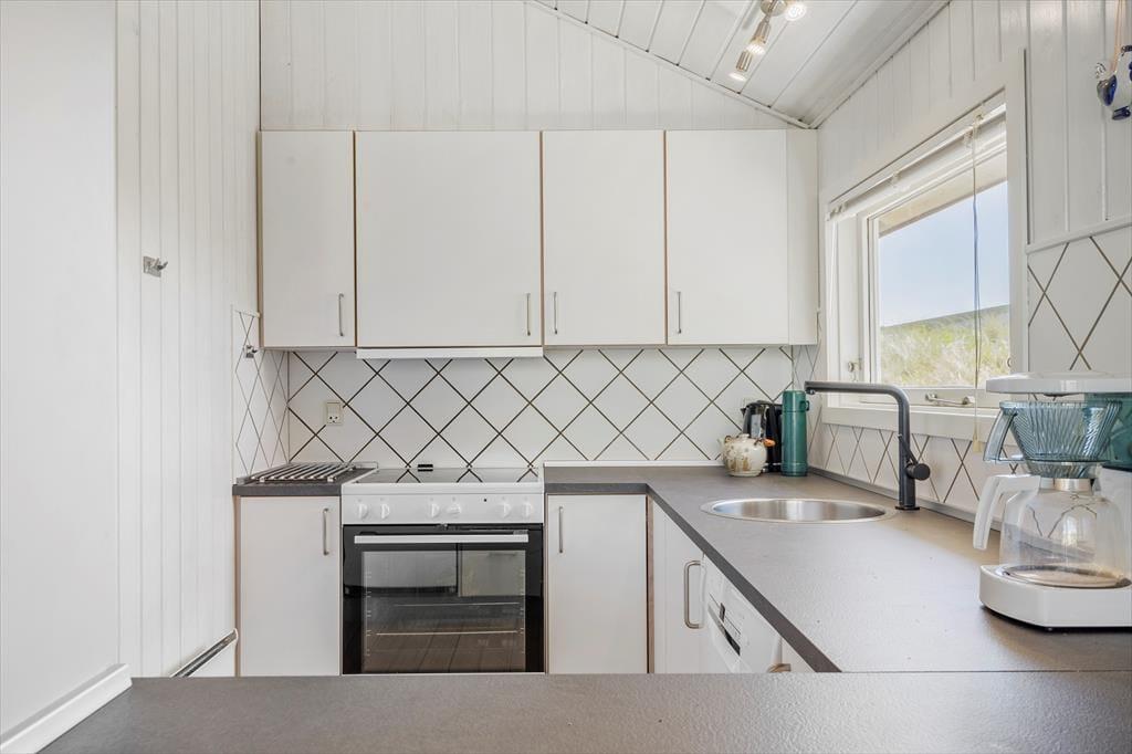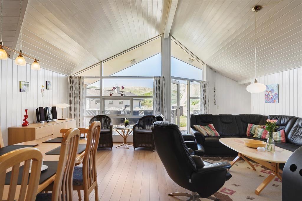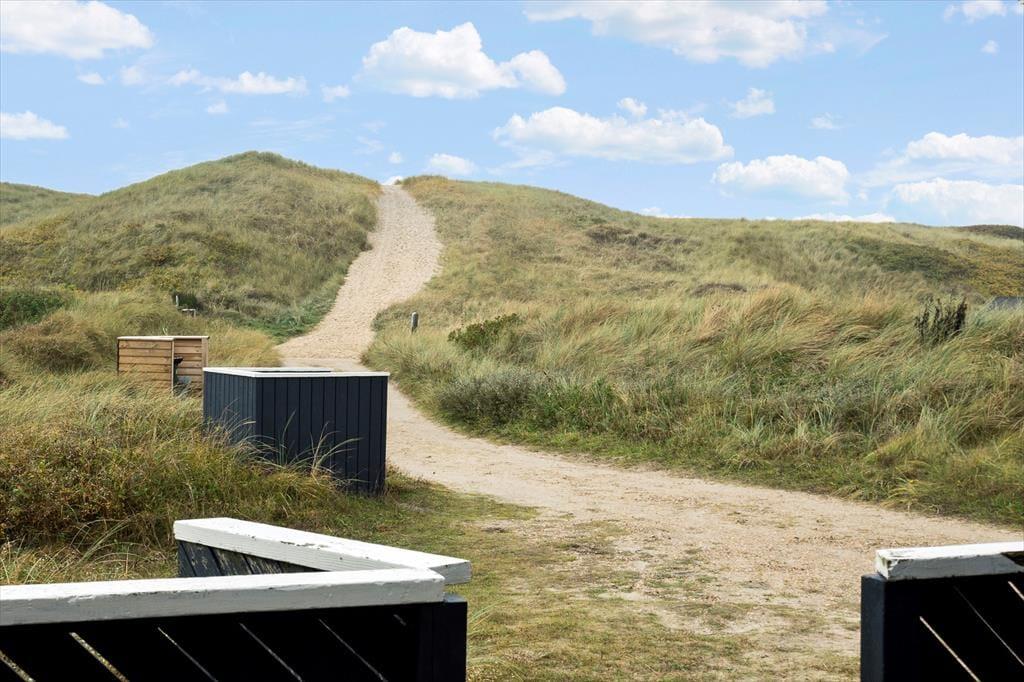 Hvis I drømmer om at bruge mest muligt at ferien i vandkanten, har I kig på det helt rette hus. Fra stuen og terrassen kan I se hen på den yderste klitrække ud mod Aargab Strand, og hvis I går op på klittoppen har I den flotteste udsigt over den smukke kyststrækning og Vesterhavet. Holmsland Klit er en smal landtange, så mod øst har I samtidig kort afstand til Ringkøbing Fjord, der inviterer til surfing, SUP, lystfiskeri, fuglekiggeri og meget mere. Uanset om I kører på cykel eller i bil gennem Holmsland Klits naturskønne landskab, har I nem adgang til Hvide Sande, der har et godt udvalg af spisesteder og butikker samt spændende arrangementer og ferieaktiviteter særligt i højsæsonen.