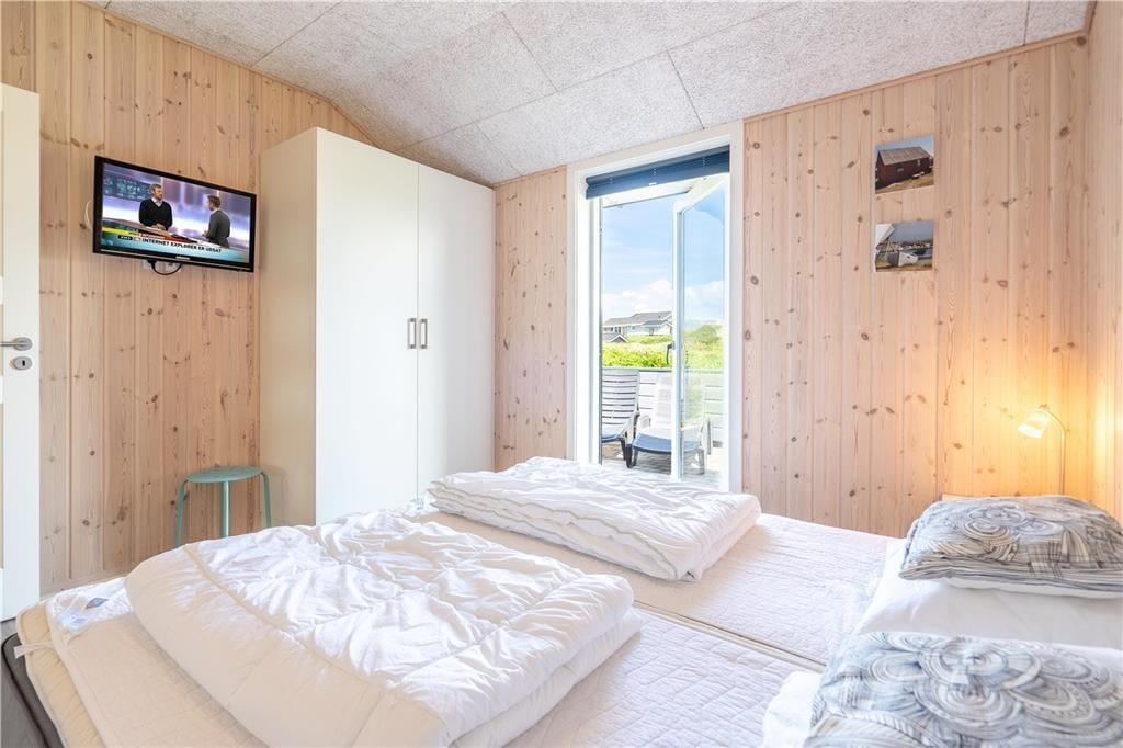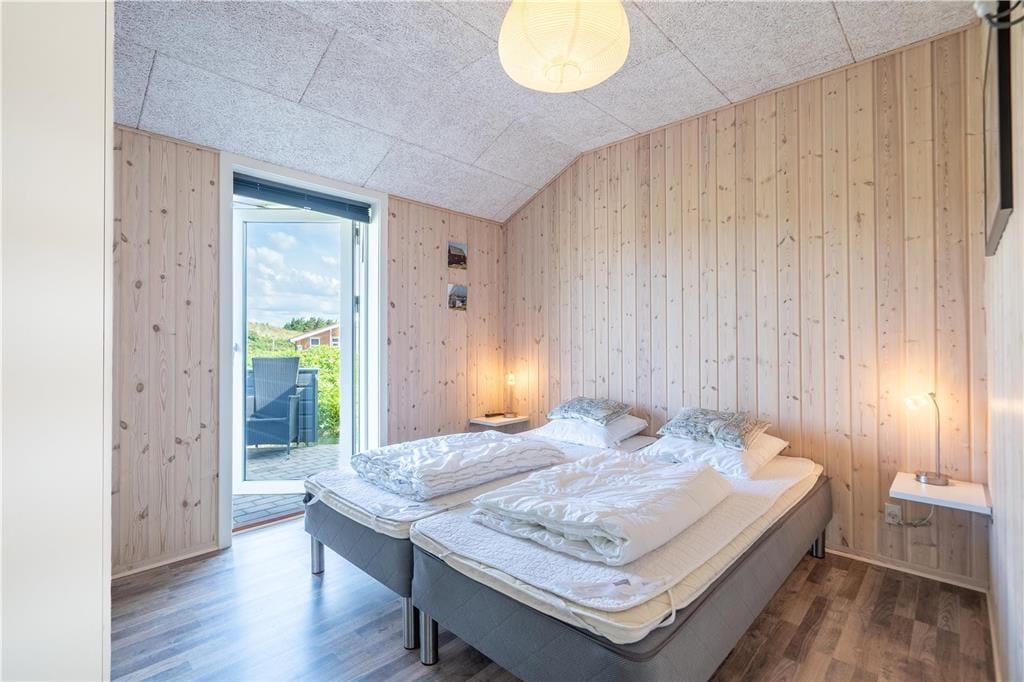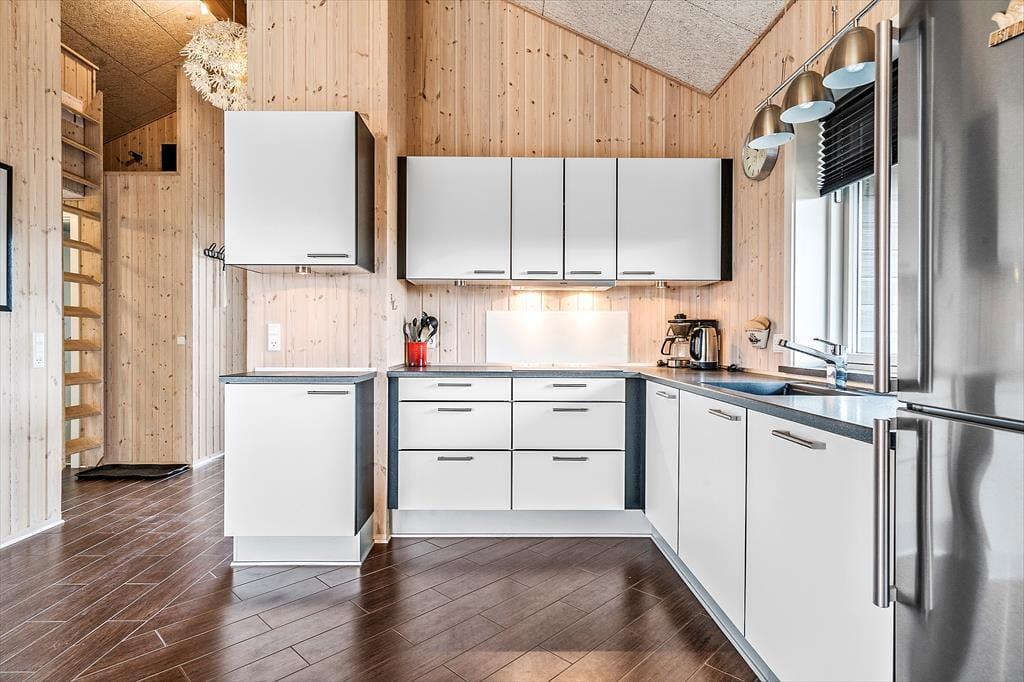 Blot et hurtigt blik på den velordnede facade og de velindrettede rum vil afsløre, at der er styr på sagerne her i sommerhuset. Også knap så synlige detaljer bidrager til helhedsindtrykket, for der er eksempelvis jordvarme, som er med til at holde energiforbruget i bund. I alle rum er der gulvvarme, og i stuen står en brændeovn, som kan skrue lidt ekstra op for hyggestemningen, når I sidder samlet rundt om spisebordet til et lækkert aftensmåltid. Maden kan I trylle frem i det veludstyrede køkken, der er en integreret del af stuen – og her er der selvfølgelig opvaskemaskine, der gør det let at rydde af. I stedet kan I bruge tiden på at slappe af i sofaen, eller hvad med et spabad og en tur i sauna som en perfekt afslutning på feriedagen? I sommerhuset er der to flotte badeværelser, og med tre soveværelser og en god hems har I sovepladser til seks voksne og to børn.