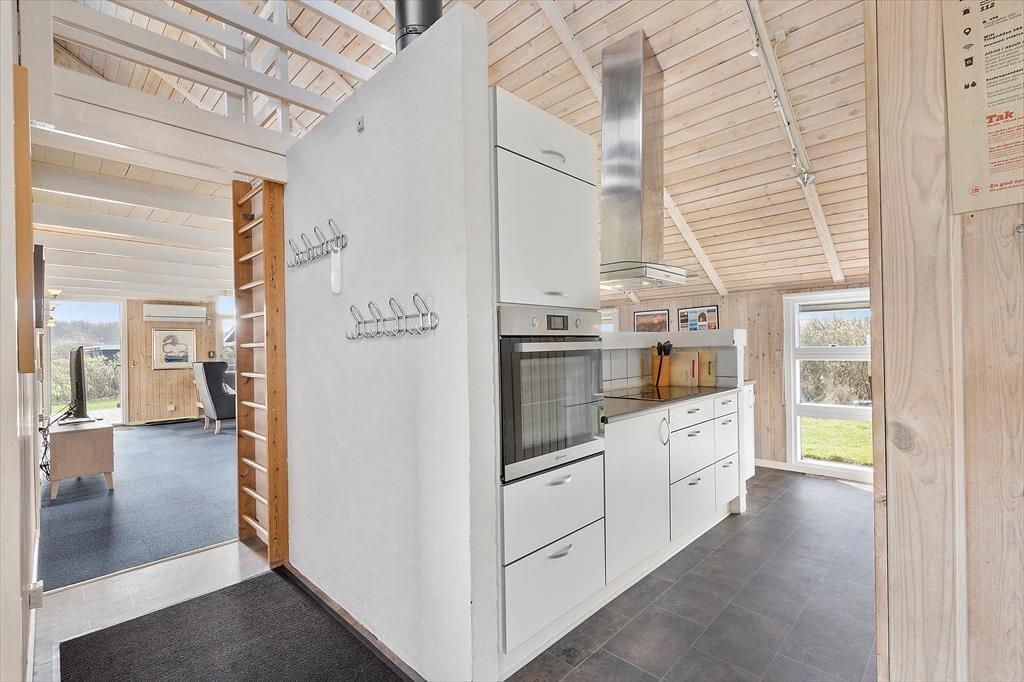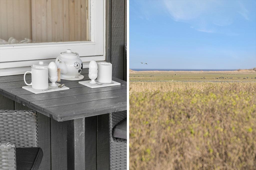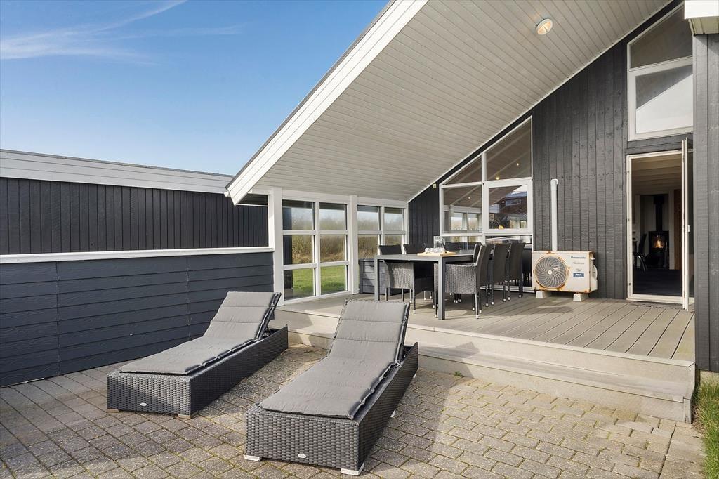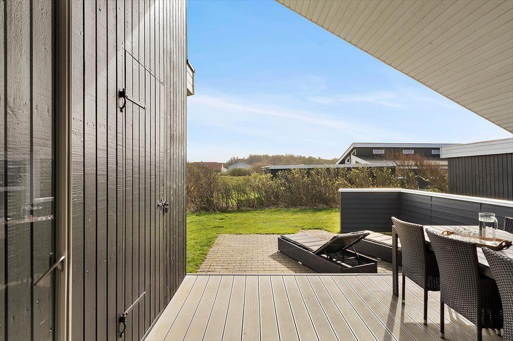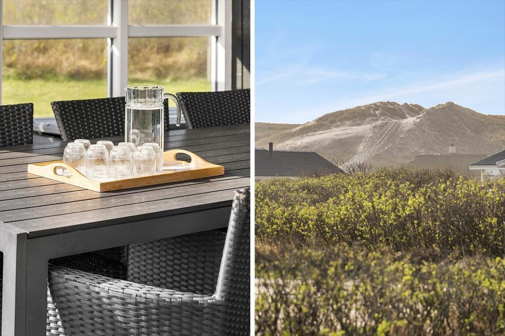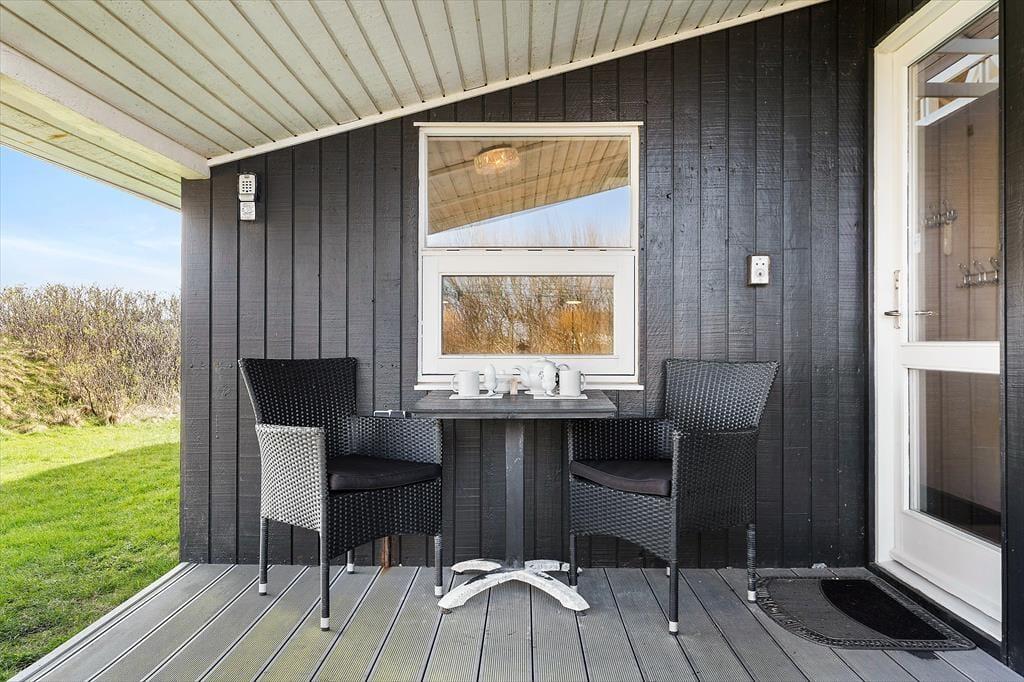 Hvis I ikke drømmer om andet end at slappe af og nyde Holmsland Klits friske havluft og tilbagelænede atmosfære, er det perfekt at tage en rolig eftermiddag på terrassen. Mod nordøst ligger en overdækket terrasse, og syd for huset breder et stort og delvist overdækket terrasseområde sig. Nær huset er der gyngestativ og sandkasse, og i carporten kan bilen parkeres. En jordvold skærmer grunden af mod øst, så I kan opholde jer helt ugeneret på naturgrunden – og hvis I går op på toppen af volden, kan I nyde den fine udsigt over Holmsland Klit og Ringkøbing Fjord.