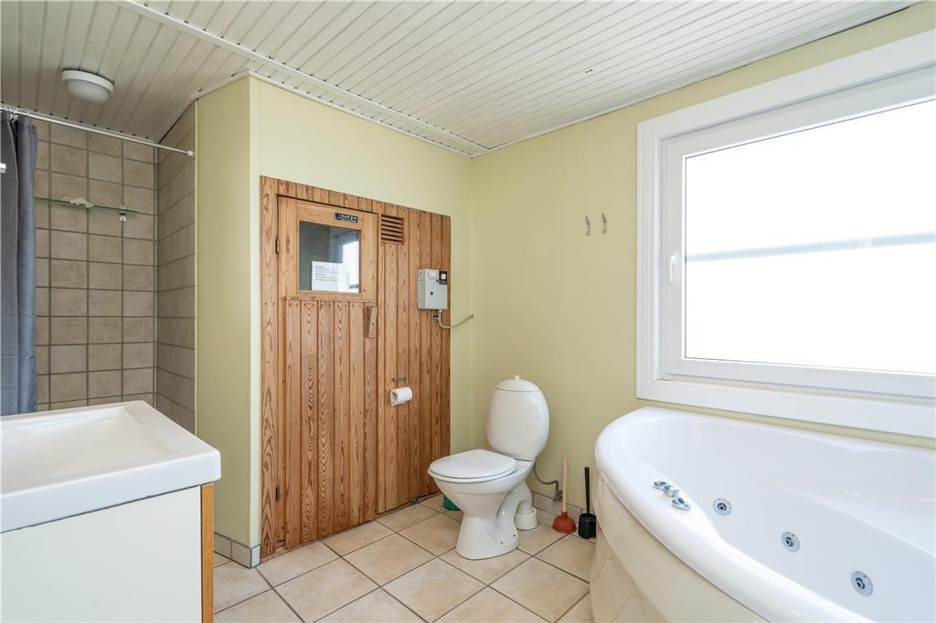Det smukke vue over det åbne landskab bliver inviteret lige ind i stuen takket være rummets store vinduer. Det giver også et skønt lysindfald i løbet af dagen, hvilket spiller godt sammen med den pæne og velfungerende indretning. Køkkenet ligger som en integreret del af stuen, og med brændeovn og fladskærms-tv er der lagt op til mange hyggestunder. Der er trægulv i huset – ikke bare her, men også på de tre gode soveværelser, der har sengepladser til fire personer. På badeværelset er der klinkegulv med indlagt varme, og det er bestemt ikke eneste gode detalje. Foruden en bruseniche er rummet nemlig udstyret med både spabad og sauna, så det er wellness for både krop og sjæl at kunne slappe af her.