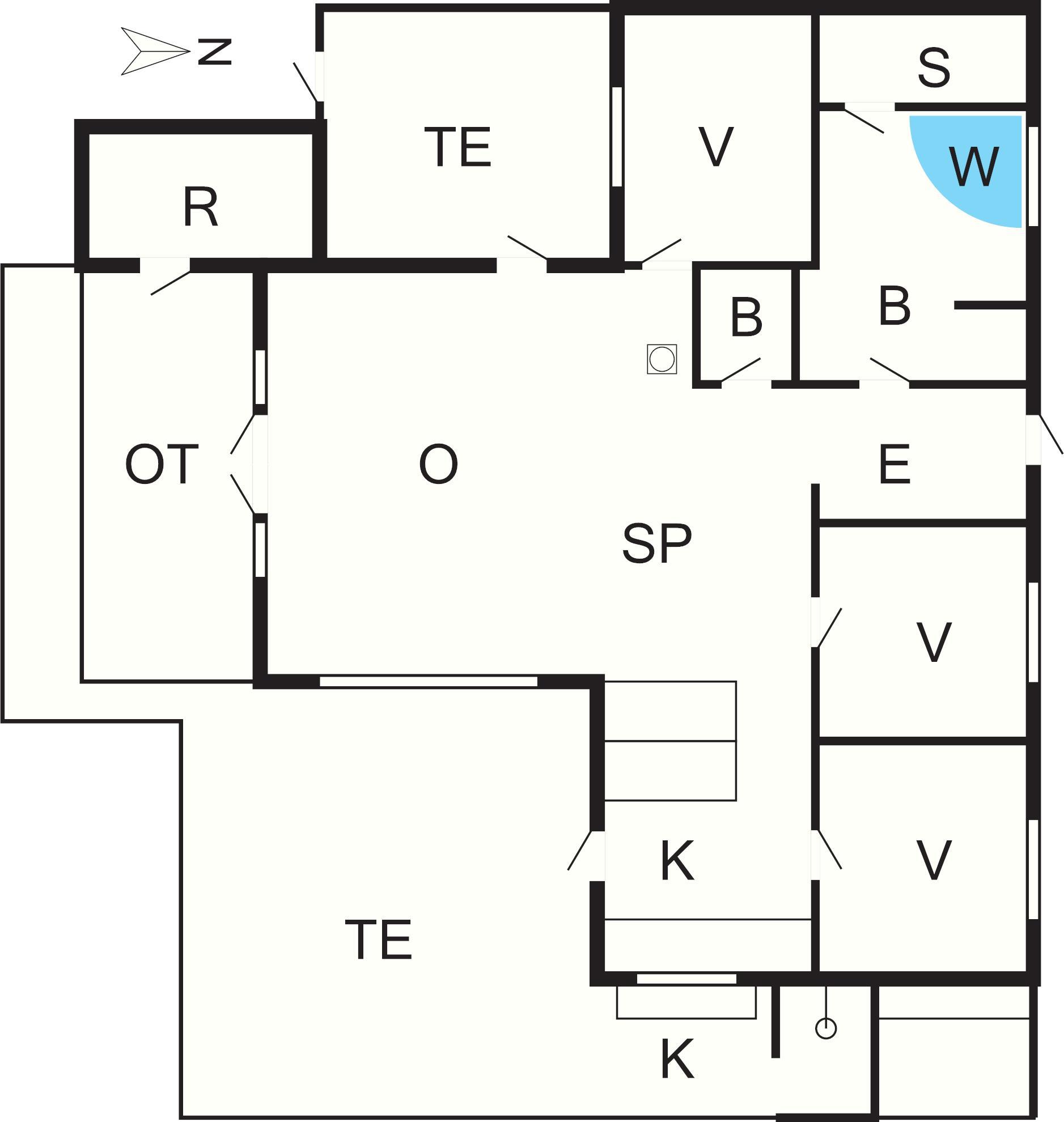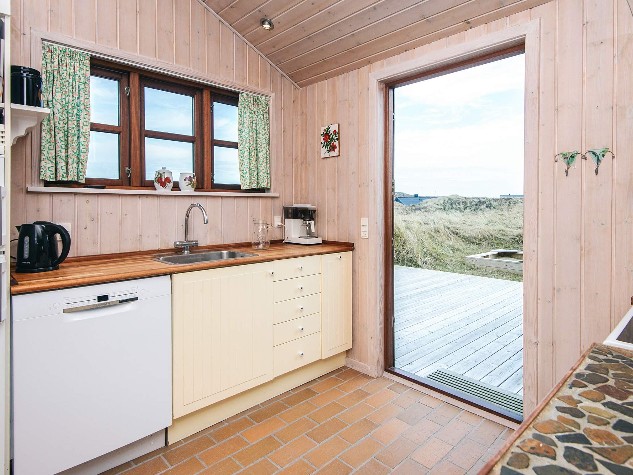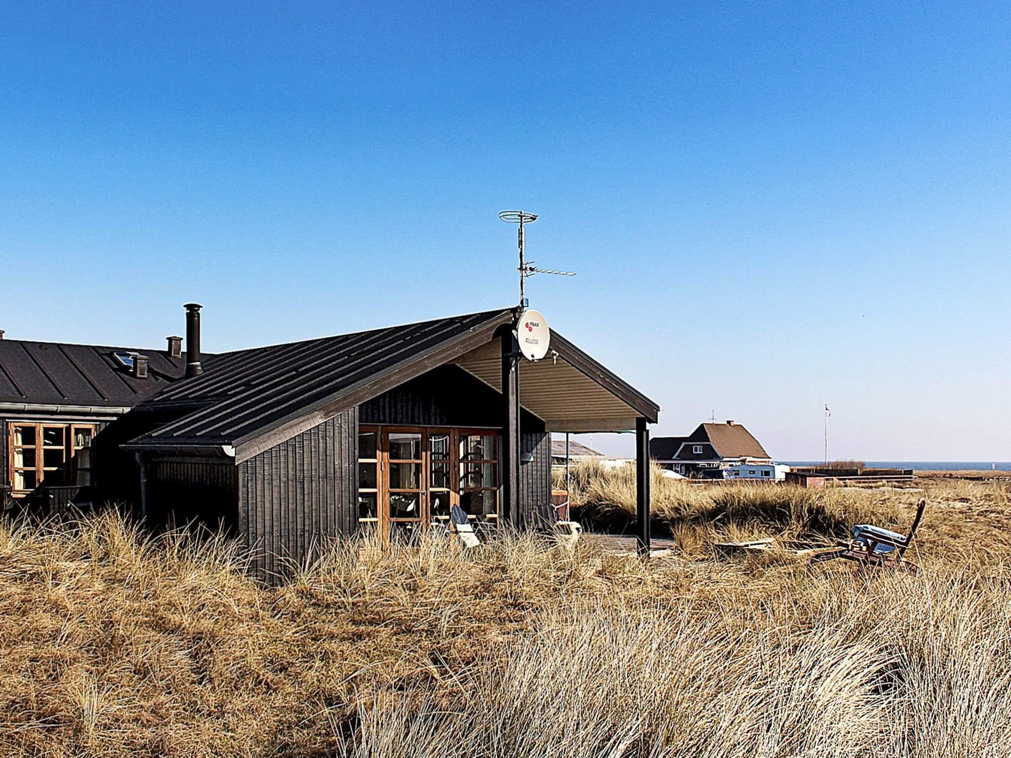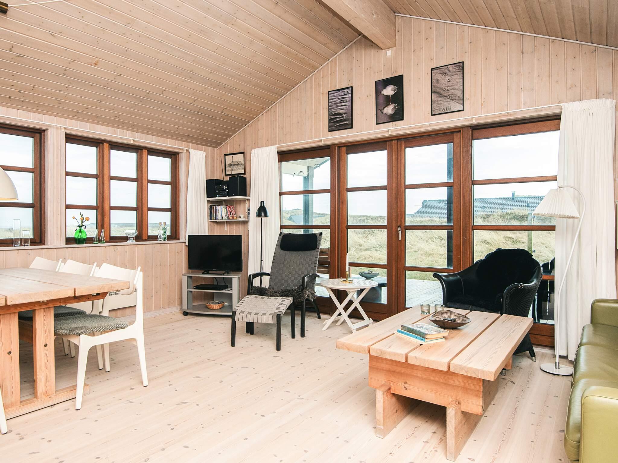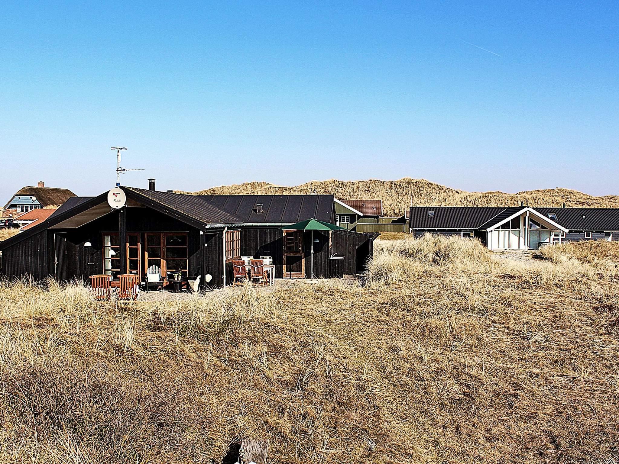 Velindrettet sommerhus beliggende ca. 200 m fra Vesterhavet og ca. 500 m fra fjorden. Til huset hører tre terrasser, hvoraf den ene er lukket, så små børn og kæledyr ikke kan løbe ud. Fra husets østvendte terrasse og stuen er der udsigt over eng og fjord. Den personlige og detaljeorienterede indretning skaber de optimale rammer for ferien. I køkkenet er der gulvvarme. Udenfor er der bruser med koldt og varmt vand. Bruseren er afskærmet af en læskærm. Rundt om huset er der flere hyggekroge med læ og afslapningsmuligheder. Husets fryser befinder sig i skuret. Udlejes ikke til ungdomsgrupper.