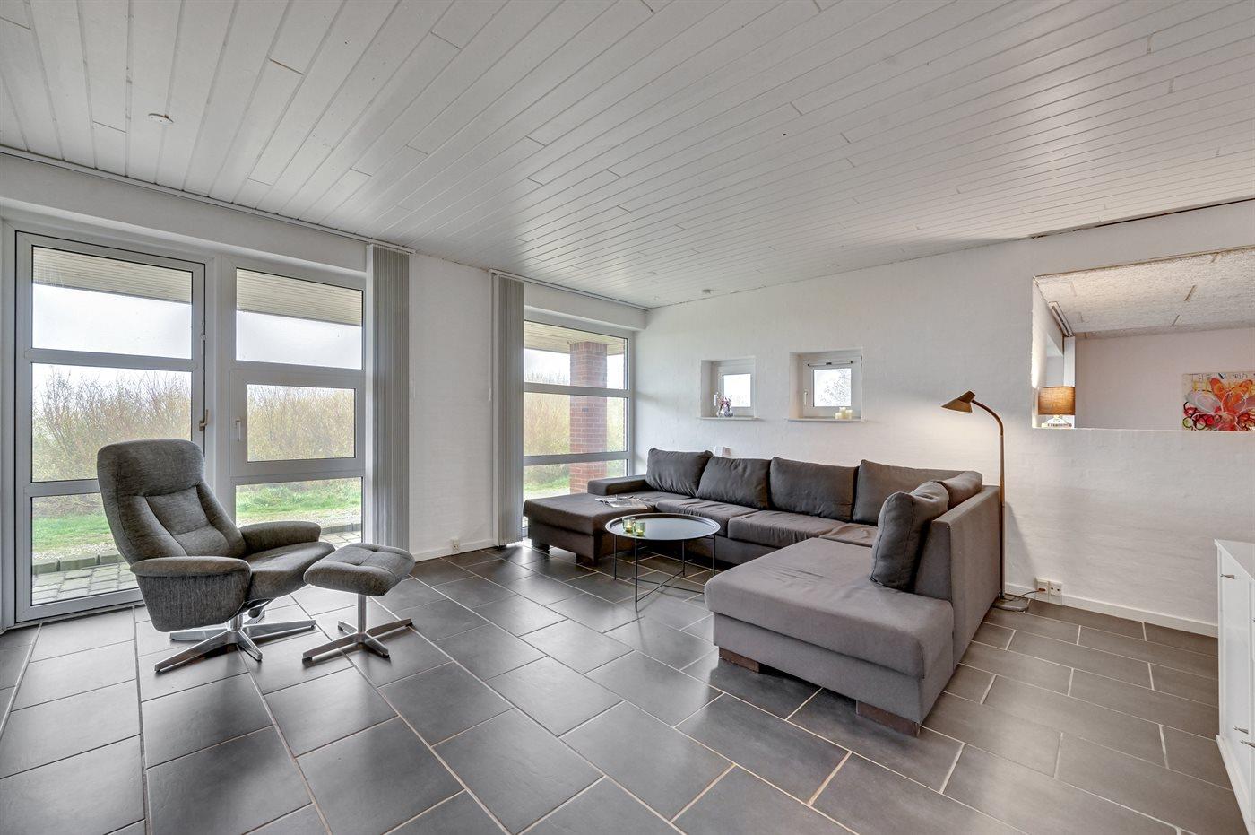 Lyst og rummeligt sommerhus tæt på Vesterhavet og Ringkøbing Fjord med stor have og aktivitetsrum.