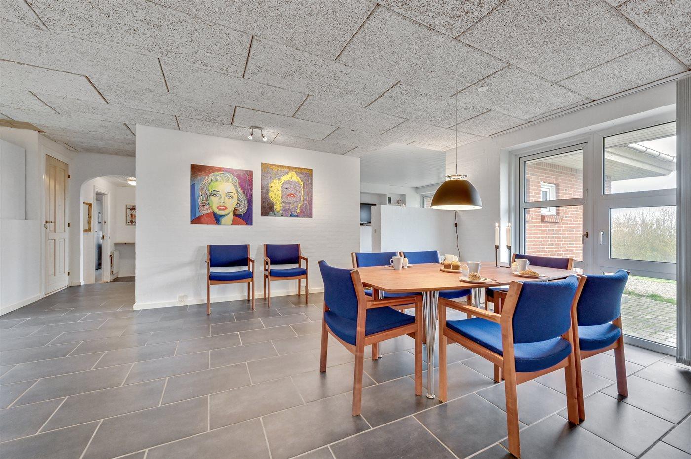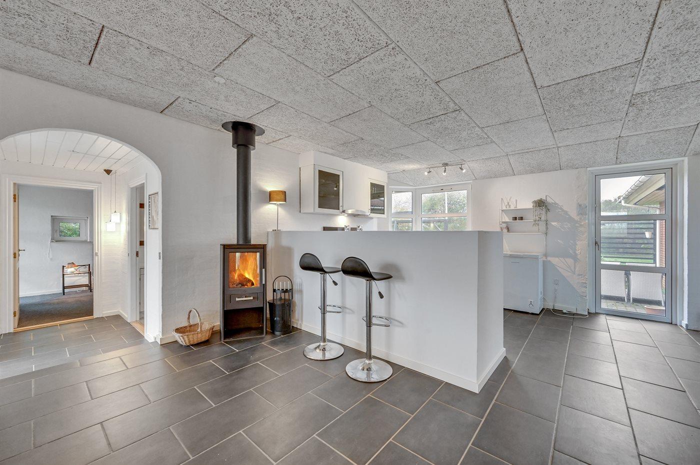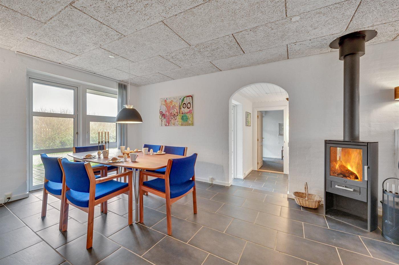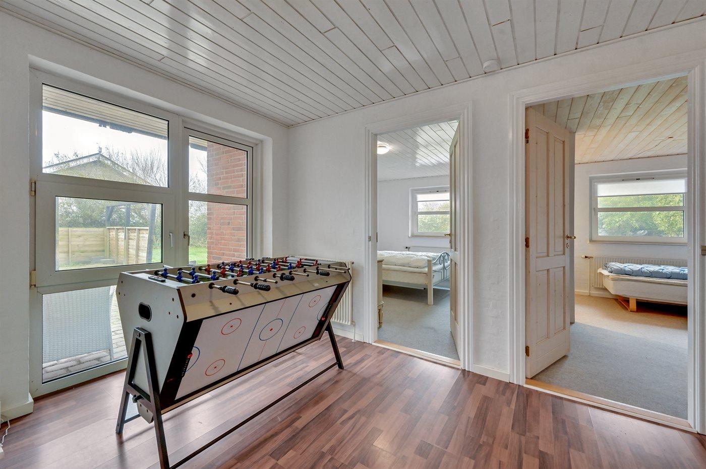 Her kan der hygges med et brætspil ved spisebordet i det store køkken-alrum mens brændeovnen knitrer i baggrunden, eller du kan slænge dig i sofaen med en god bog. Hvis du ønsker lidt mere action, er der også mulighed for at udfordre hinanden i f.eks. bordfodbold.