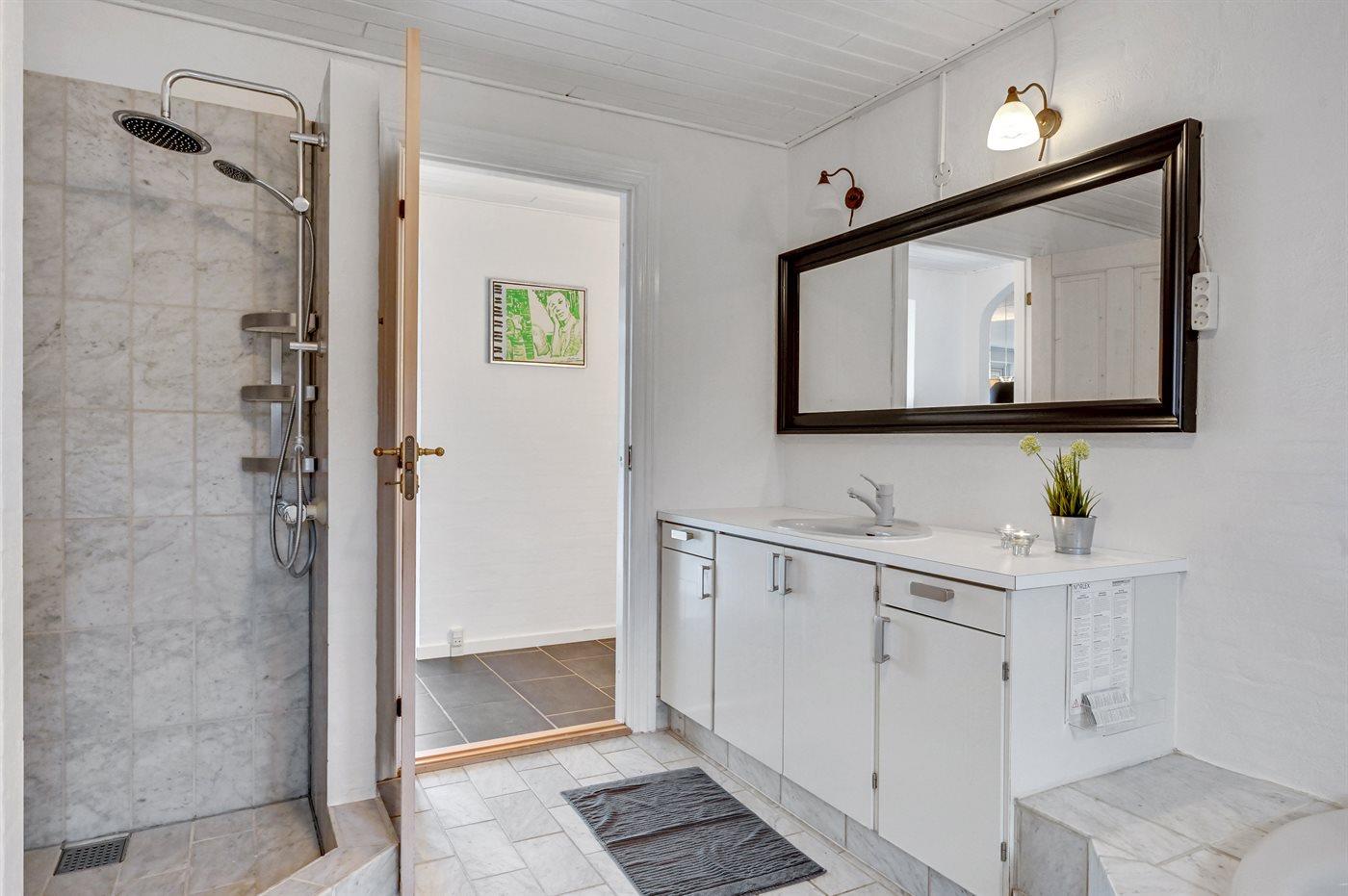 Der er 2 badeværelser med bruseniche og 2 toiletter. Der er gulvvarme på 2 badeværelser.