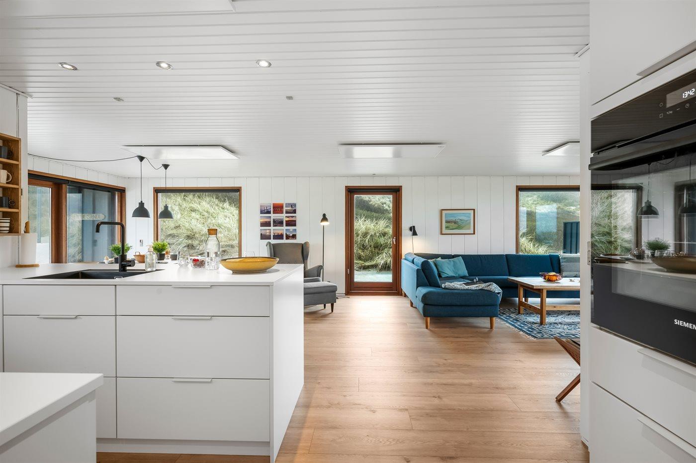 Beliggenheden er aldeles enestående. I dette charmerende sommerhus har du Vesterhavet i forhaven og Ringkøbing Fjord i baghaven. Fra sommerhuset er der en fantastisk udsigt både over klitlandskabet og over Ringkøbing Fjord.