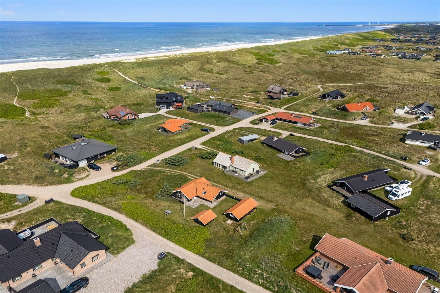 Sommerhuset ligger tæt på den hyggelige fiskerby Hvide Sande, hvor du kan købe friske fisk, nyde en dejlig frokost eller gå på shopping i de små butikker. Er du mere til en aktiv ferie, er der gode muligheder for at vandre eller cykle på natur-cykelstier, der snor sig gennem klitterne og sommerhusområderne. Området er desuden meget kendt for sine gode surf-muligheder både ved Vesterhavet, men også ved Ringkøbing Fjord.