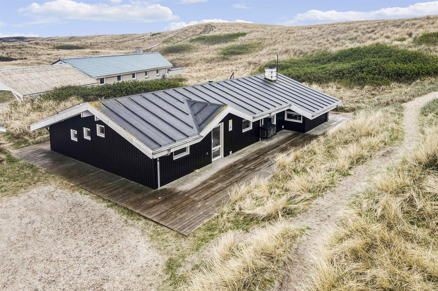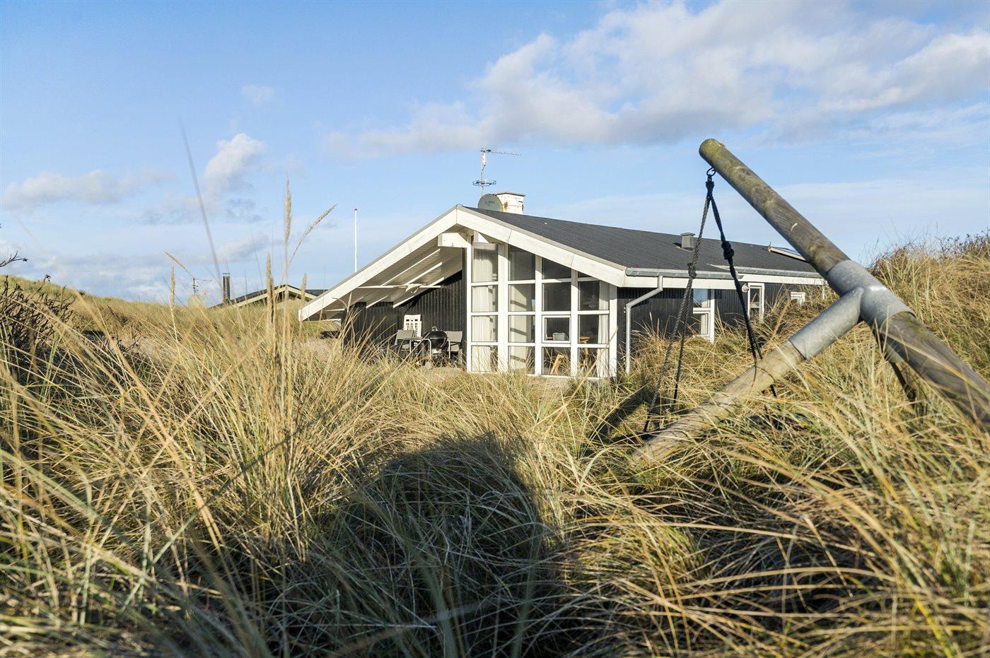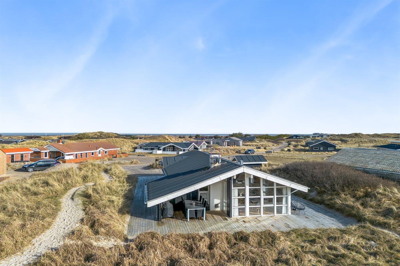 Det ligger i første klitrække, og når du sidder på terrassen en varm sommerdag eller en lun sommeraften, er du nærmest midt i det smukke klitlandskab med lyden af Vesterhavets brusen i ørerne. Er du trukket indenfor, er du takket være de store vinduespartier stadigvæk i tæt kontakt med naturen.