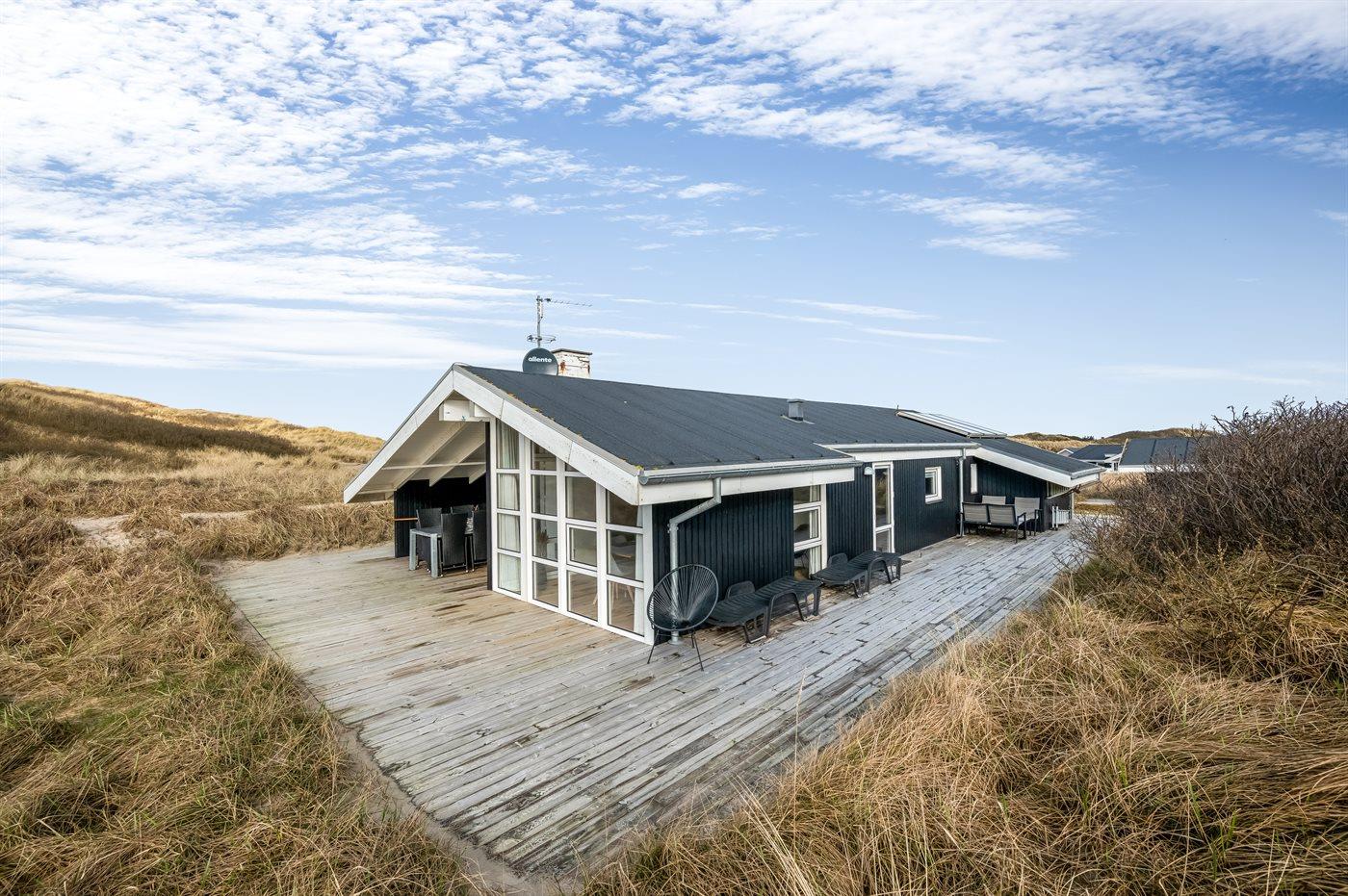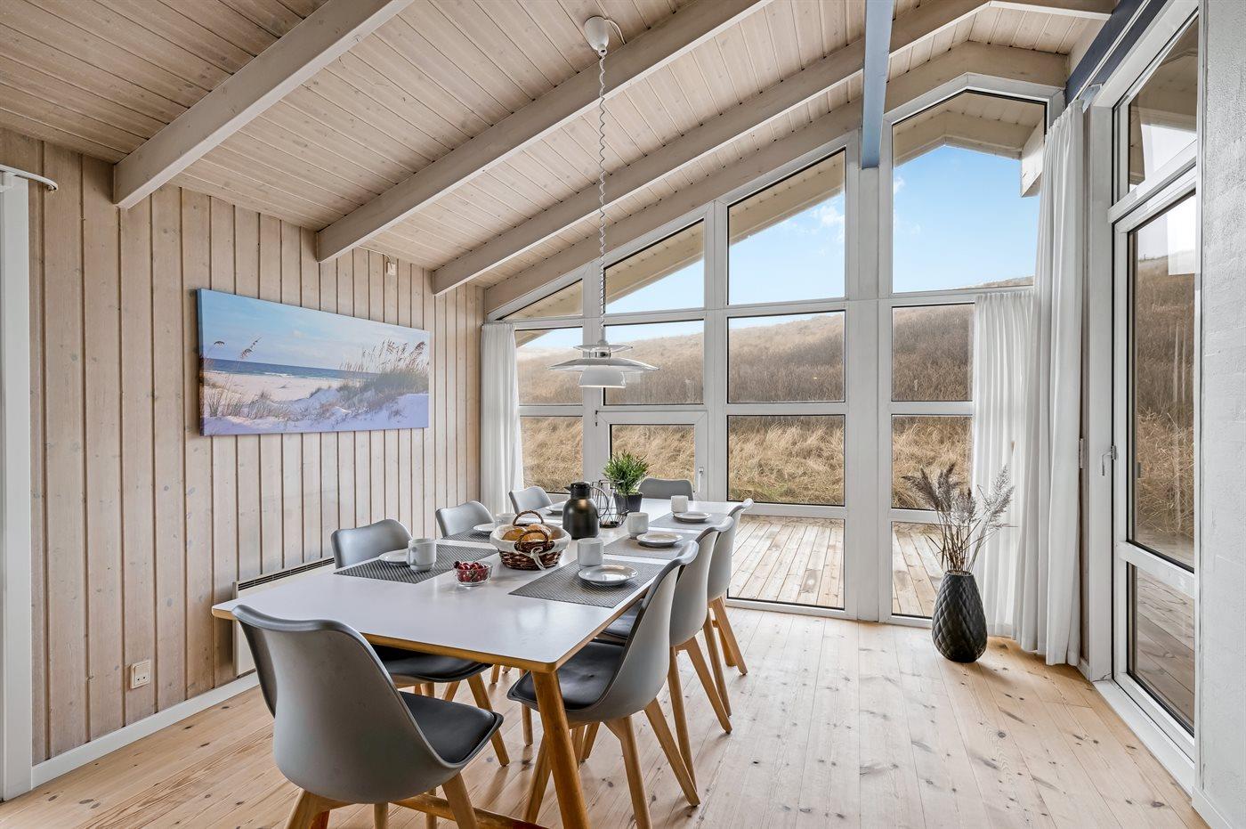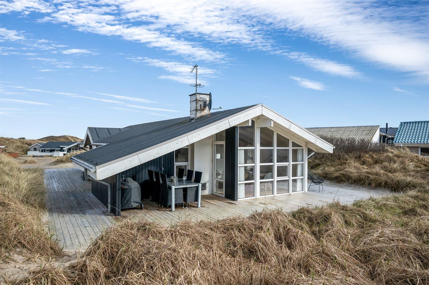 Det ligger i første klitrække, og når du sidder på terrassen en varm sommerdag eller en lun sommeraften, er du nærmest midt i det smukke klitlandskab med lyden af Vesterhavets brusen i ørerne. Er du trukket indenfor, er du takket være de store vinduespartier stadigvæk i tæt kontakt med naturen.