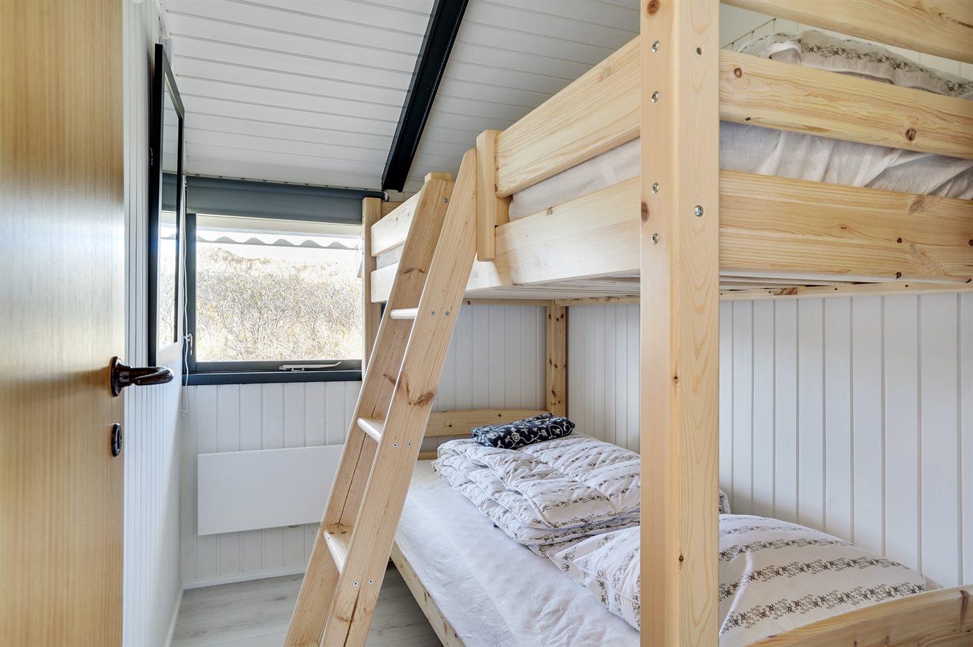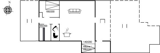 Huset har plads til 6 personer og sovepladserne fordeler sig på 1 soveværelse med dobbeltseng 180 x 200 cm, 1 værelse med køjeseng 90 x 200 cm og stue med alkoven 140 x 200 cm. Derudover er der en hems med 2 foldemadrasser. Til de små er der en foldeudseng og en høj barnestol.