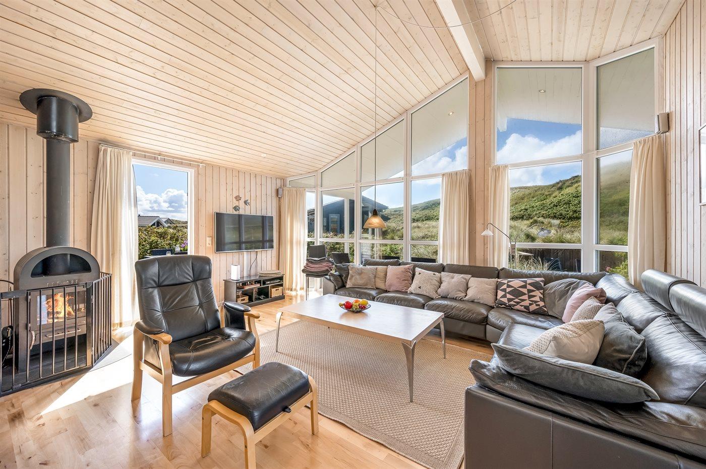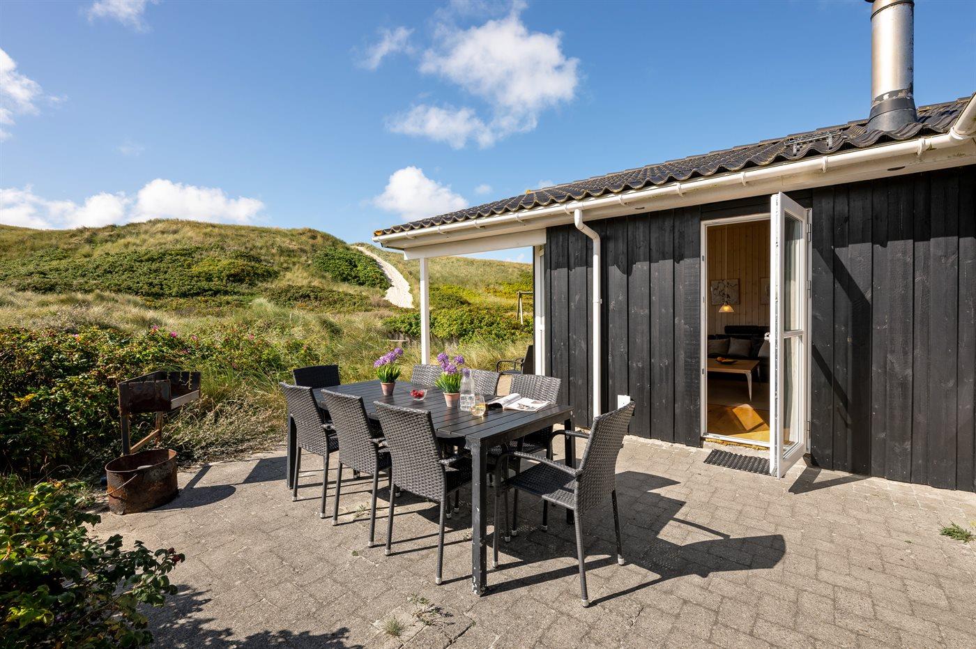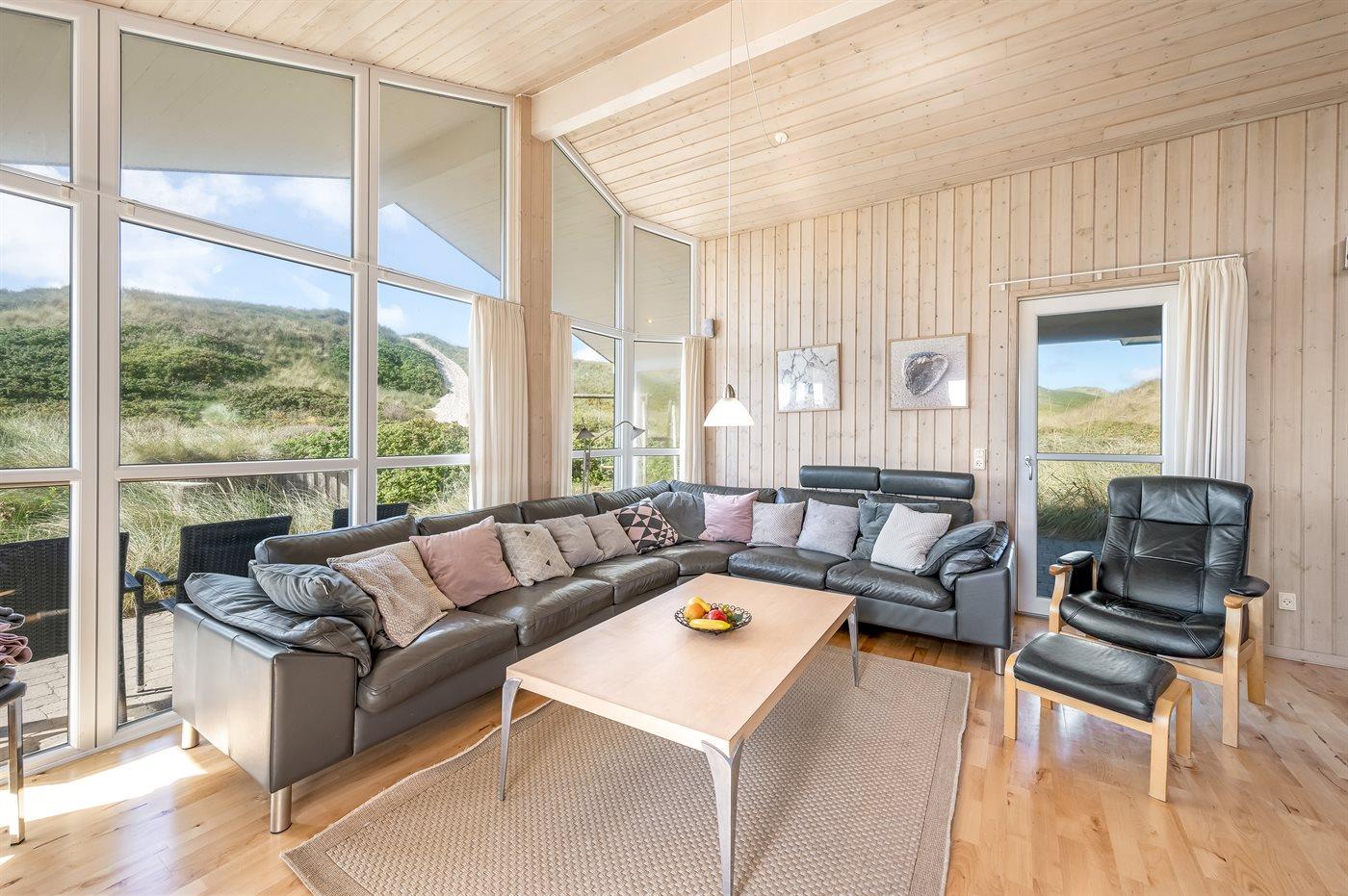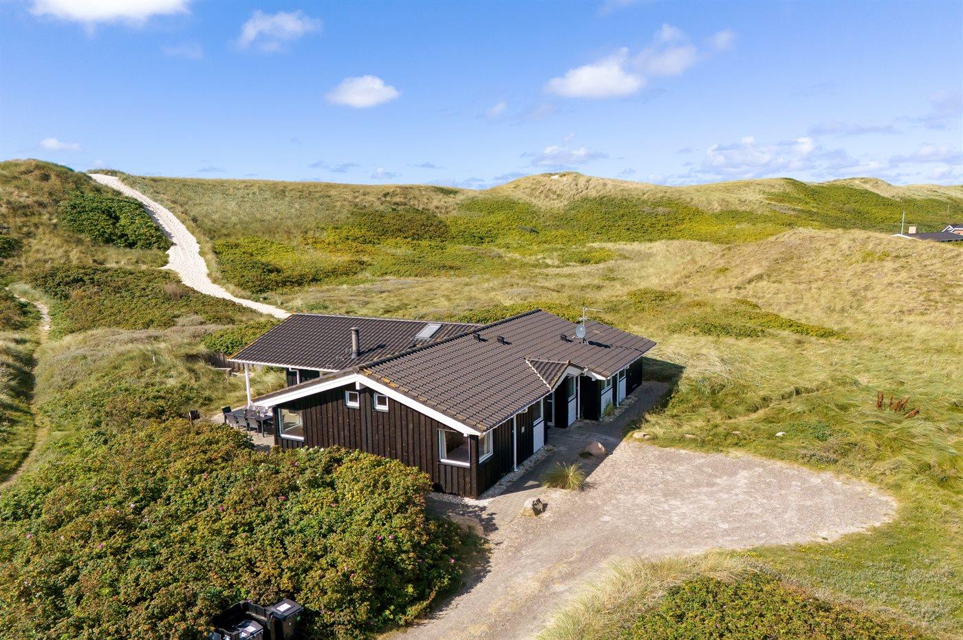 Allerede når du kører ud imod dette smukke sommerhus fornemmer du den helt fantastiske beliggenhed. Men, den helt store wauw-oplevelse får du, når du har sat taskerne i det store bryggers og træder ind i det store og lyse køkken-alrum. Du får en oplevelse af at du befinder dig midt ude i naturen – midt i det smukke klitlandskab - selvom du står inde i sommerhuset. Når du sidder på terrassen en varm sommerdag eller en lun forårsaften, er det som at sidde midt i det smukke klitlandskab med lyden af Vesterhavets brusen i baggrunden. Er du trukket indenfor, er du takket være de store vinduespartier stadigvæk i tæt kontakt med naturen.