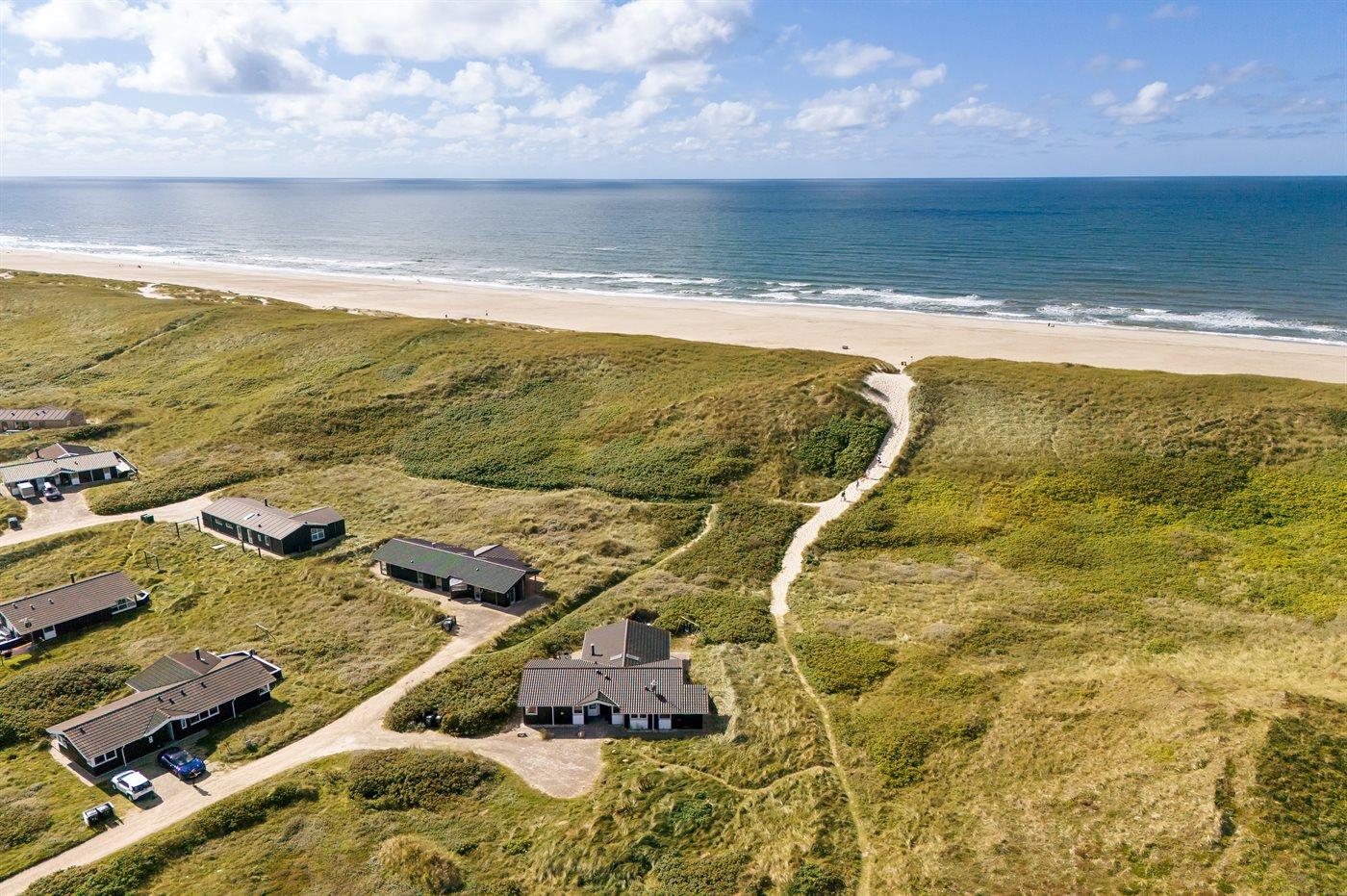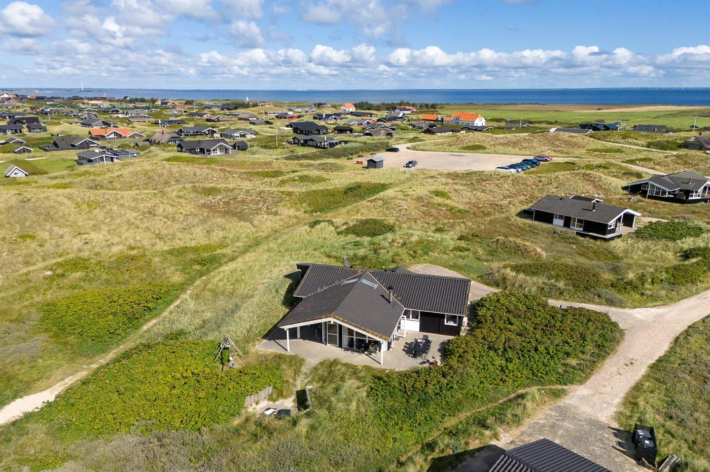 Ferieboligen er beliggende på en 1391 m² stor klitgrund. Der er 75 m til havet. Der er 400 m til fjorden. Nærmeste forretning er beliggende i en afstand af 3000 m. Til ferieboligen hører åbent terrasseareal. Desuden er der overdækket terrasse. Der er redskabsrum. Gynge. Parkering ved ferieboligen.