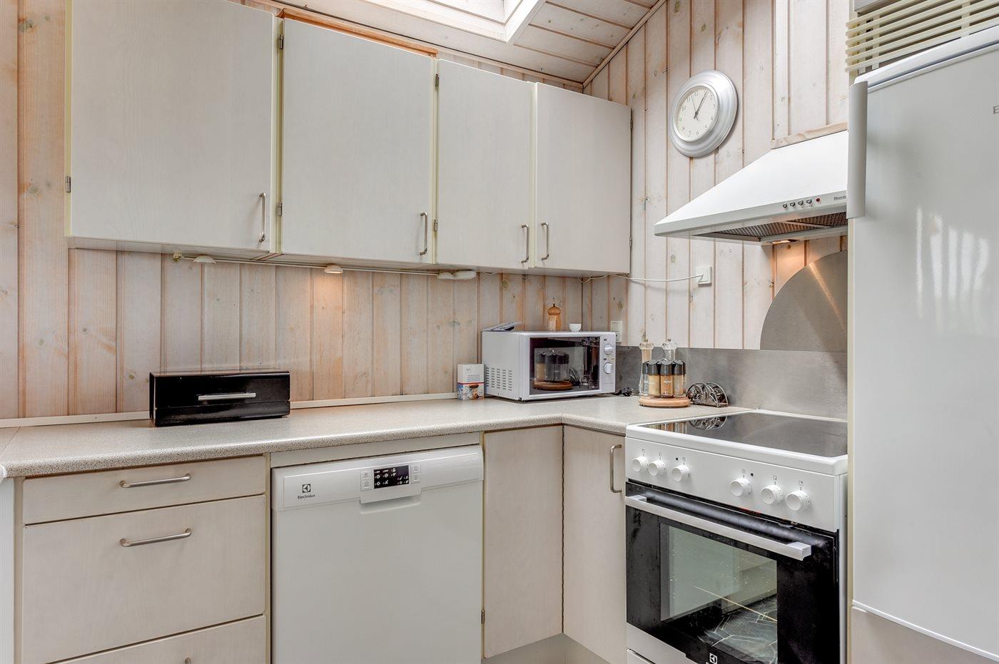 Køkkenet er udstyret med 1 køleskab. Der er 4 keramiske kogeplader, varmluftovn, mikrobølgeovn samt opvaskemaskine.