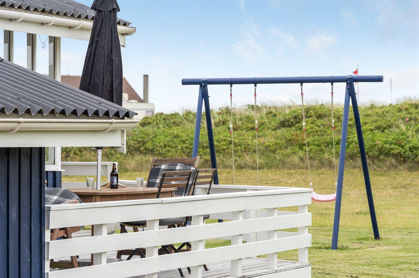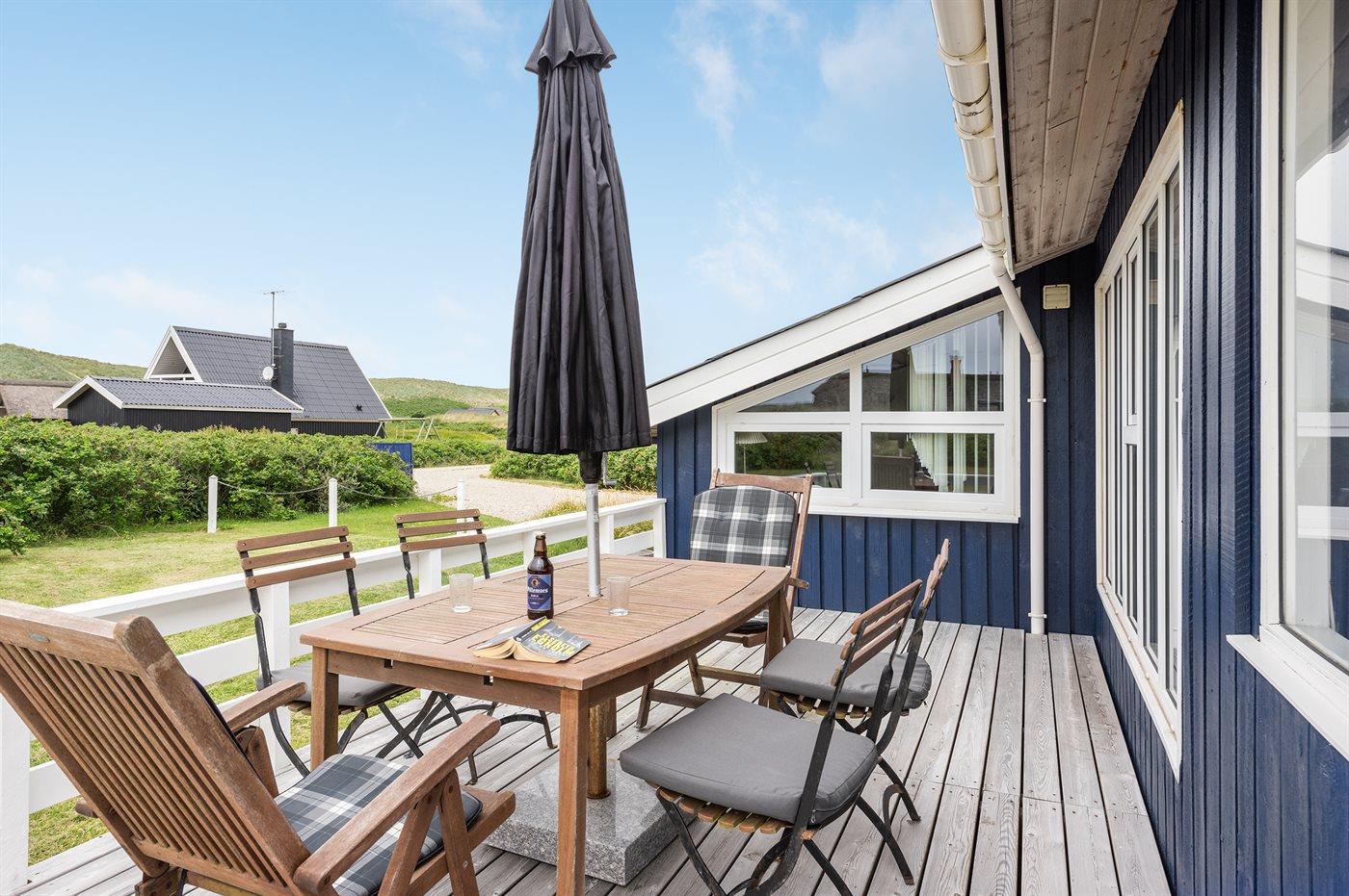 Tæt ved Vesterhavet, på en lukket vej, ligger dette sommerhus på en stor og delvis åben grund med udsigt til klitterne. Huset er løbende vedligeholdt, og ligger ikke langt fra den store naturcykelsti gennem klitområdet fra Nymindegab i syd til Søndervig i nord.