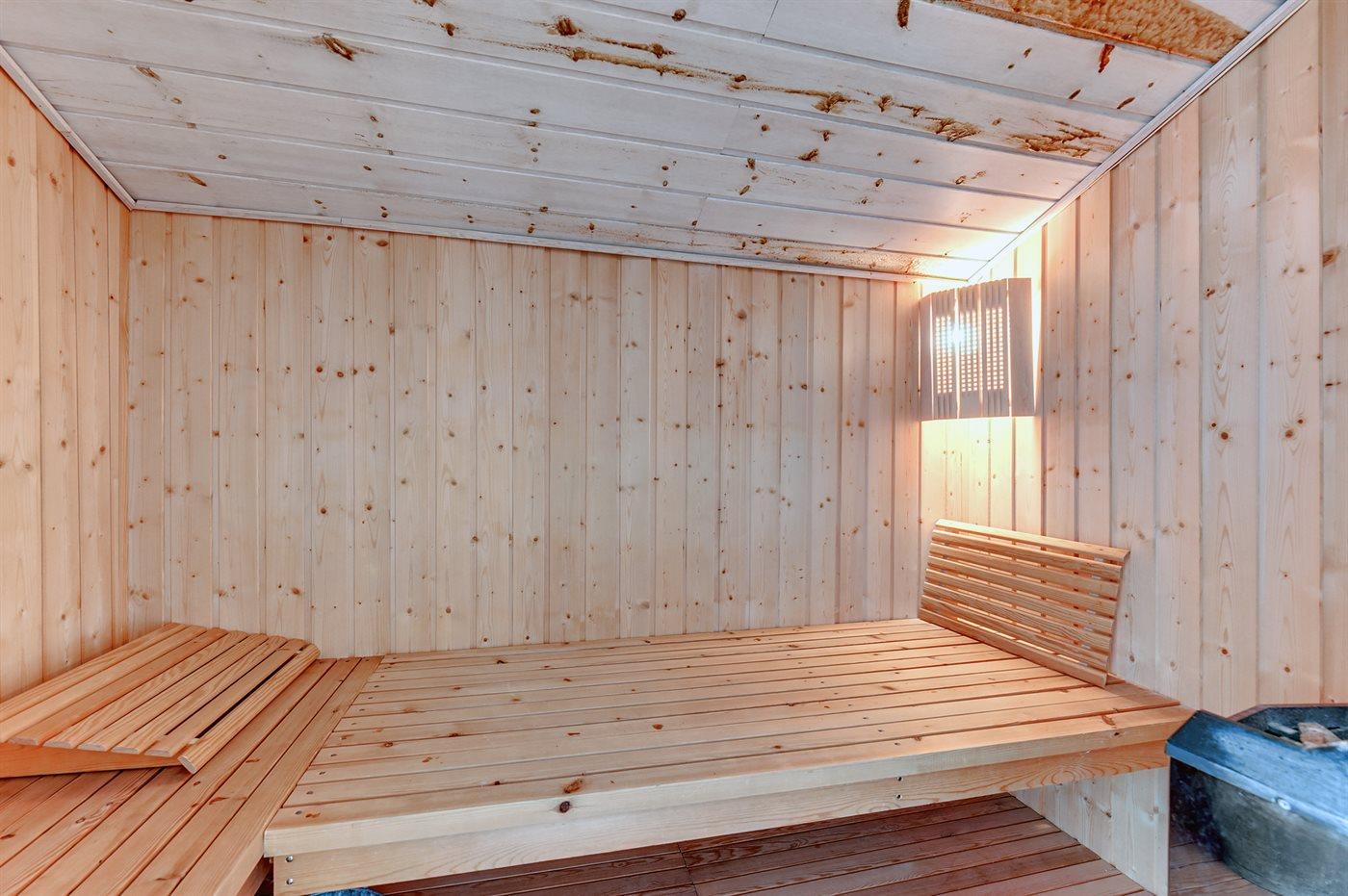 Der er 1 badeværelse med bruseniche og 1 toilet. I saunaen er der mulighed for afslapning.