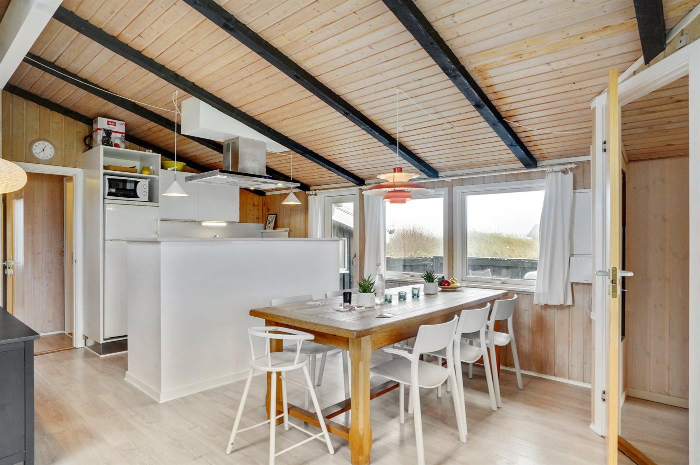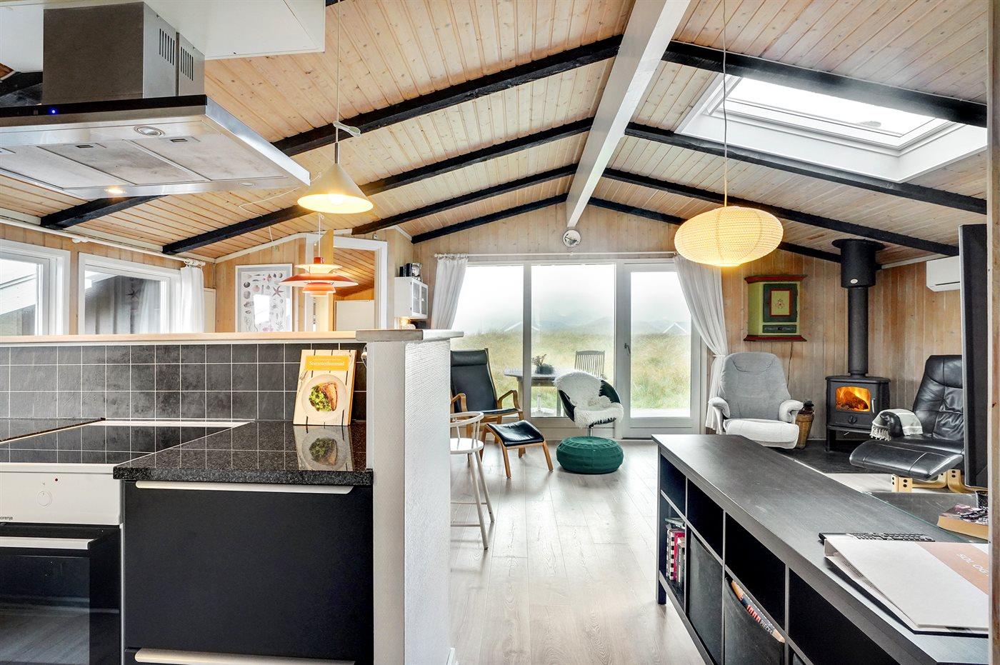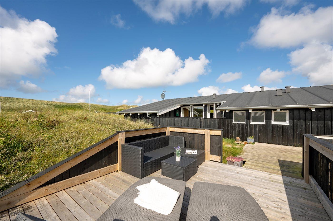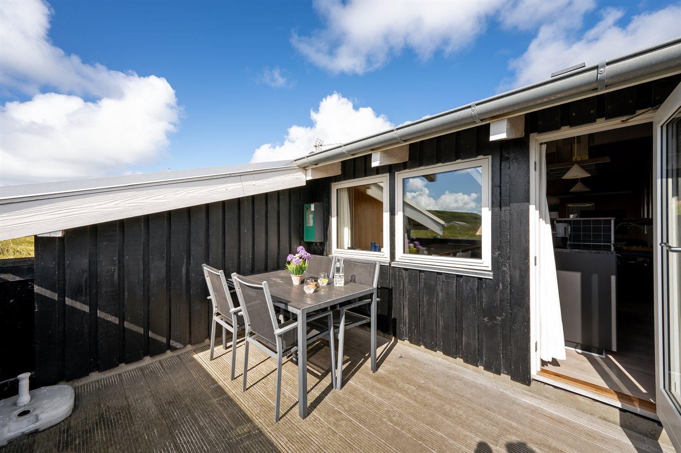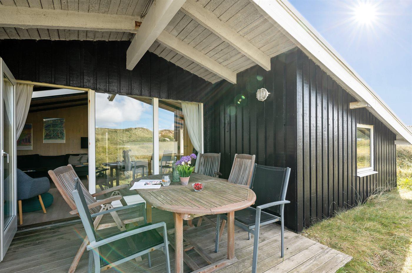Et hyggeligt indrettet sommerhus med en dejlig beliggenhed – kun 150 m fra klitterne og Vesterhavet. Til huset hører såvel åben som overdækket terrasse. Sommerhuset ligger få km. fra Hvide Sande, hvor der er gode indkøbsmuligheder. Her kan I også gå en tur på havnen og købe fisk mm. Besøg også de hyggelige restauranter og butikker.
