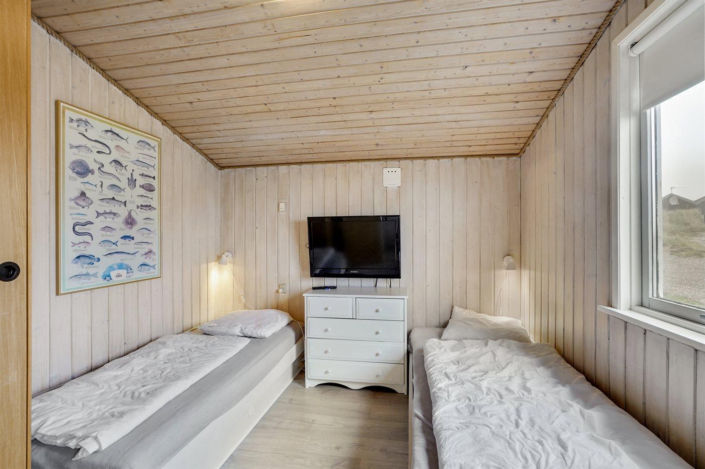 Der er i alt 4 soveværelser. Sovepladserne fordeler sig på: 4 sovepladser i dobbeltsenge. 2 sovepladser i enkeltsenge. 2 sovepladser i køjeseng.