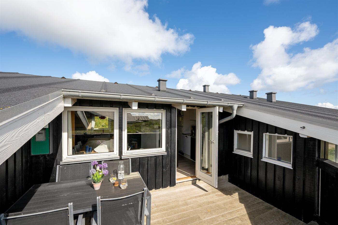 Ferieboligen er beliggende på en 1200 m² stor klitgrund. Der er 150 m til havet. Nærmeste forretning er beliggende i en afstand af 400 m. Til ferieboligen hører 32 m² terrasseareal. Desuden er der 13 m² overdækket terrasse. Heraf i alt 10 m² lukket terrasse. Gynge.