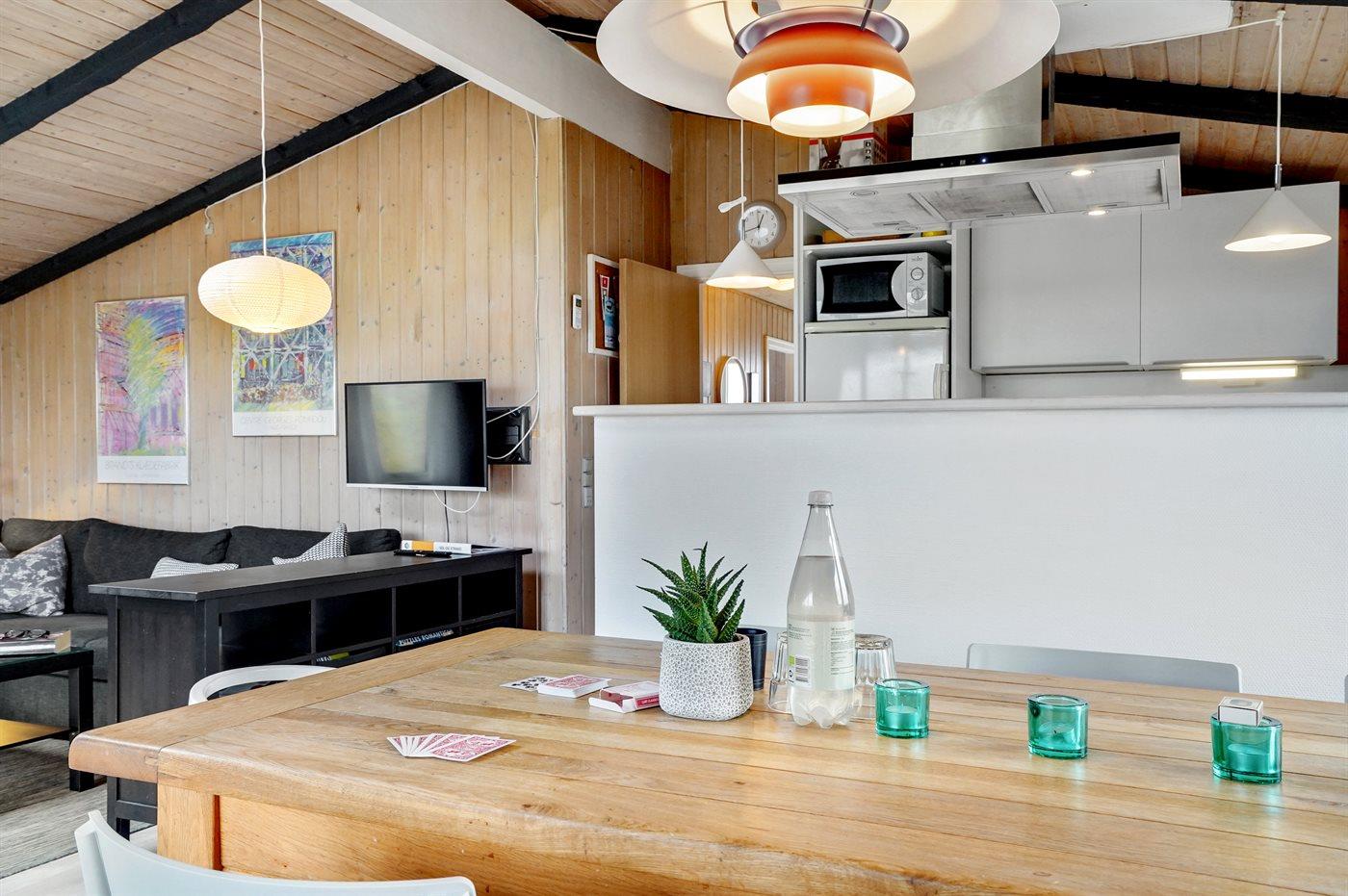 Køkkenet er udstyret med 1 køleskab. Der er 4 keramiske kogeplader, varmluftovn, mikrobølgeovn samt opvaskemaskine.
