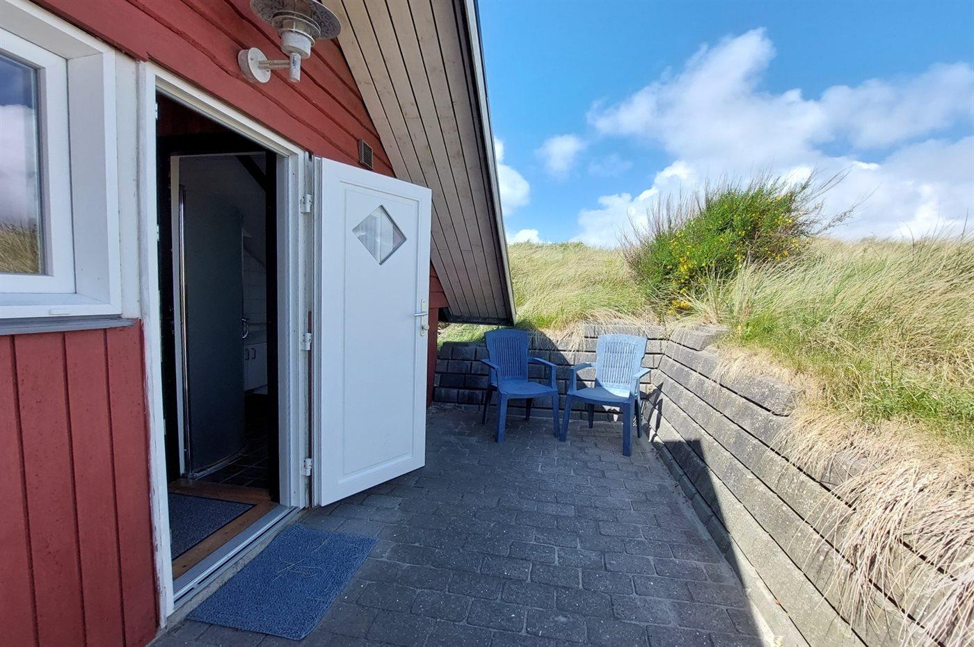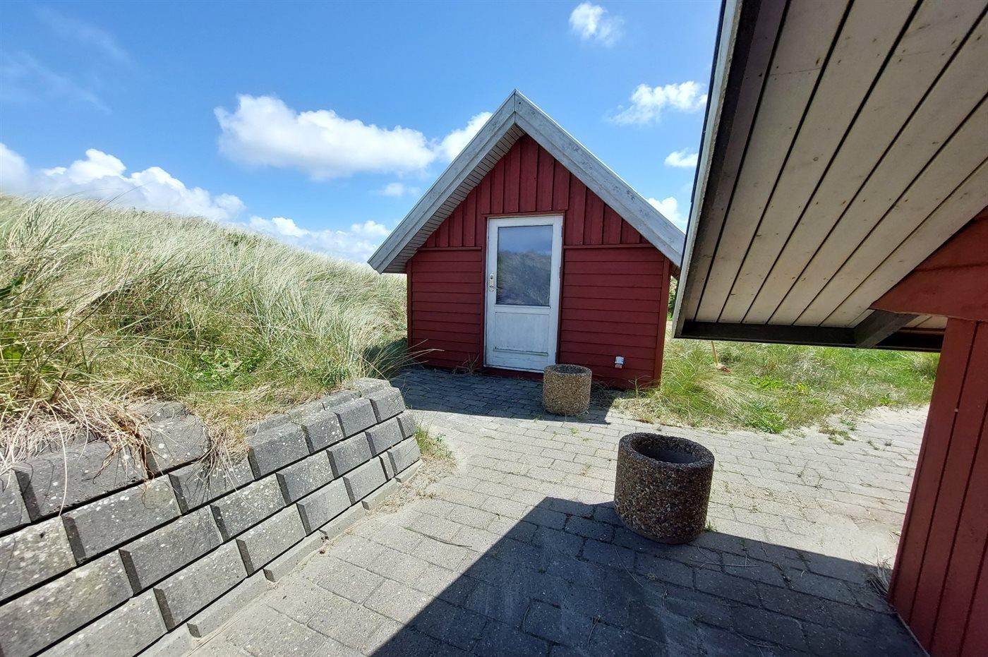Ferieboligen er beliggende på en 2500 m² stor klitgrund. Der er 300 m til havet. Der er 300 m til fjorden. Der er en sø i en afstand af 300 m. Nærmeste forretning er beliggende i en afstand af 3000 m. Til ferieboligen hører 30 m² terrasseareal. Rutchebane. Grill til rådighed. Parkering ved ferieboligen.