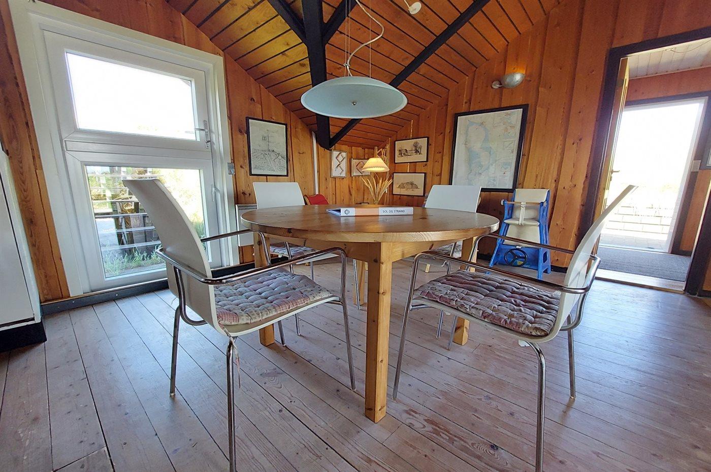 Kun få minutters gang fra en dejlig sandstrand og ca. 4 kilometer syd for Hvide Sande ligger dette hyggelige sommerhus, som inviterer til en skøn ferie - både indendørs og udendørs. Her kan I nyde den smukke natur, stranden og vandet. Gå en tur langs stranden til Hvide Sande, hvor I kan nyde en kop kaffe med udsigt til havnen og gå på opdagelse i byens forretninger. Er i til udfordringer på vandet så finder I West Wind Surfplads kun ca. 2 km fra sommerhuset.