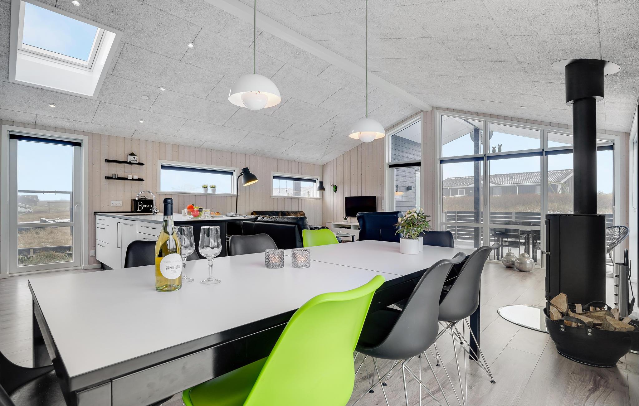 Sommerhuset har den skønneste beliggenhed i klitterne med blot 50 meter til Vesterhavet. Huset indeholder alt, hvad I har brug for til en dejlig og afslappende familieferie.