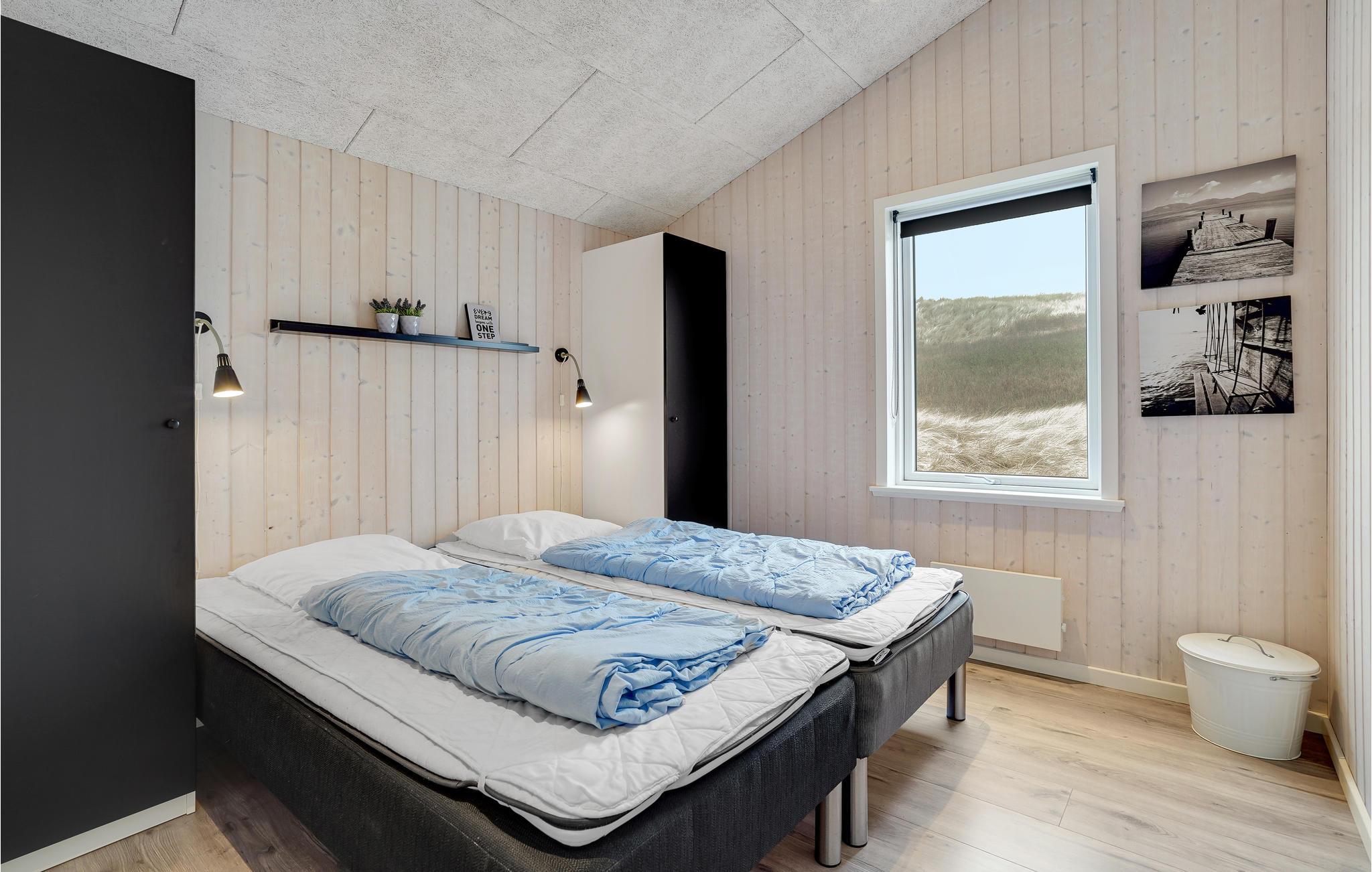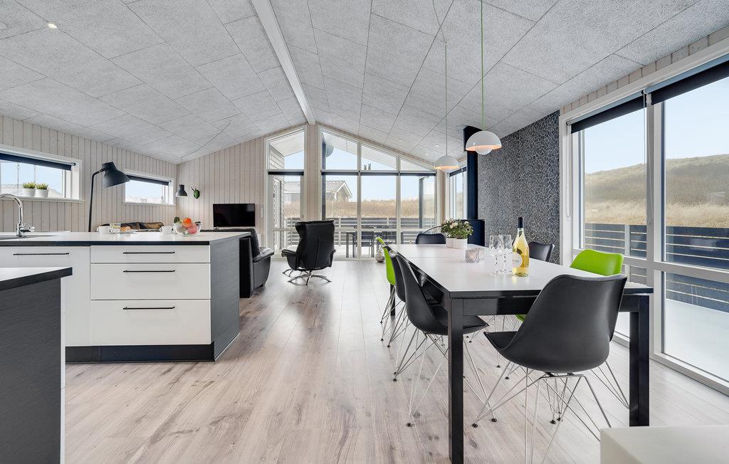 Det rummelige lyse køkken og den hyggelig stue er omkranset af store vinduespartier, som lukker naturen ind i huset. Huset har tre fine soveværelser som indeholder to dobbeltsenge og to enkeltsenge. I huset er der desuden to lyse badeværelser. I har også rig mulighed for at nyde afslappende wellness i spabadet og den rummelige sauna, ligesom I kan hygge jer med et spil airhockey i aktivitetetsrummet.