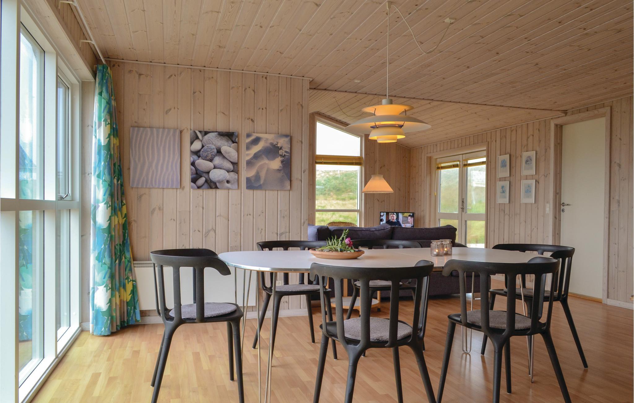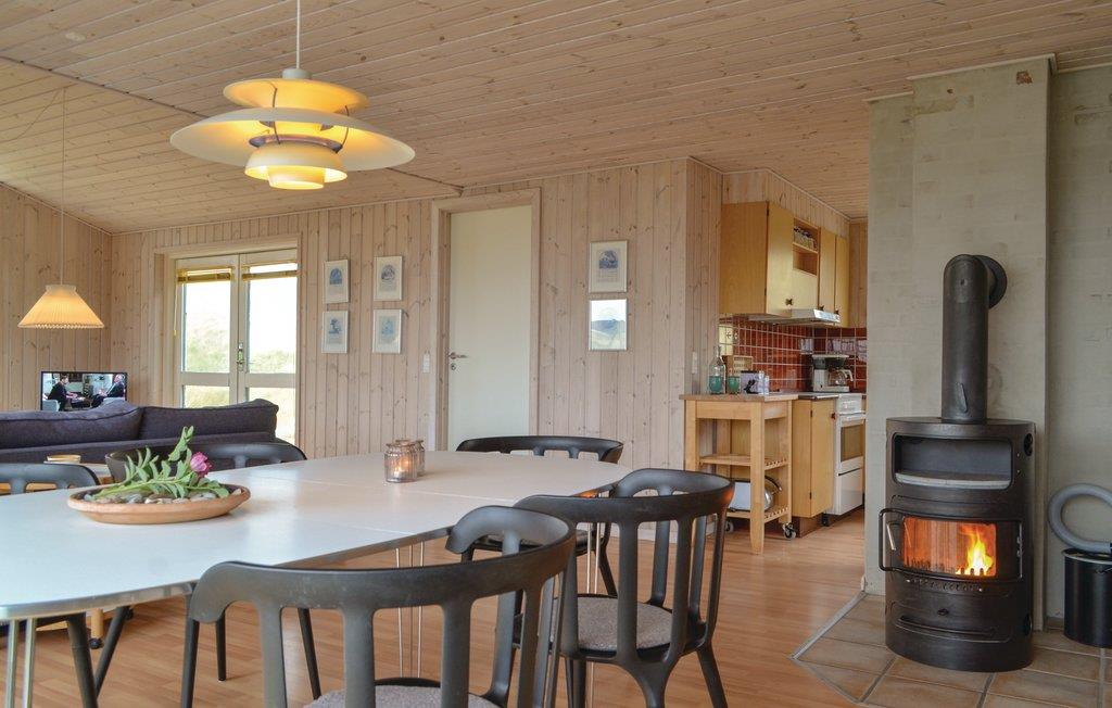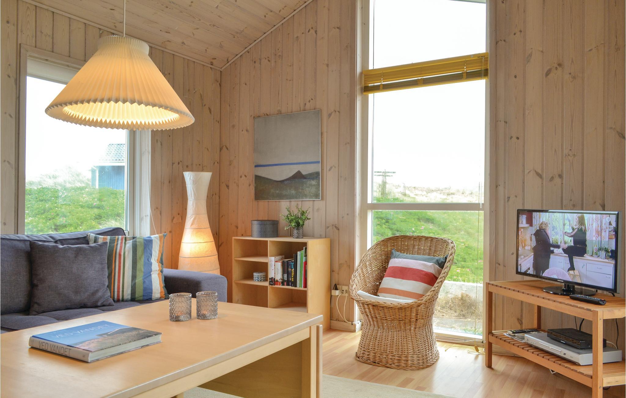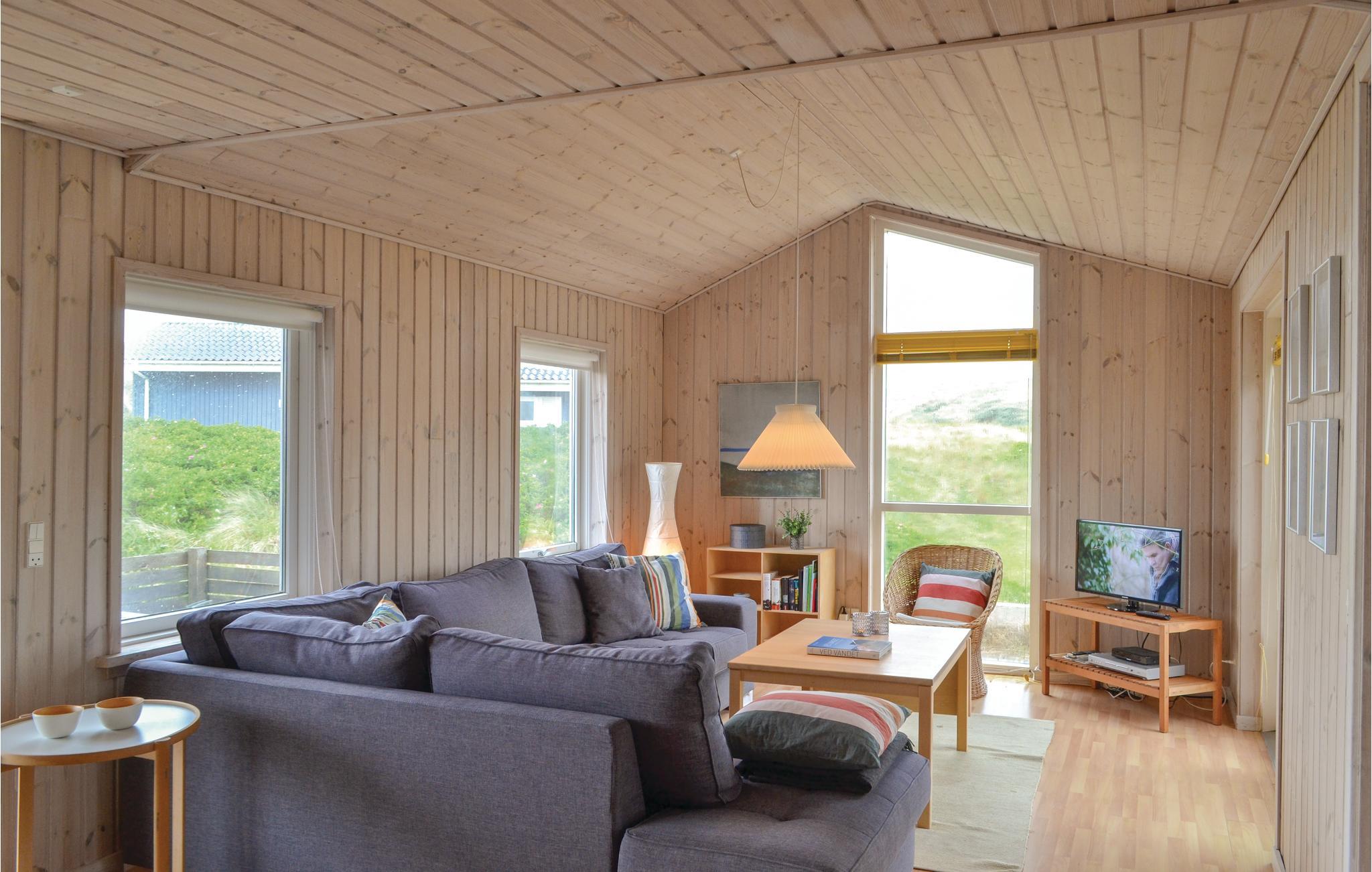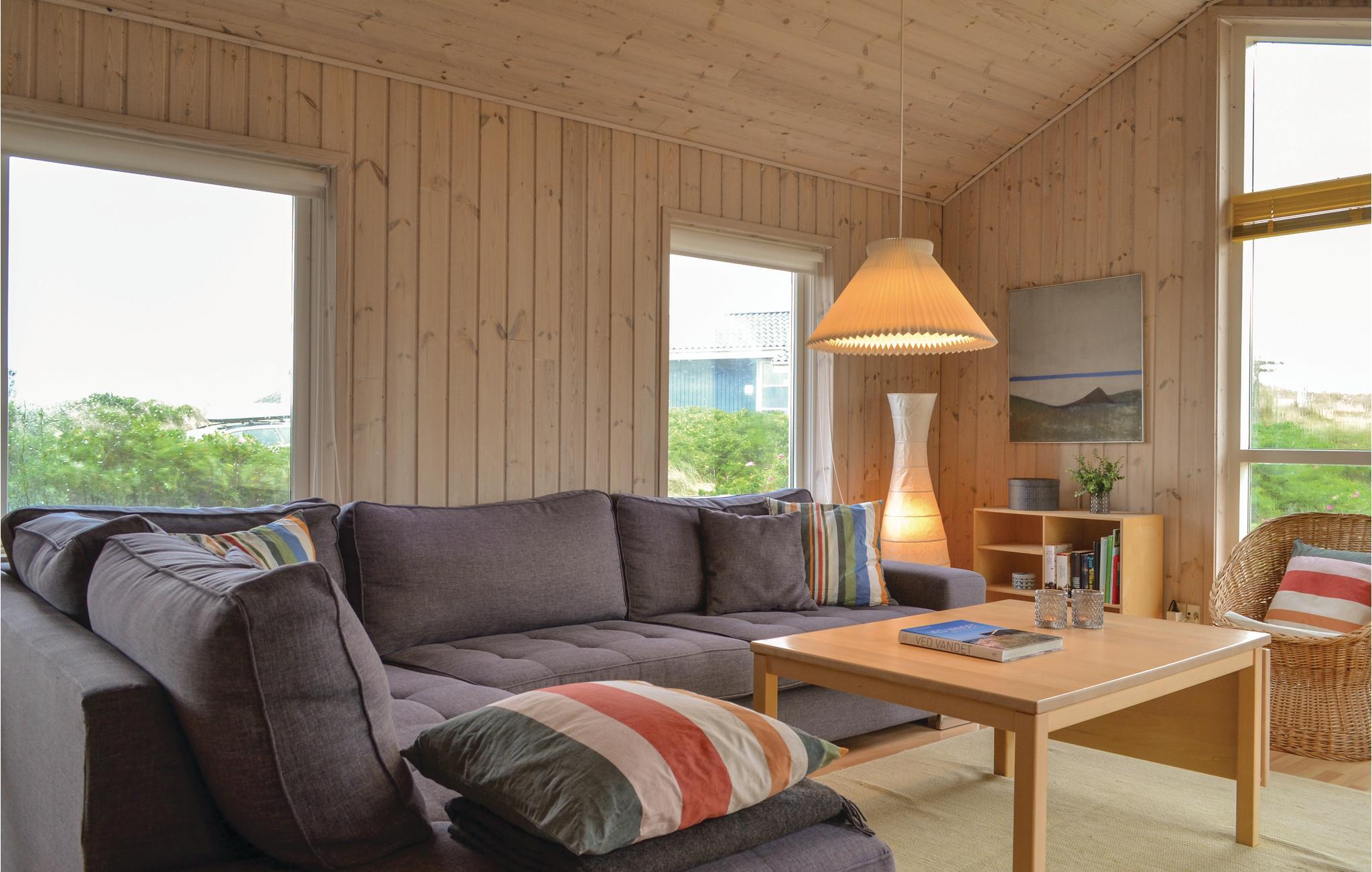 Hold en dejlig vesterhavsferie i dette flotte og hyggelige hus, der ligger på en stor klitgrund med marehalm og lyng, kun 100 meter fra havet. I sensommeren forvandler lyngen sig et stort hav af lyslilla blomster, som er skønt at lade blikket hvile på. Hust har en dejligt indrettet stue, hvor I kan nyde at slappe af sammen, og snakke om alt det, som det travle hverdag ikke efterlader tid til. Dette område er meget populært hos alle der vil surfe (eller kitesurfe), dyrke lystfiskeri eller bare nyde den brede strand ud til det brusende Vesterhav, som forandrer farve med lysets skiften på himlen.