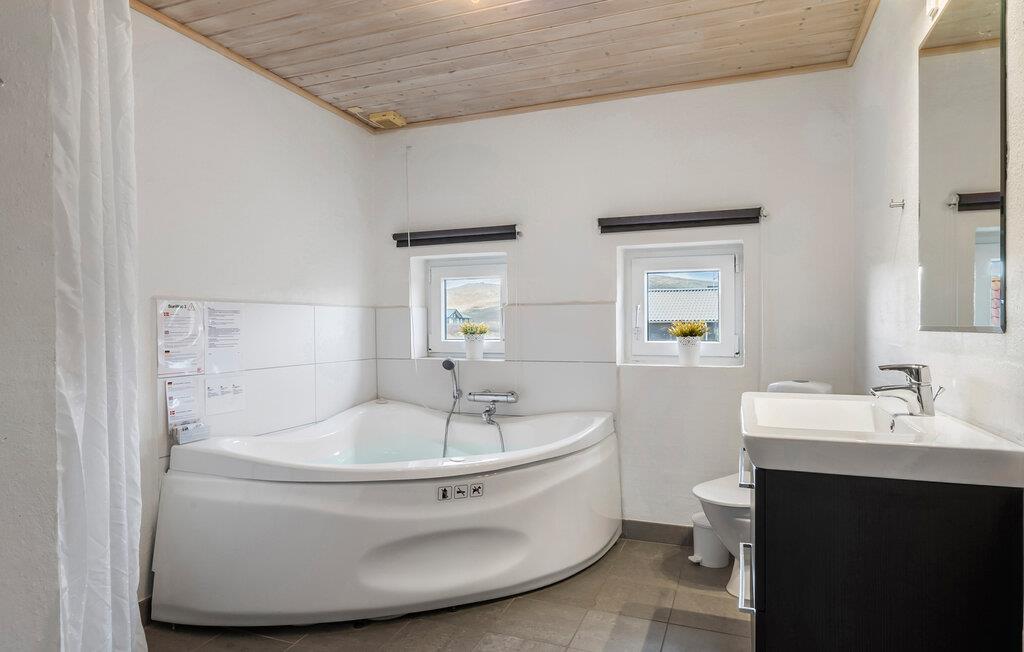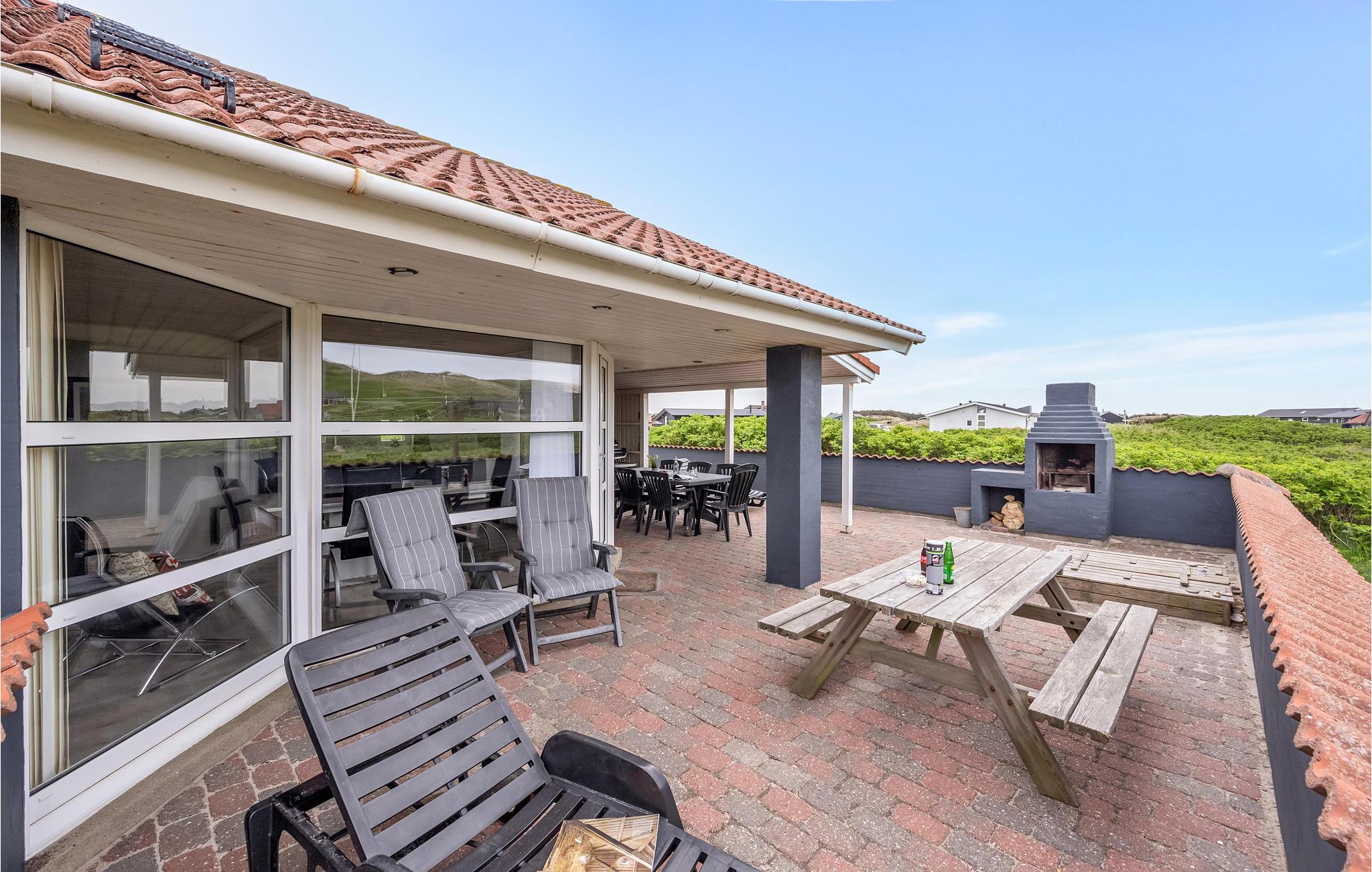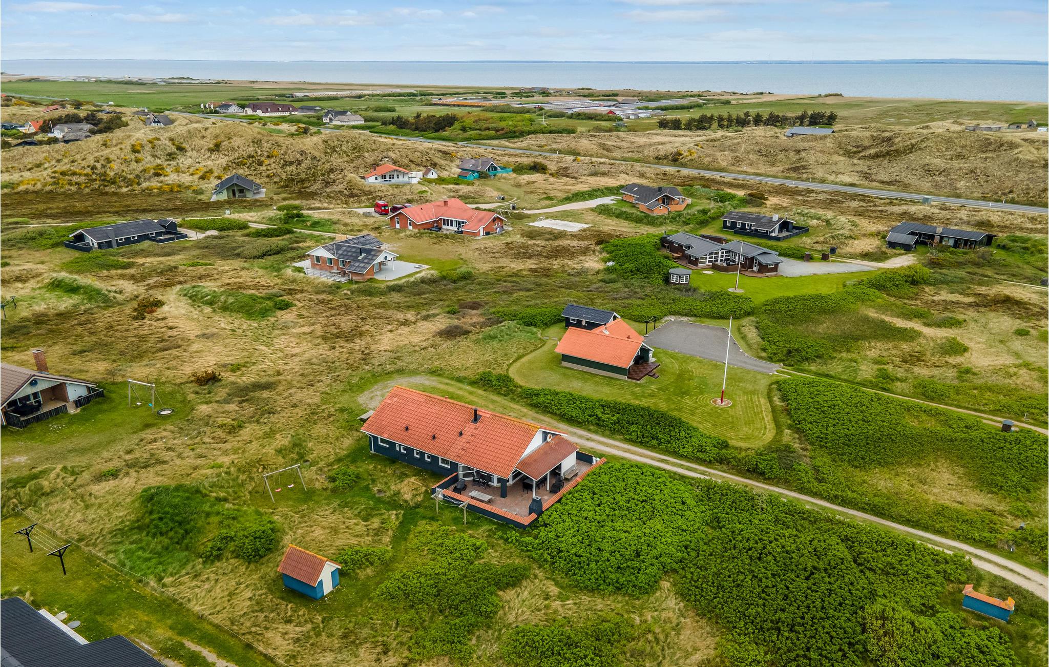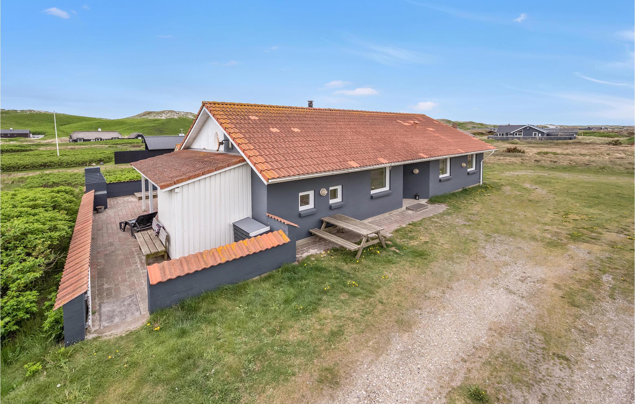 Et hyggeligt sommerhus beliggende på en skøn naturgrund i Årgab kun 200 m fra strand og klit. Der er en fantastisk udsigt fra huset og terrassen ud over klitlandskabet. Indendørs er huset velindrettet med køkken, stue og spisestue i åben forbindelse med hinanden, her er god plads til madlavning, en dejlig middag, spil, tv og hygge foran den knitrende brændeovn. Fra stuen har I et dejligt kig til terrassen med en åben pejs. Huset tilbyder desuden fire gode soveværelser og et dejligt badeværelse med spabad, sauna og gulvvarme samt et gæstetoilet ligeledes med gulvvarme. Ude på naturgrunden er der både en sandkasse og en gynge til de yngste feriegæster.