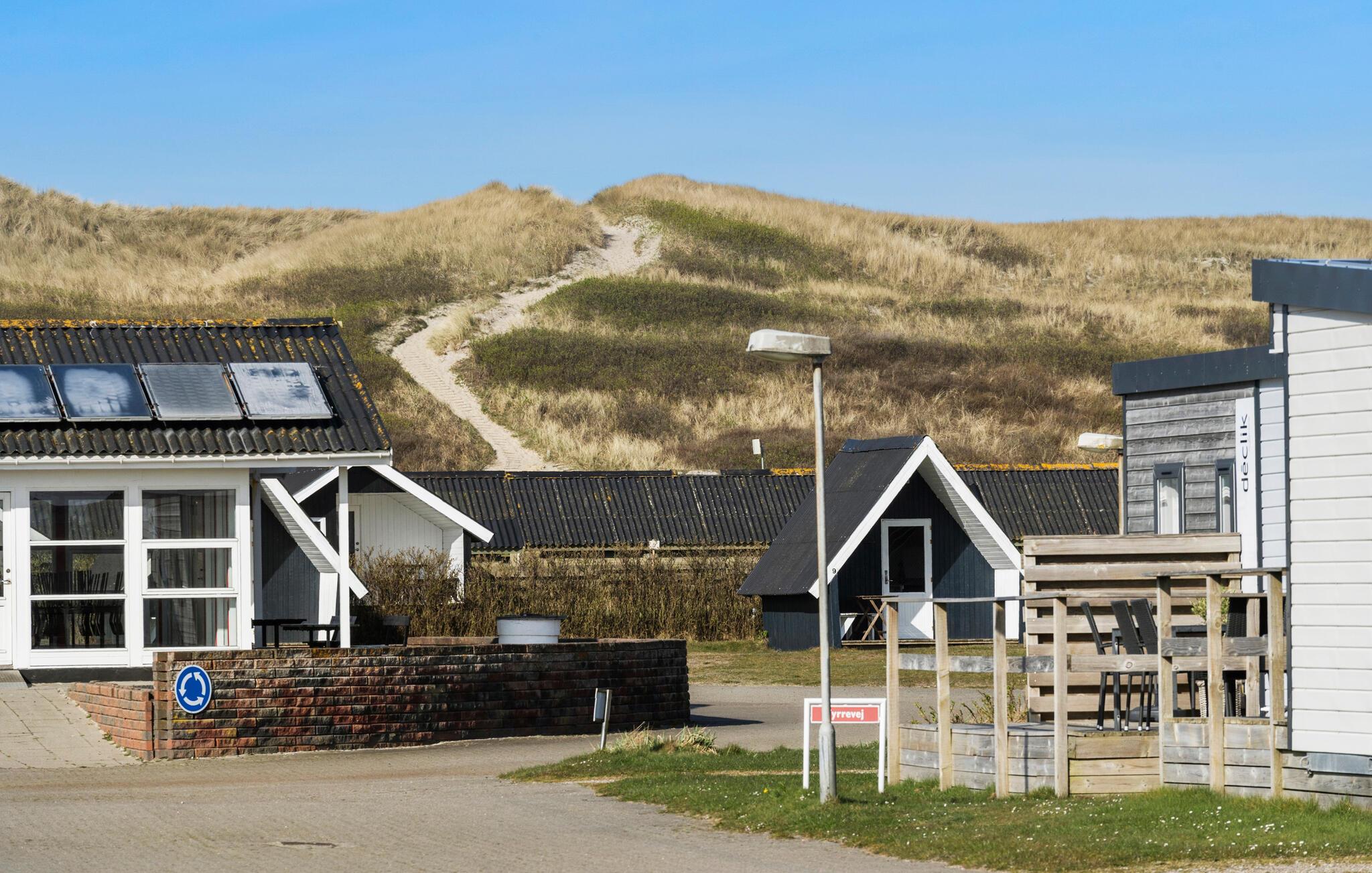 I kan høre havets brusen, uanset hvor I opholder jer på pladsen, for disse hytter er kun adskilt fra Vesterhavet af klitrækken, hvorfra der er en fantastisk udsigt til de uendeligt lange, hvide sandstrande og Vesterhavet på den ene side og Ringkøbing Fjord på den anden side. Her er masser af gratis aktiviteter dagen lang, f.eks. de populære børneaktiviteter, der samler børnene og giver venskaber - også efter ferien. Vil I surfe, cykle eller bade i havet, har I alle mulighederne på denne veludstyrede campingplads. I kan bade ganske gratis i det dejlige indendørs badeland på 1000 m2 med rutsjebane, sauna, dampbad og spa, så husk badetøjet!