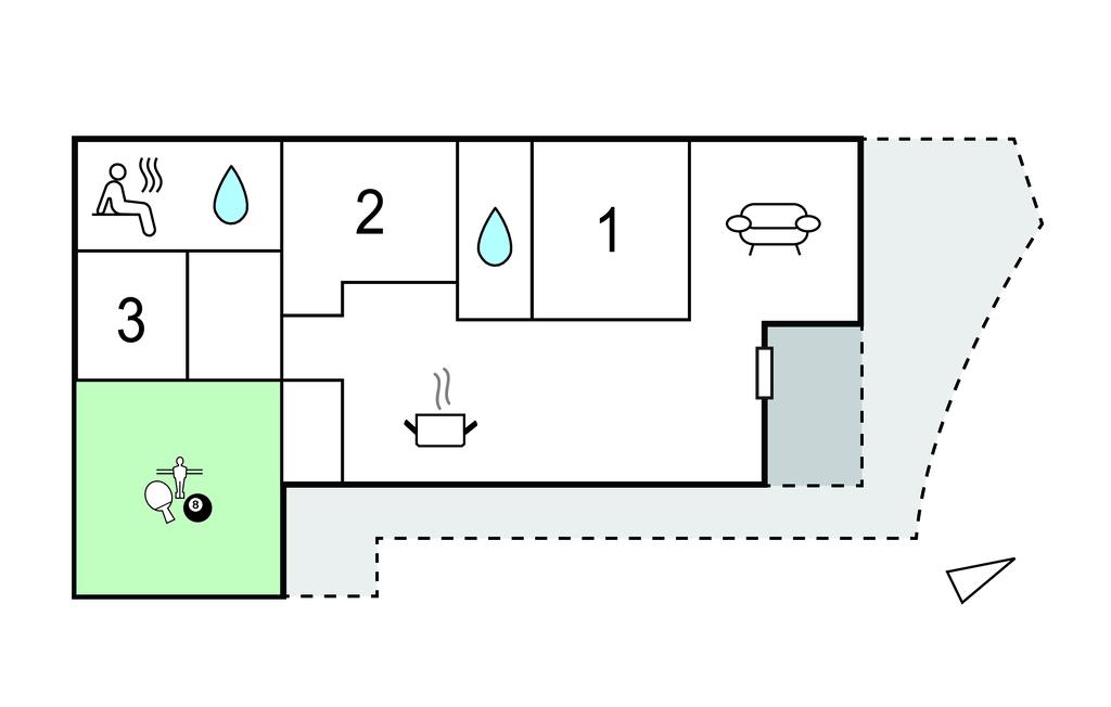 Tilbring jeres tid på træterrassen med havemøbler og liggestole. Nyd morgenmaden udendørs eller slap af i vildmarksbadet, der passer hyggelig ind i klitlandskabet.
