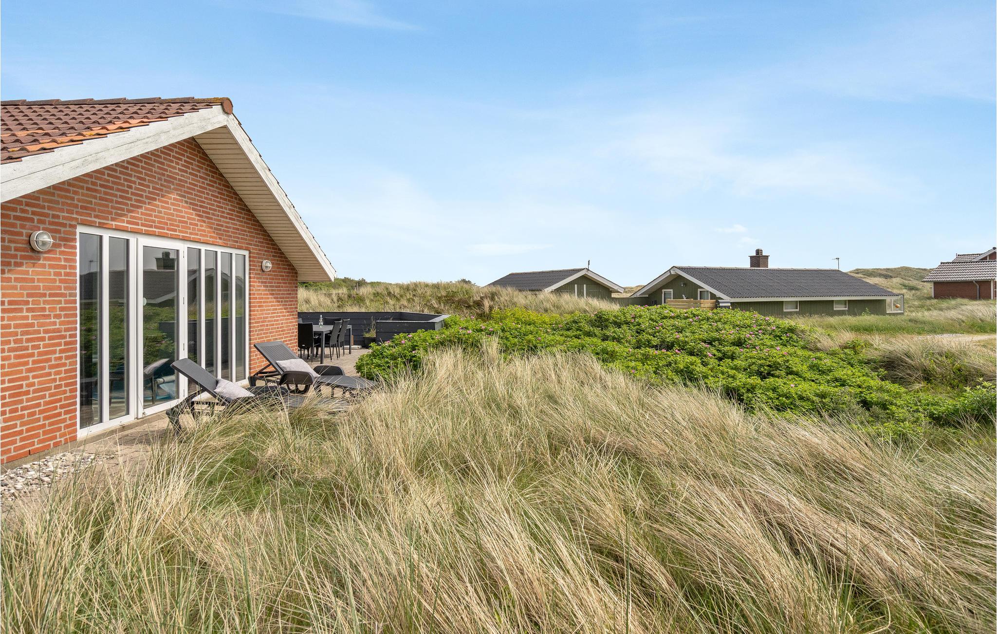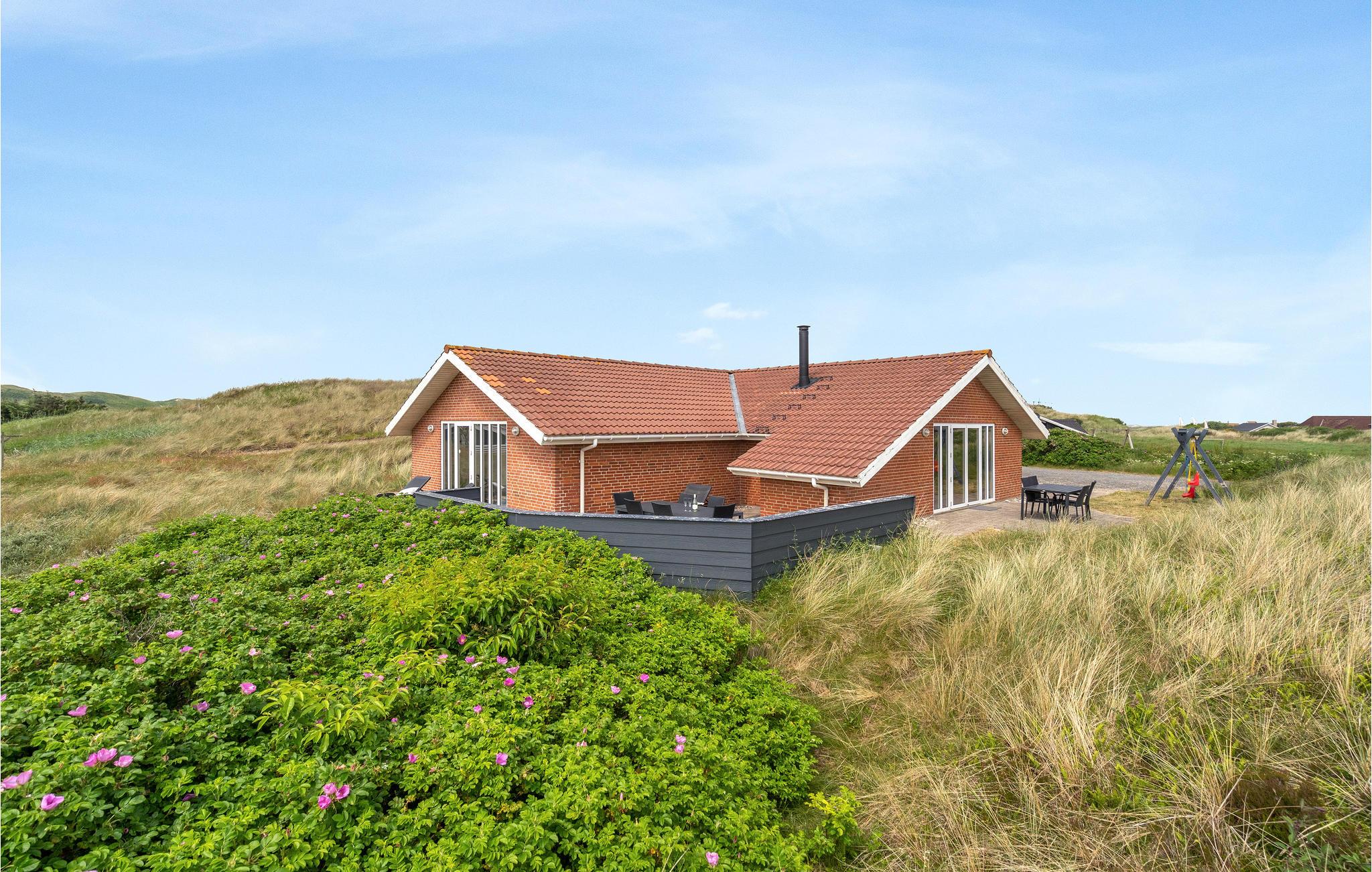 Dette store og velholdte feriehus bygget i mursten ligger på en lettere kuperet klitgrund.