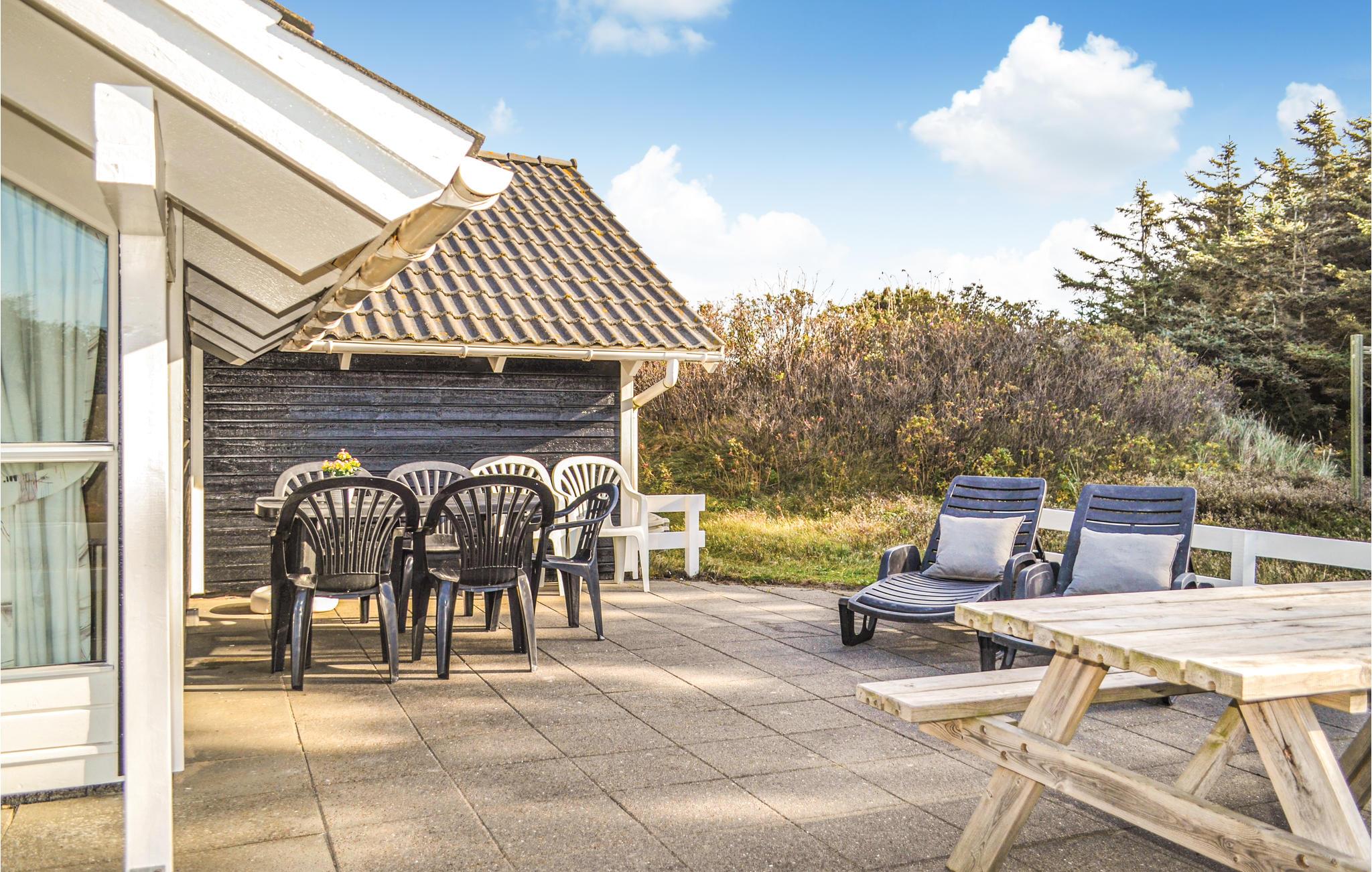 Flot indrettet træhus med al tænkelig komfort, som løbende holdes vedlige og moderniseres. Det ligger på en stor naturgrund med direkte udsyn til klitområdet. Der er en 50 m² stor sydvendt terrasse, hvor I kan nyde dagen og tilberede maden på grillen. Fra terrassen er der i øvrigt en pragtfuld udsigt over klitterne hvor I kan finde jer en gryde og nyde solen i på varme dage. Huset er indrettet med store rum og to badeværelser, hvilket gør det velegnet til to familier. Der er parkeringsplads lige ved huset. Fra huset er der ikke langt til et godt surfområde. I sommerhalvåret er der ca. 500 m til indkøb. Huset er specielt egnet til lystfiskere, da der er en stor fryser og indendørs fiskerenseplads med plads til fiskegrej m.m. I kan fiske fra stranden, eller tage med på fisketur med kutter ud på havet.