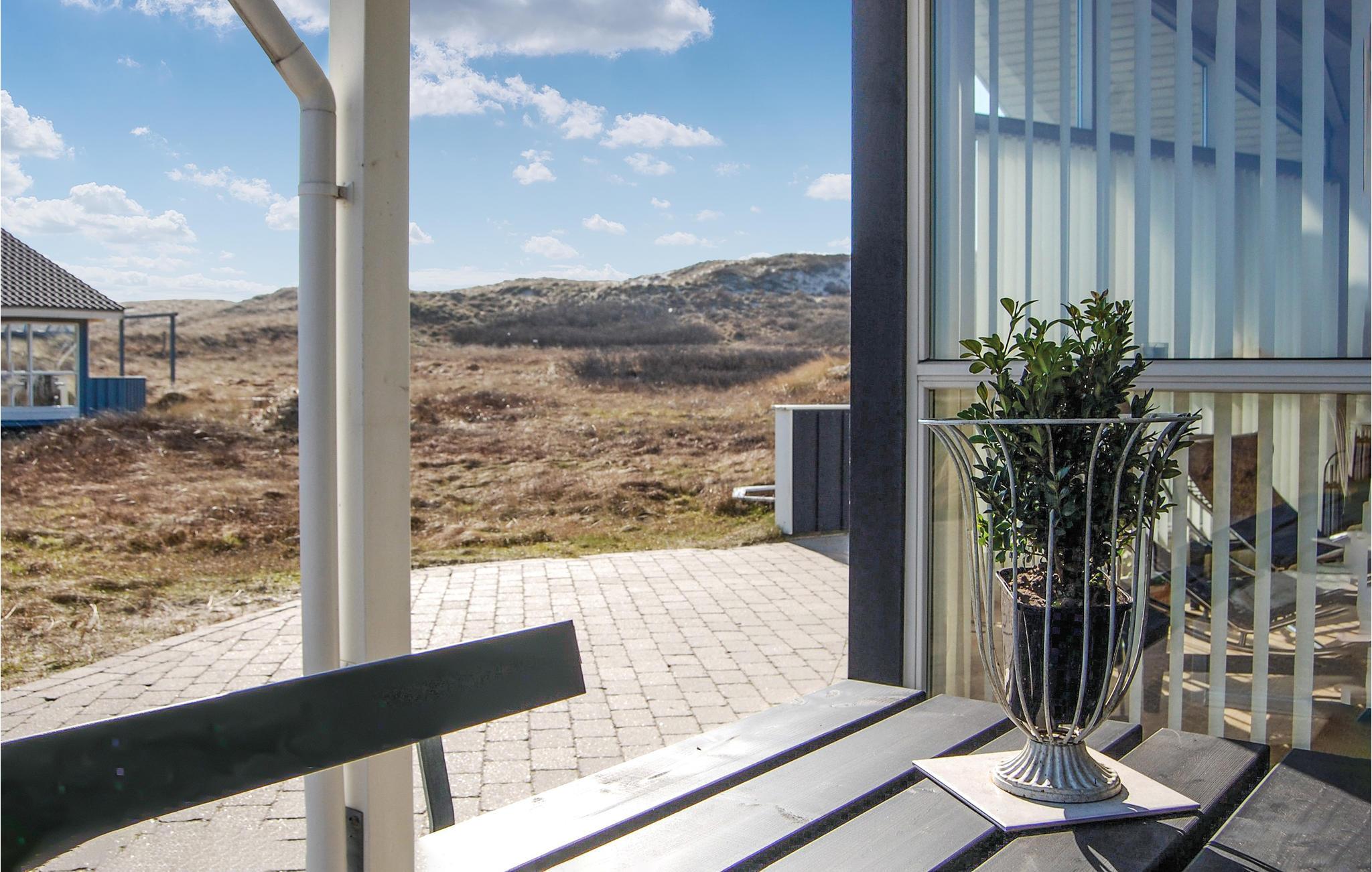 Utroligt skønt feriehus på en klitgrund med udsigt til klitterne fra såvel opholdsstuen som terrassen. Der er her tale om et virkelig gennemført feriehus med mange flotte detaljer. F.eks. er der fra det største af soveværelserne direkte udgang til den meget store terrasse, hvor I kan nyde de mange udendørs timer i solen med udsigt til natuen. Fra det store sydvendte panoramavindue har I udsigt til klitterne. Huset har, som et af de sidste før Vesterhavet, en enestående beliggenhed. Der er heller ikke langt til Hvide Sande og Ringkøbing Fjord med gode surfforhold.