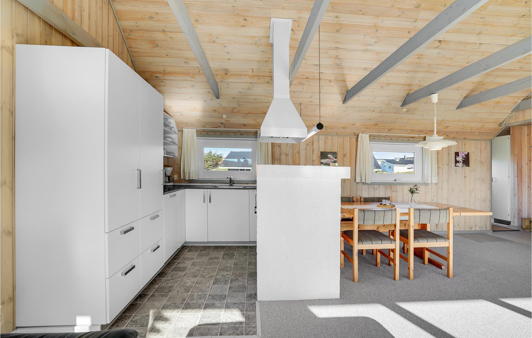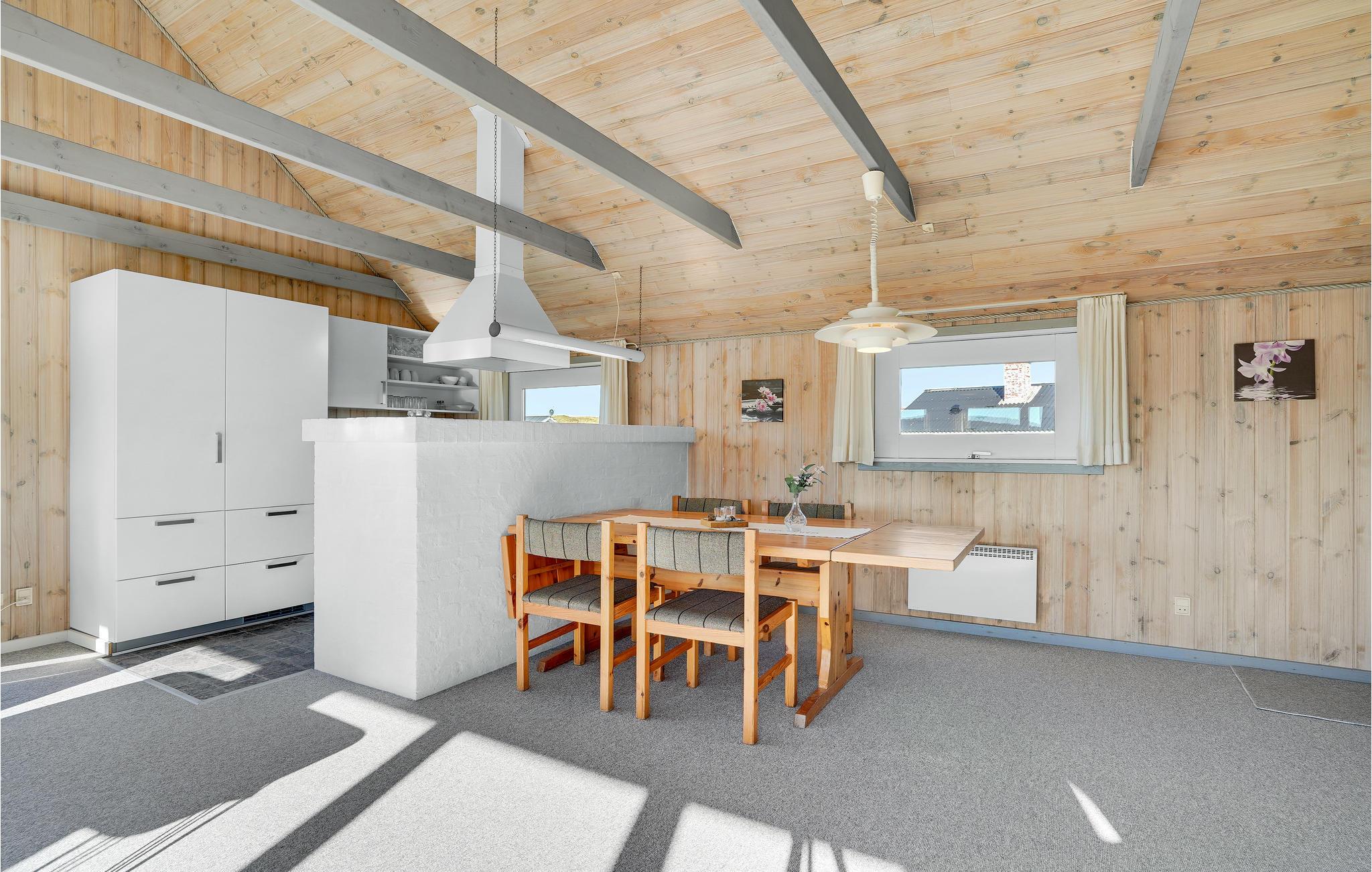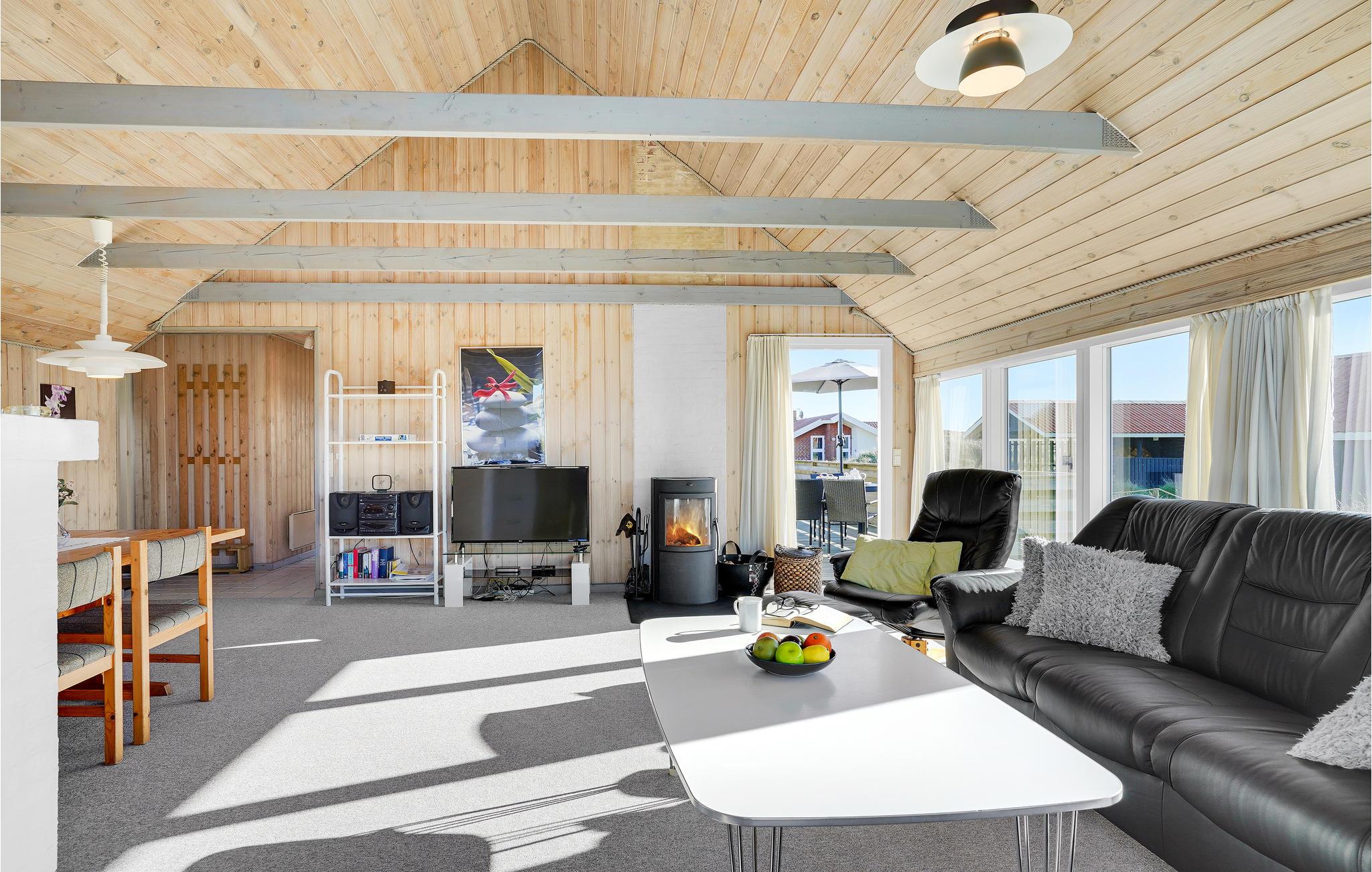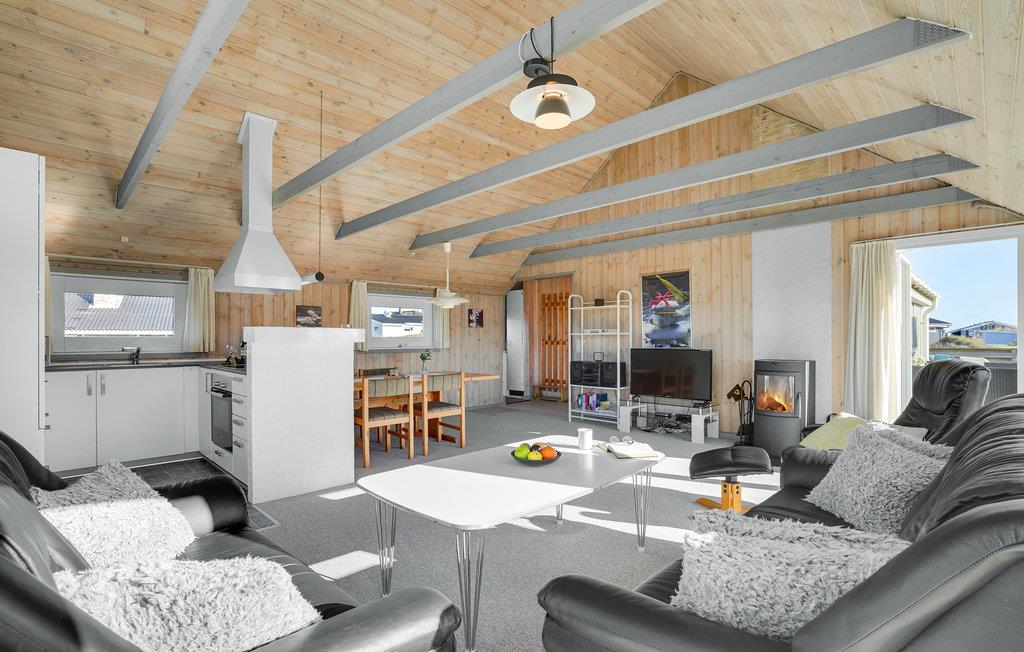 Velindrettet og hyggeligt feriehus beliggende på en naturgrund ikke langt fra Vesterhavet. De store vinduespartier i stuen giver ikke blot et dejligt lysindfald, men samtidig kan I sidde i stuen og nyde udsigten til klitterne. Lige bag klitterne venter den brede strand og de brusende bølger, hvis beroligende lyd kan nydes fra terrassen, som indbyder til både grill og solbadning. Uanset årstid er en tur i saunaen den perfekte afslutning på en lang gåtur i den smukke natur, som er lige uden for døren.