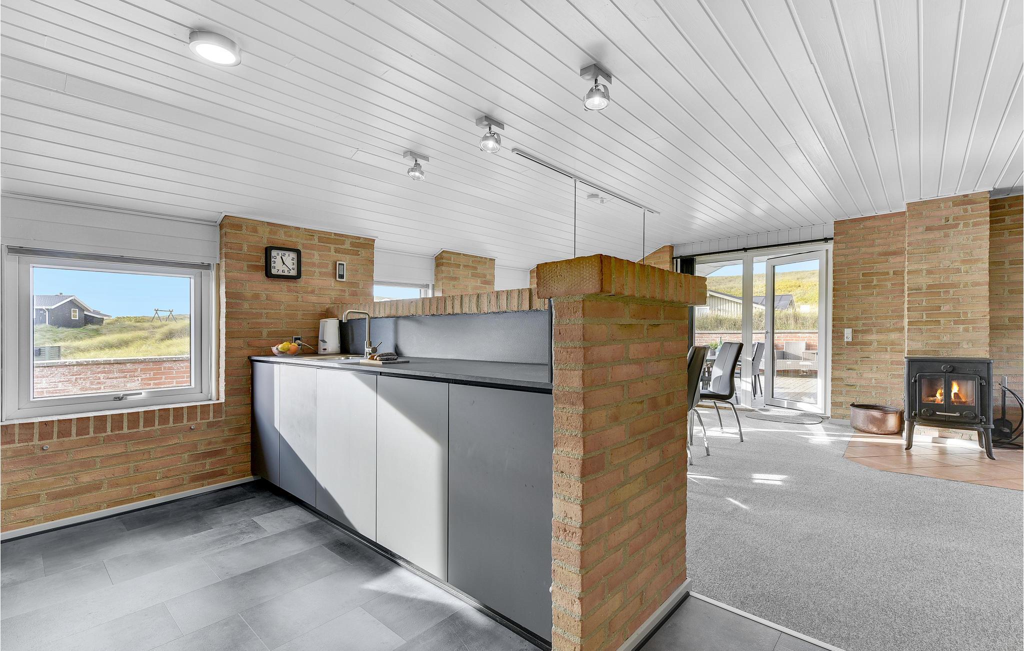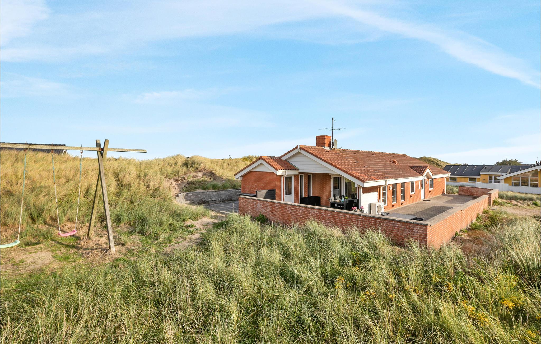 I det vel nok mest attraktive område på Holmsland Klit, ikke langt fra den hyggelige og atmosfærefyldte by, Hvide Sande, ligger dette dejlige sommerhus. Huset, som er bygget i sten, ligger på en stor klitgrund, meget tæt på Vesterhavet som til alle årstider byder velkommen med den brede strand og det brusende hav. Herfra har I det perfekte udgangspunkt for en vellykket ferie, og med 4 soverum og 2 badeværelser er der god plads til 2 familier. Efter en lang spadseretur langs stranden, måske særligt på kølige dage, kan en tur i det beroligende, boblende spabad eller den opvarmede sauna være den perfekte afslutning på dagen. Den store terrasse indbyder både til hyggelige grillaftner og til solbadning krydret med de beroligende toner fra Vesterhavets bølger.