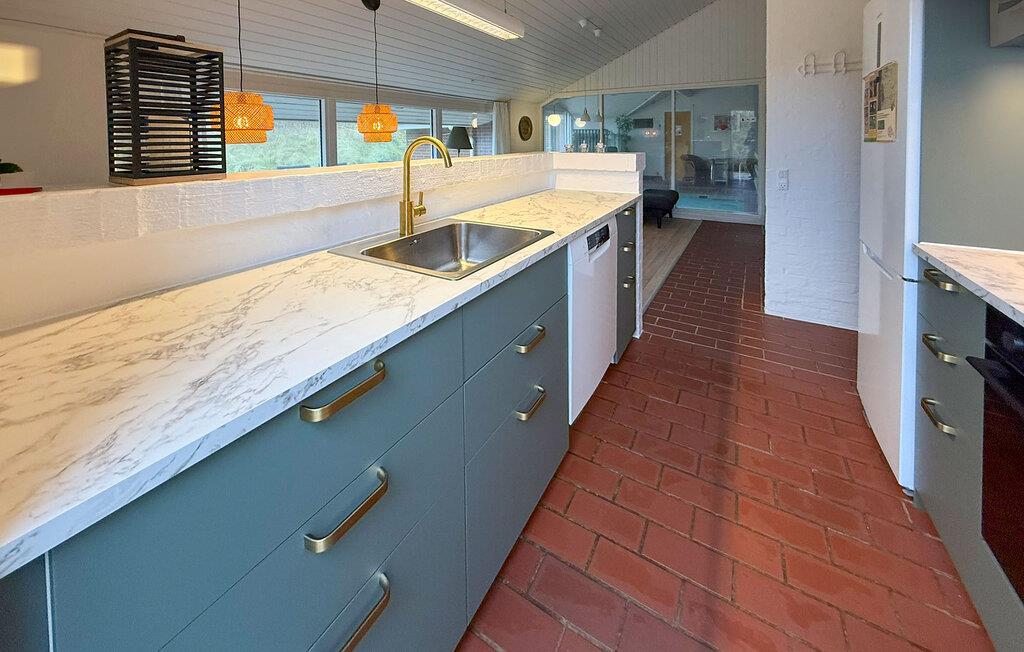 Havet, himlen og fuglene. I er landet midt i Vestjylland, og får her det fulde udbytte af områdets ikoniske natur. Slå dørene op til det hyggelige murstenshus, hvor den lyse opholdsstue er moderne og komfortabelt indrettet og har store vinduer, der lukker lyset ind. Brændeovn bidrager med hyggelig varme på kølige dage. Læn jer tilbage i sofaen eller nyd måltiderne sammen i spisestuen med direkte udsigt over klitterne. Det åbne køkken er fuldt udstyret og har alt, hvad I skal bruge til feriens madlavningsprojekter. Et særligt højdepunkt er poolrummet, hvor der også er strandstole og adgang til terrassen. Efter en svømmetur kan I slappe af i saunaen.