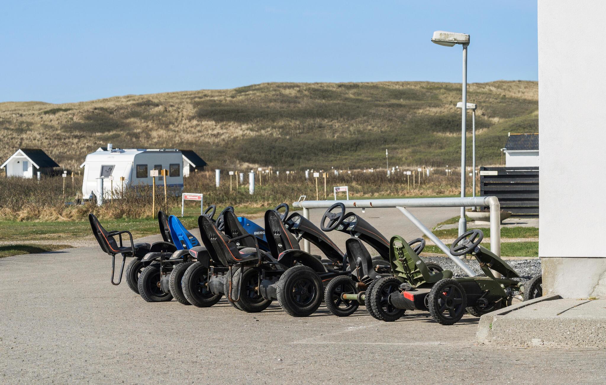 I kan høre havets brusen, uanset hvor I opholder jer på pladsen, for disse hytter er kun adskilt fra Vesterhavet af klitrækken, hvorfra der er en fantastisk udsigt til de uendeligt lange, hvide sandstrande og Vesterhavet på den ene side og Ringkøbing Fjord på den anden side. Her er masser af gratis aktiviteter dagen lang, f.eks. de populære børneaktiviteter, der samler børnene og giver venskaber - også efter ferien. Vil I surfe, cykle eller bade i havet, har I alle mulighederne på denne veludstyrede campingplads. I kan bade ganske gratis i det dejlige indendørs badeland på 1000 m2 med rutsjebane, sauna, dampbad og spa, så husk badetøjet!