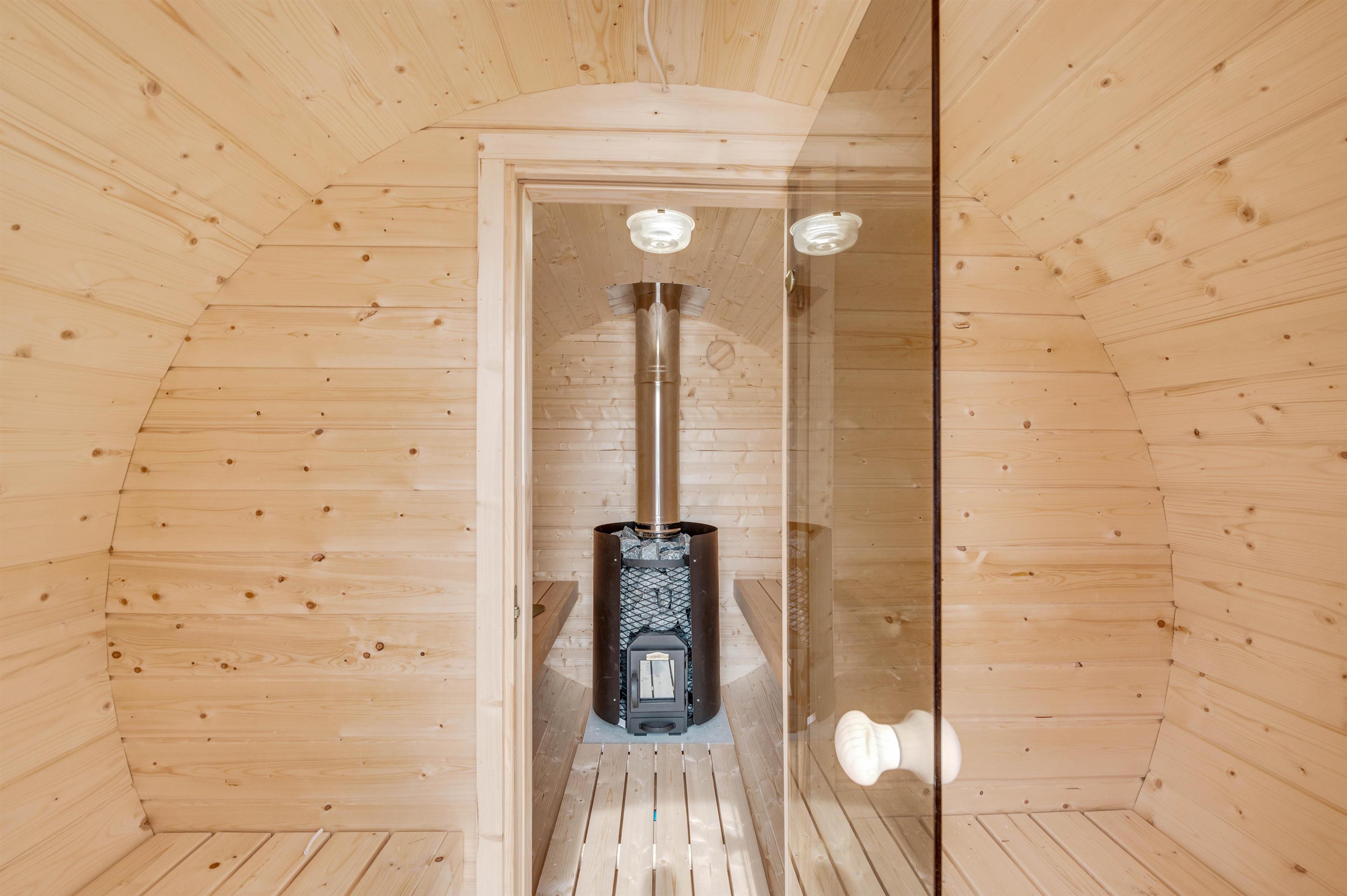 Et af sommerhusets absolutte forcer er det lækre udendørsareal. Fra opholdsrummet kommer I ud på den store træterrasse, som både har en overdækket og åben del – perfekt i al slags vejr. Der er også lagt op til ekstra wellness med vildmarksbad og udesaune. Der er altså masser af mulighed for at lade batterierne op på ferien og vende hjem med fornyet energi.